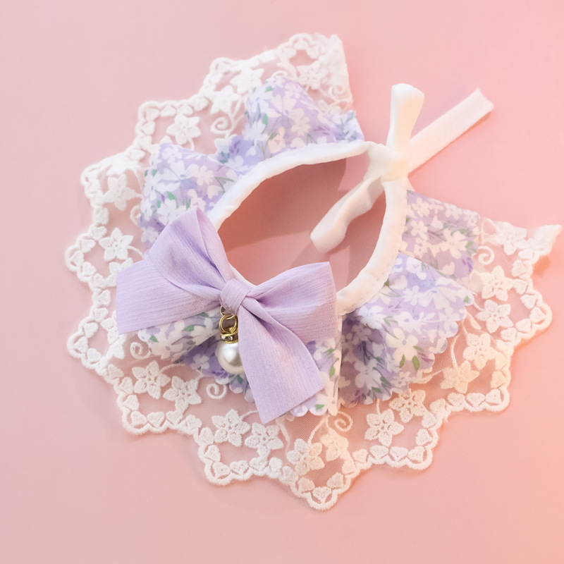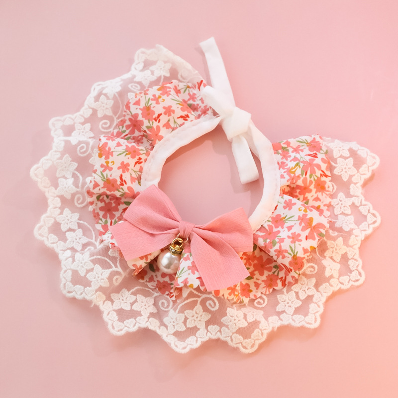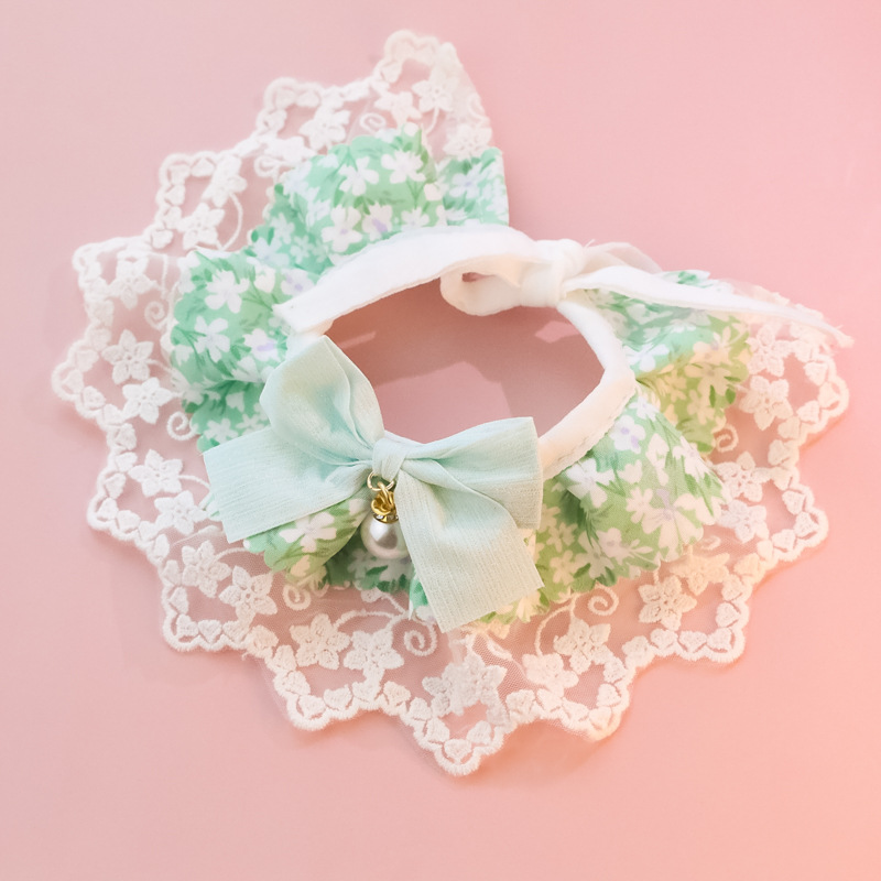 Ins 특별 국경 아마존 애완 동물 칼라 개 타액 수건 보석 레이스 깨진 꽃 활스토어 가기
