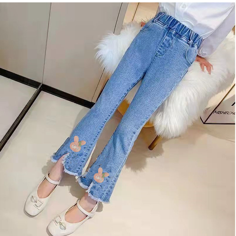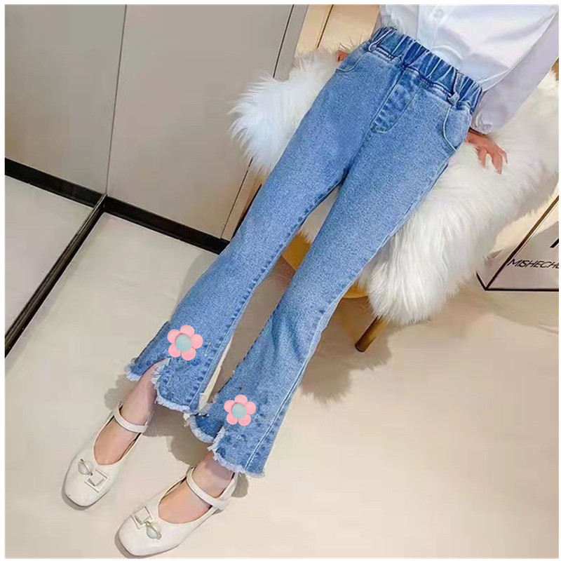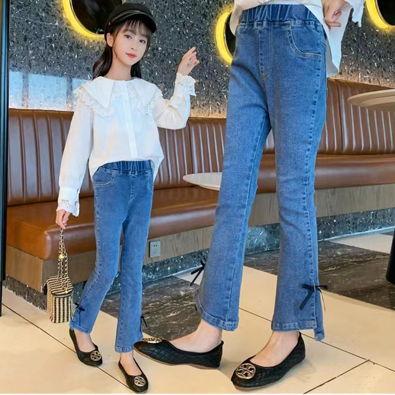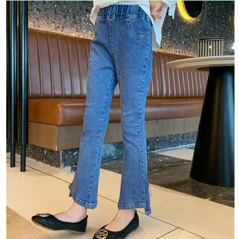 어린이 청바지 제조 업체 도매 큰 어린이 스트레치 데님 바지 소녀 바지 도매 외국 스타일 소녀 바지