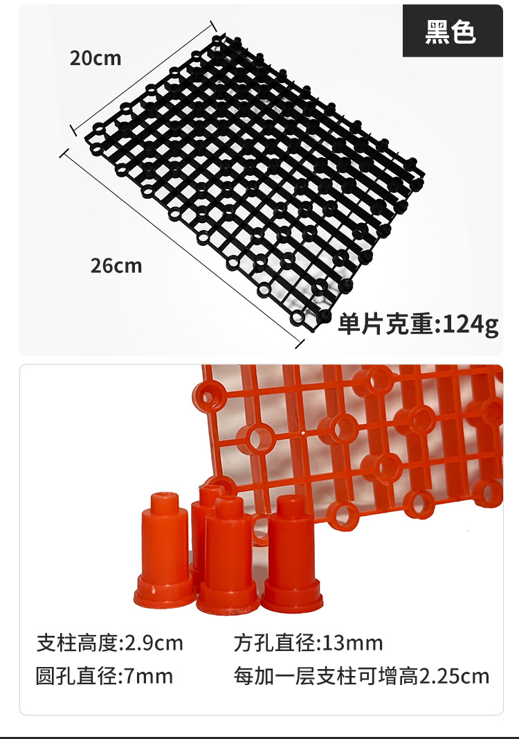 【支柱高度】:2.9cm,每增加一层支柱可增高2.25cm