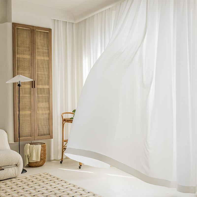일본식 하이 엔드 심플 커튼 투명 하 고 불투명 한 팬텀 거즈 커튼 화이트 거즈 완공 거실 침실 창