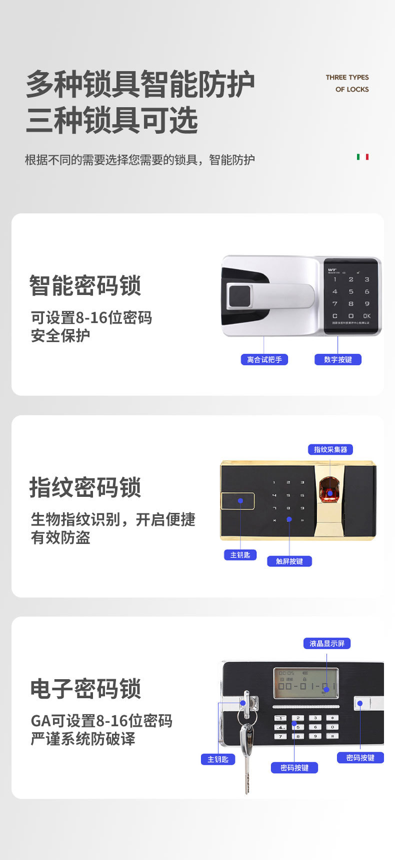 • 단일 섹션 보안 캐비닛 커피 흰색 지문 잠금