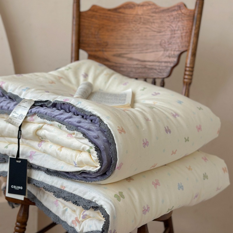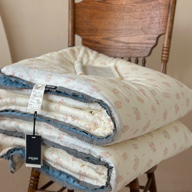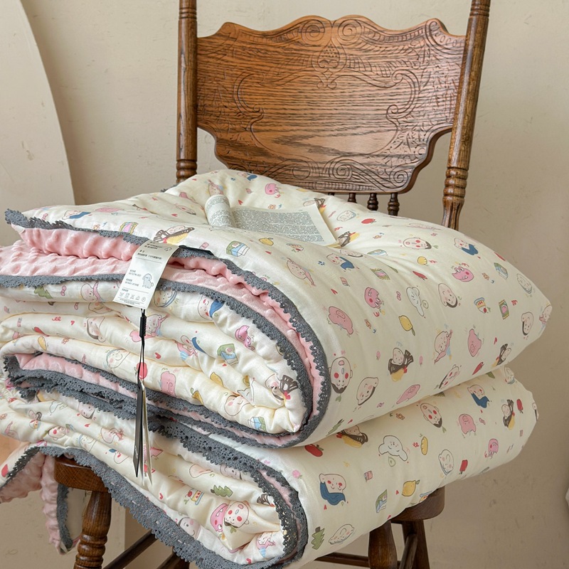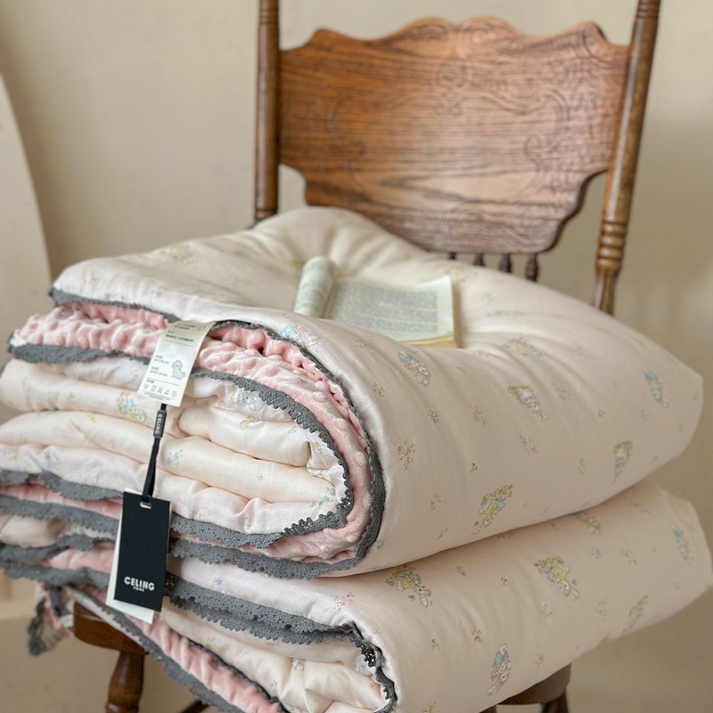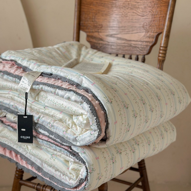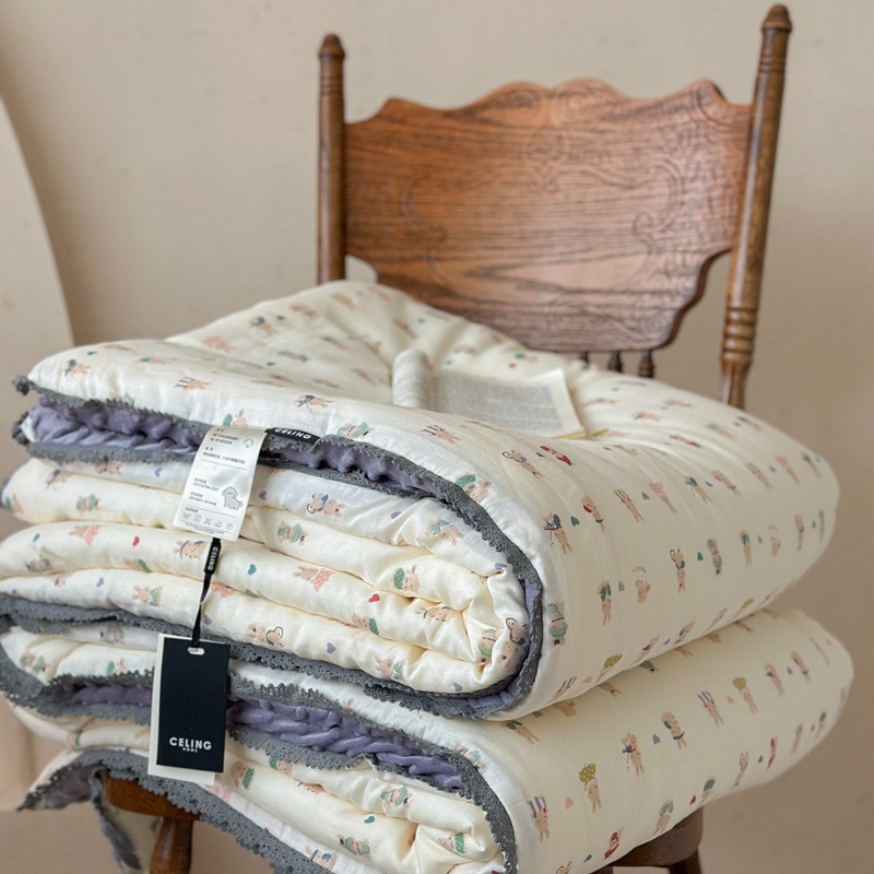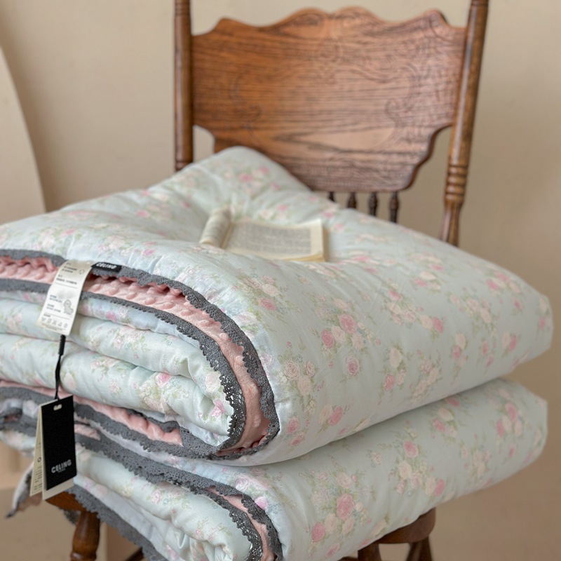 Ins Korean 스타일 작은 꽃 모든 면 비니 퀼트 거즈 겨울 퀼트 봄과 가을 퀼트 두꺼운 아기 Pacifying 벨벳 레이스 퀼트스토어 가기