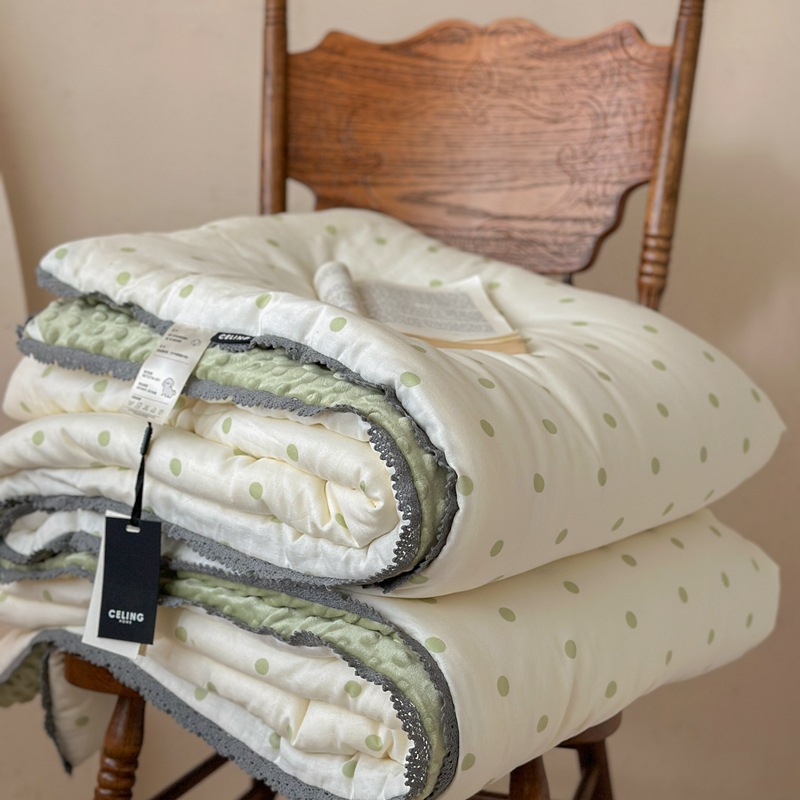 • 면 거즈 비니 퀼트 그린 도트 무늬