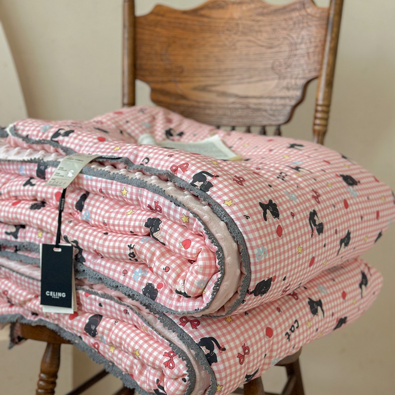 • 면 거즈 비니 퀼트 - 핑크 고양이