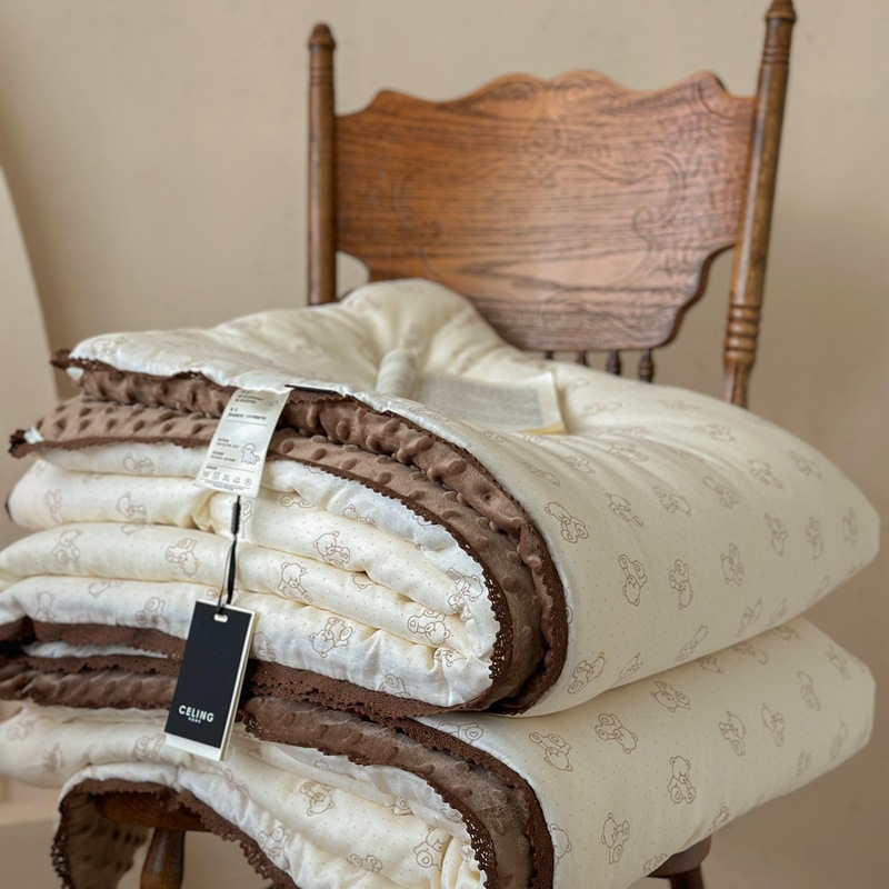 • 면 거즈 비니 퀼트 - 브라운 라이스 베어