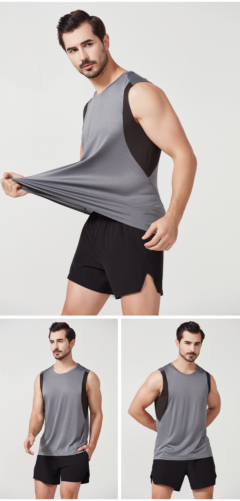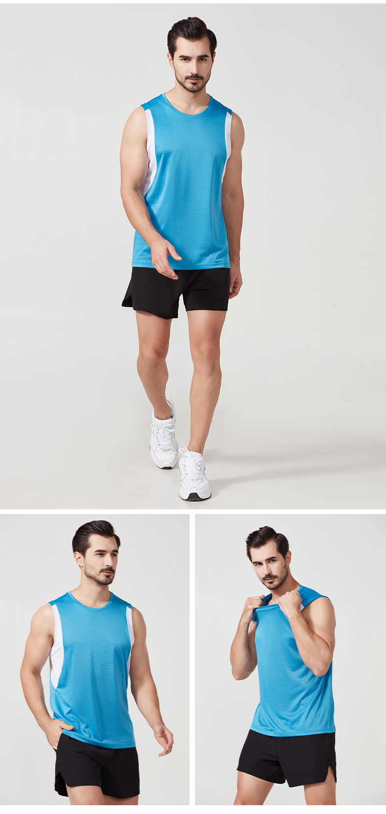 스포츠 조끼 남성용 여름 유럽 및 미국 느슨한 얇은 야외 훈련 스티치 통기성 남성용 달리기 속건 의류