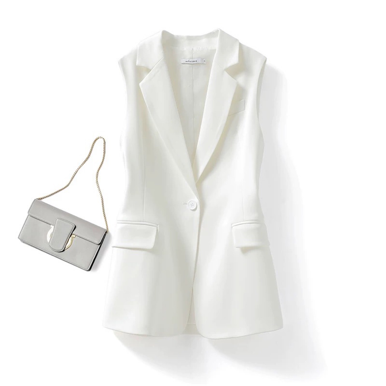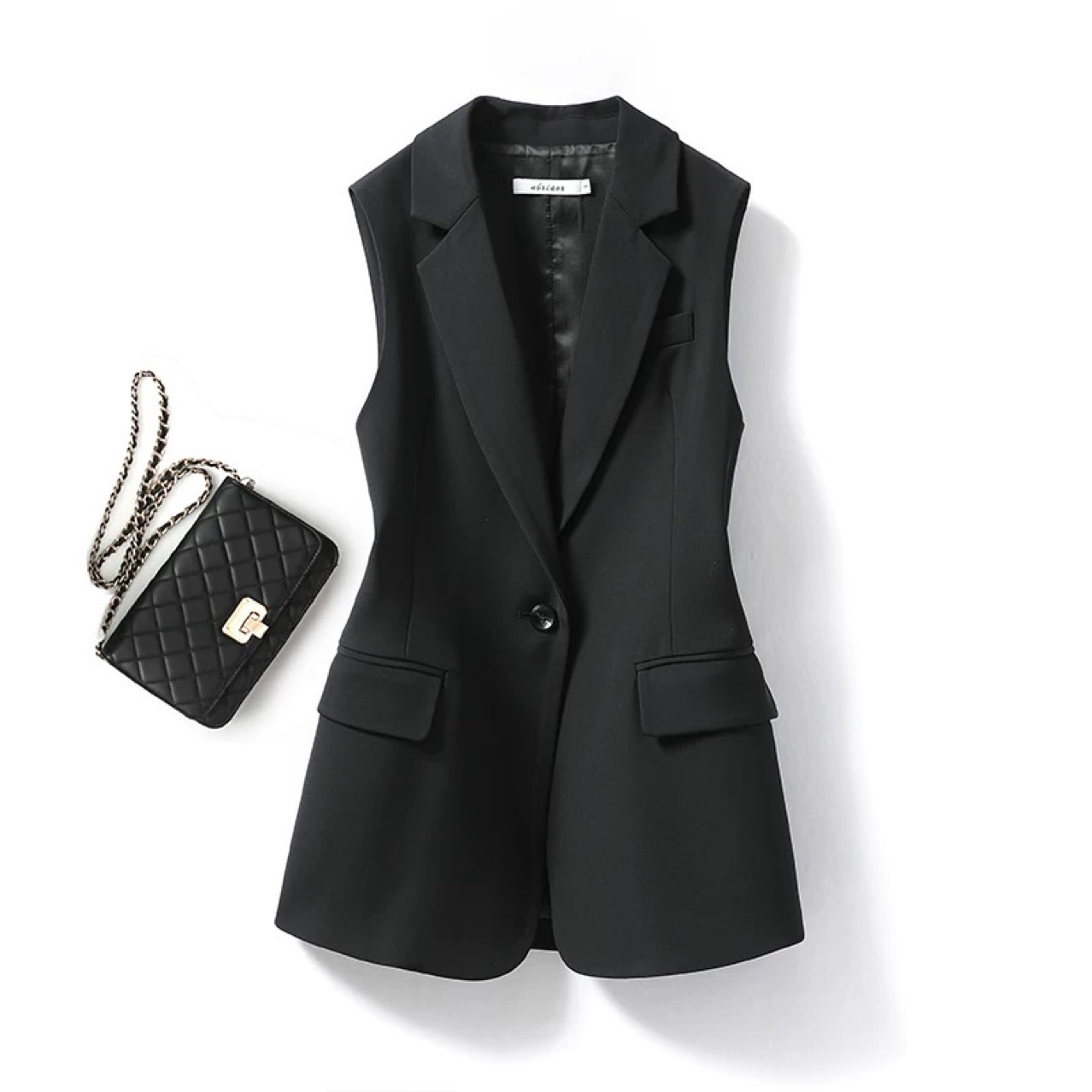 솔리드 컬러 블랙 정장 칼라 조끼 여성 단추 기질 통근 조끼 2025 봄, 가을 조끼 여성 대외 무역 국경스토어 가기