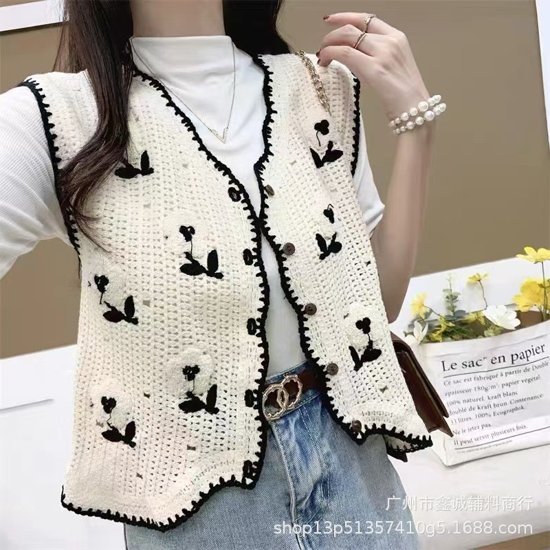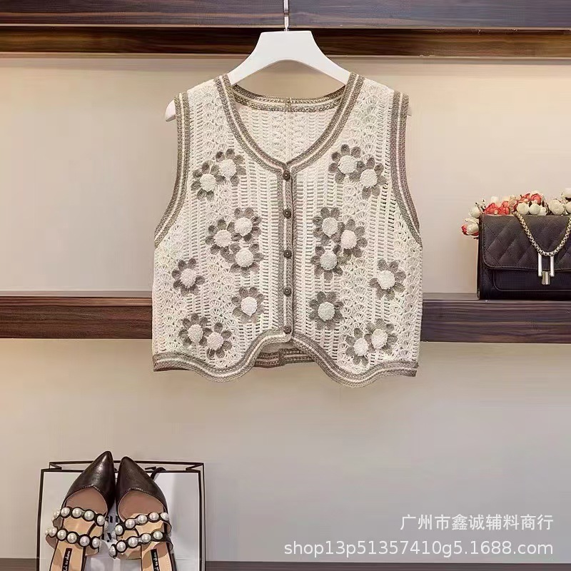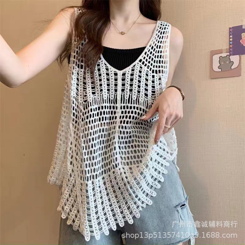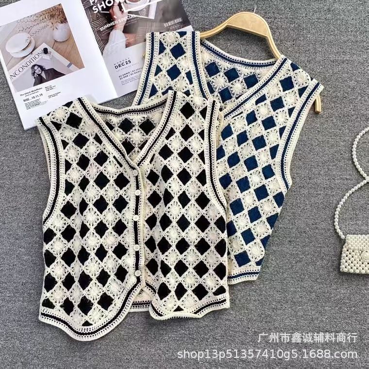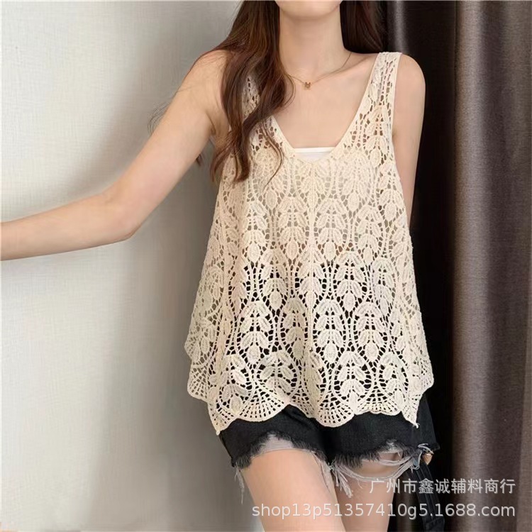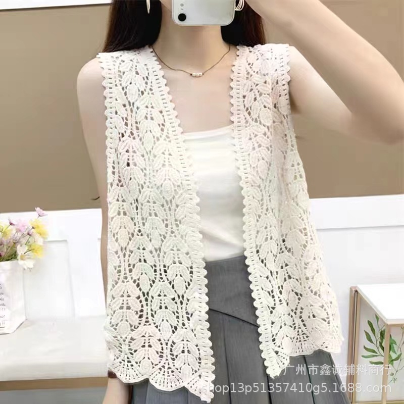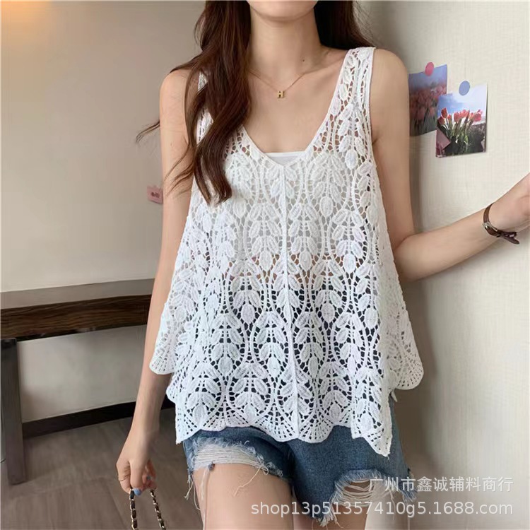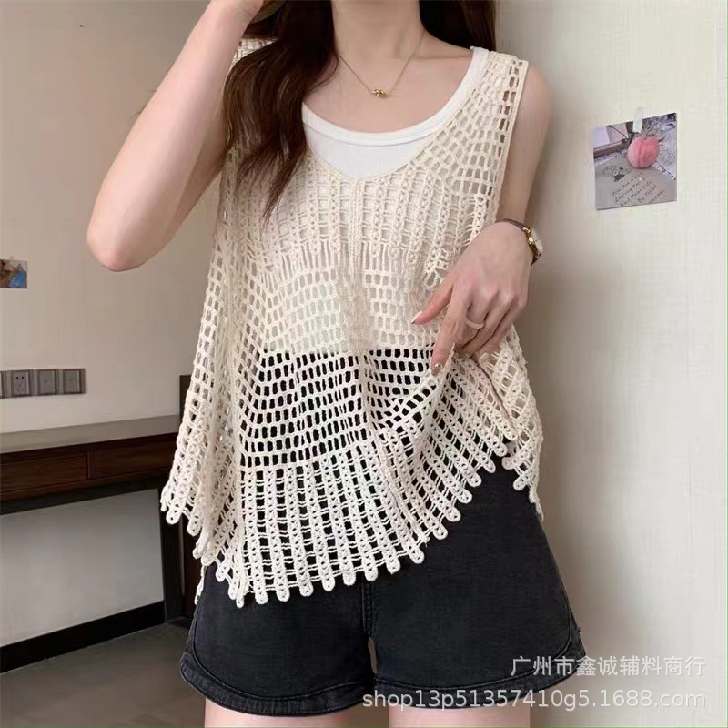 새로운 한국식 중공 크로 셰 뜨개질 민소매 니트 조끼 여성의 디자인 감각 틈새 문학 레트로 스택 외부 조끼스토어 가기