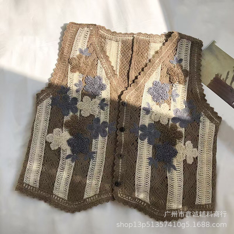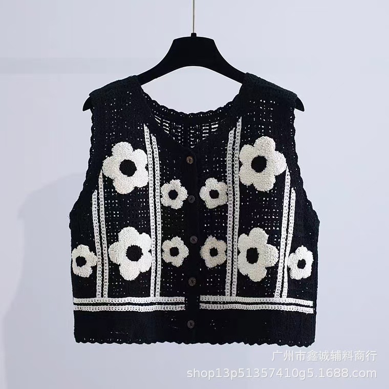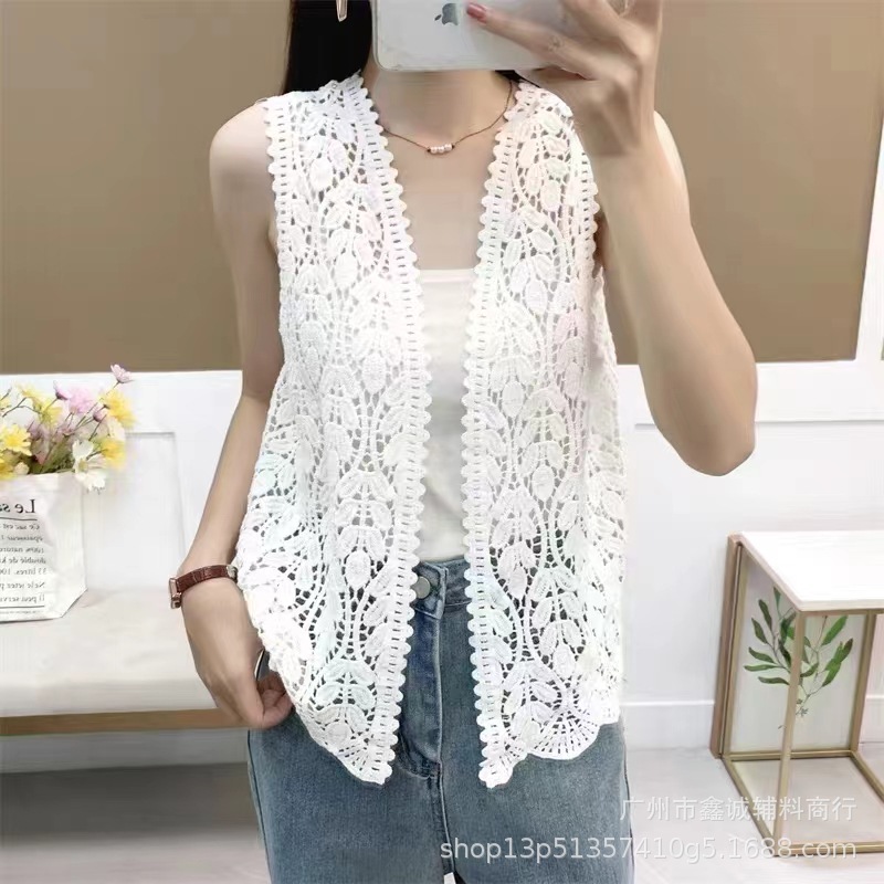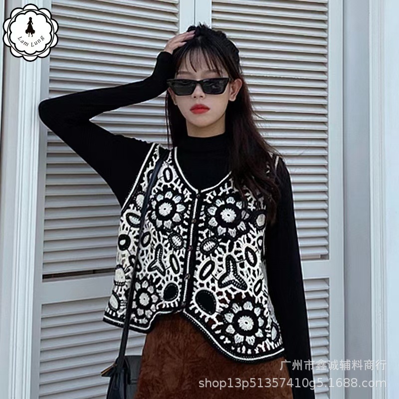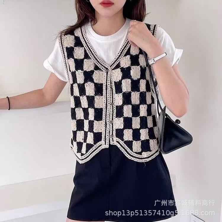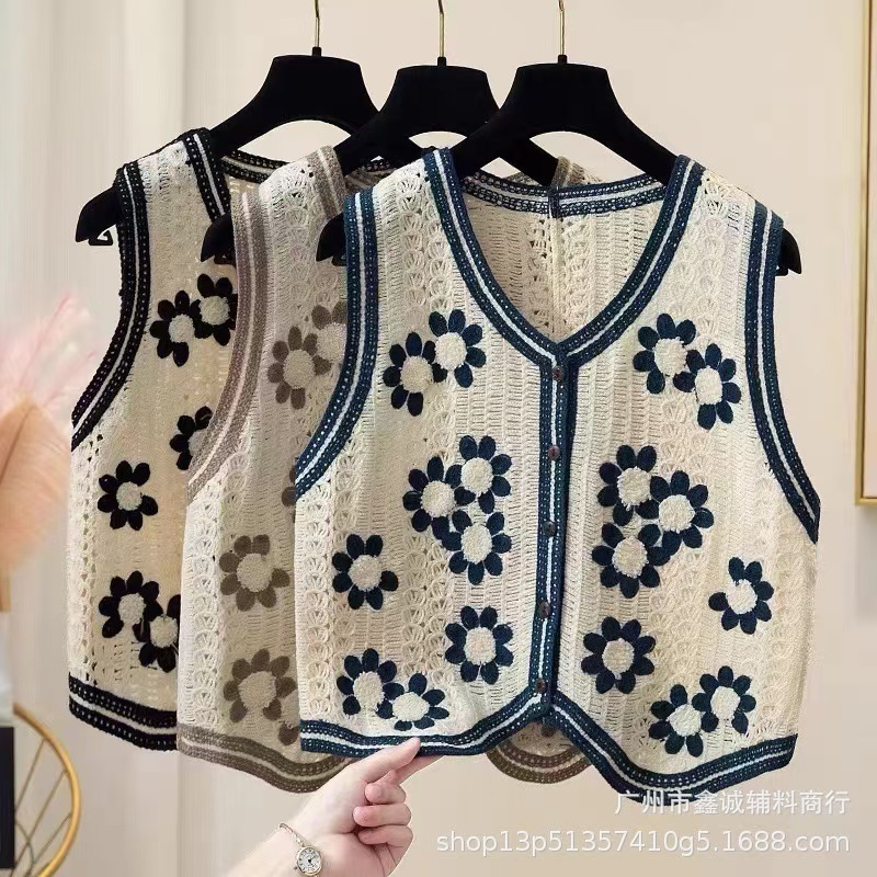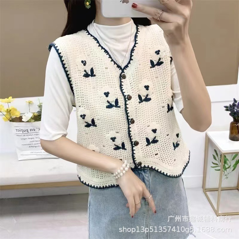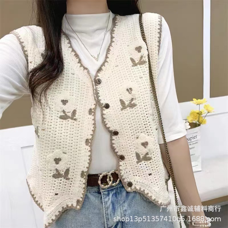 새로운 한국식 중공 크로 셰 뜨개질 민소매 니트 조끼 여성의 디자인 감각 틈새 문학 레트로 스택 외부 조끼스토어 가기