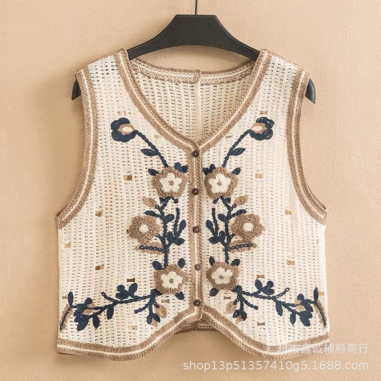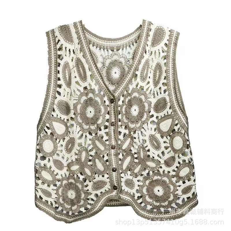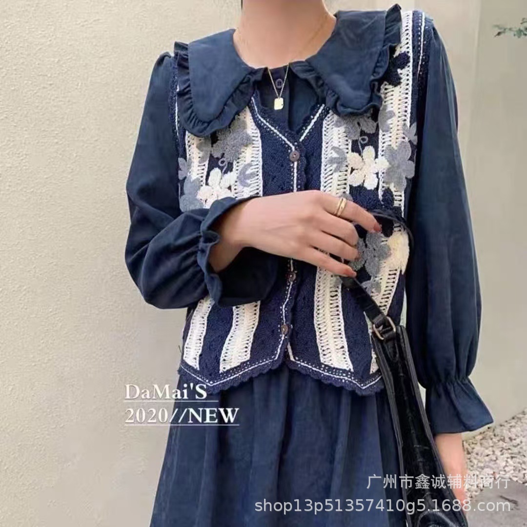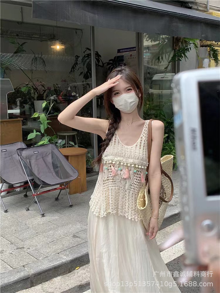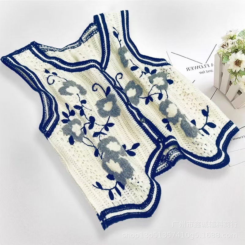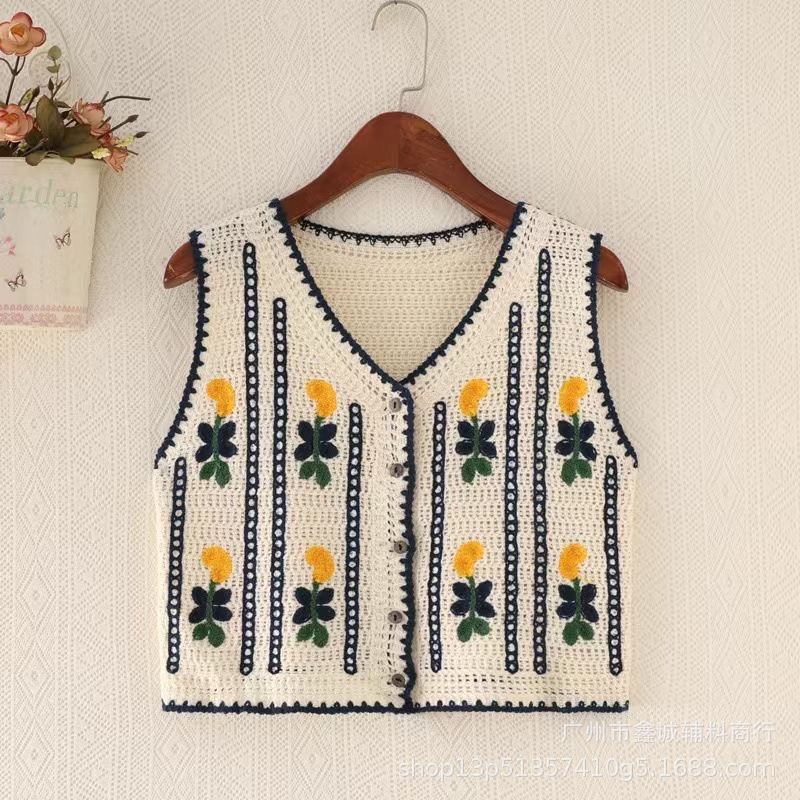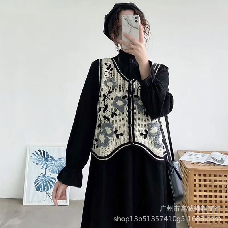 새로운 한국식 중공 크로 셰 뜨개질 민소매 니트 조끼 여성의 디자인 감각 틈새 문학 레트로 스택 외부 조끼스토어 가기