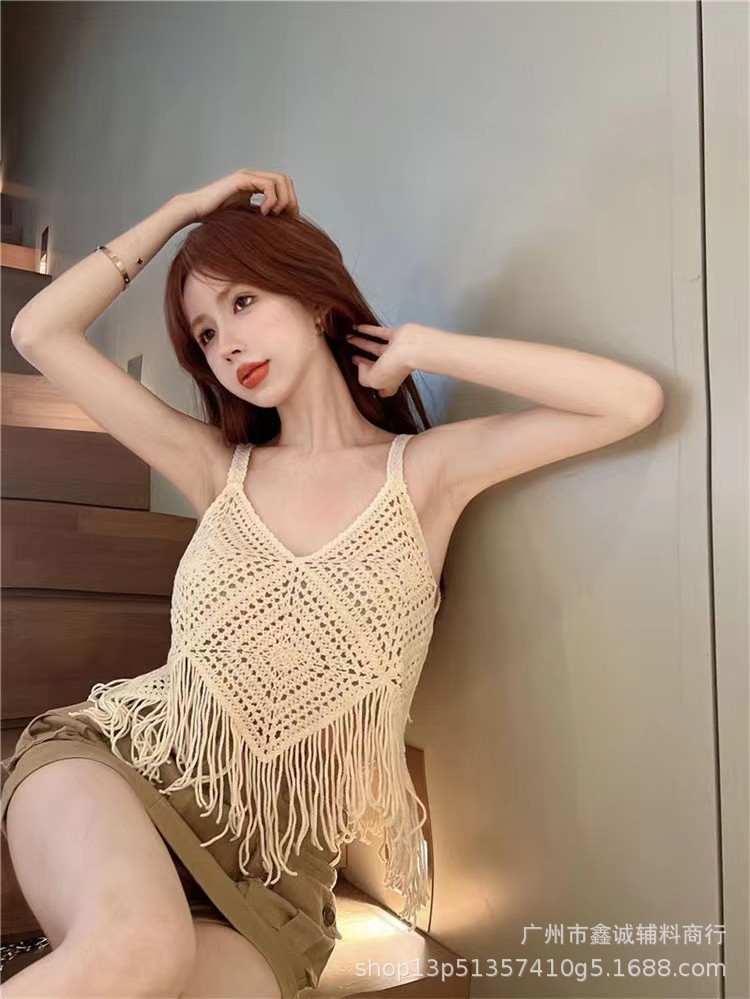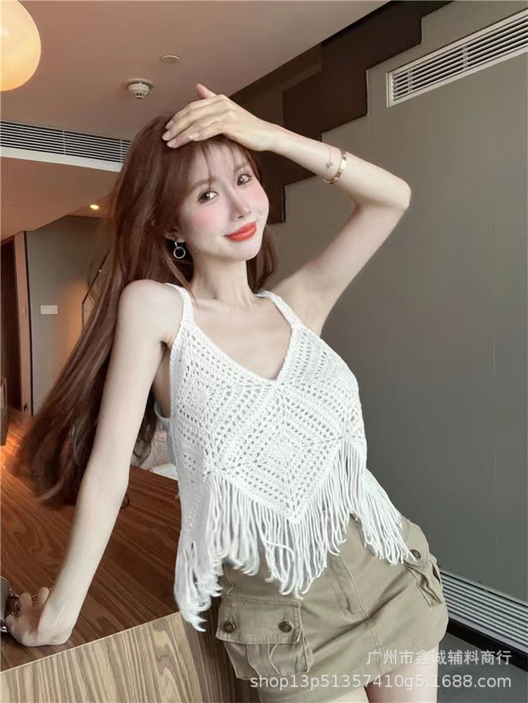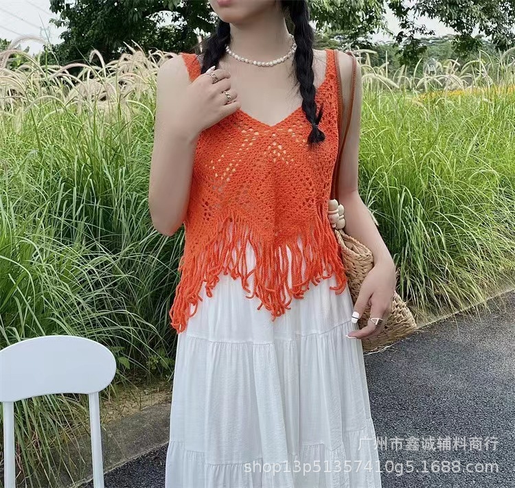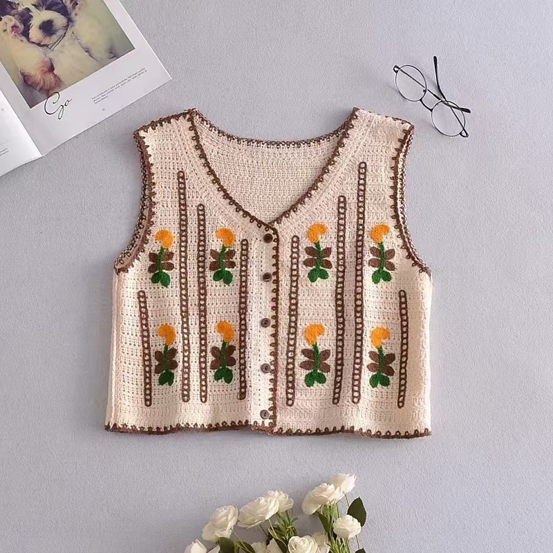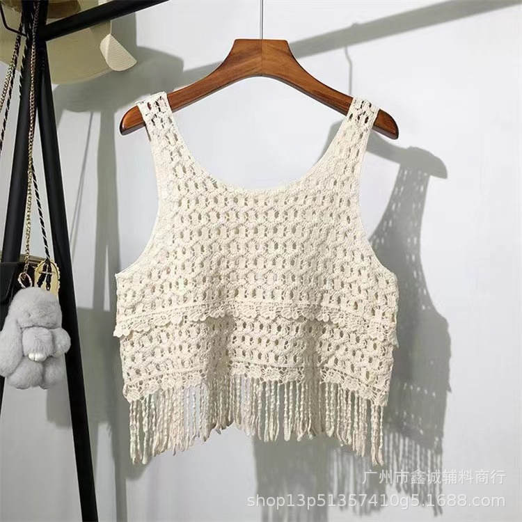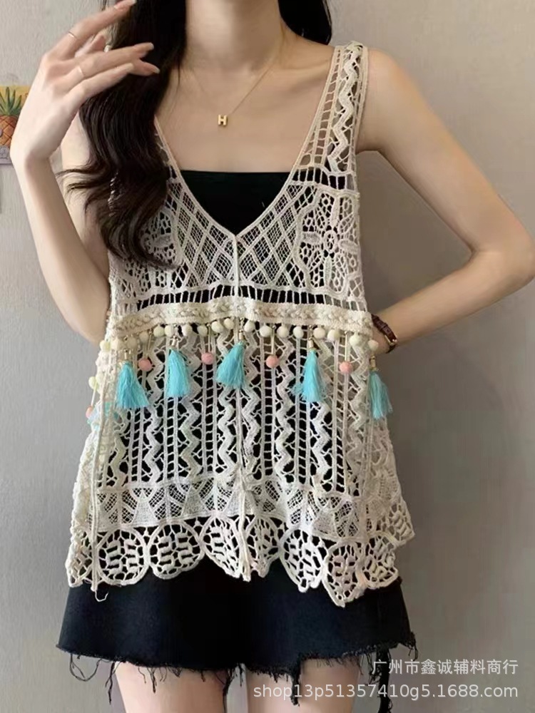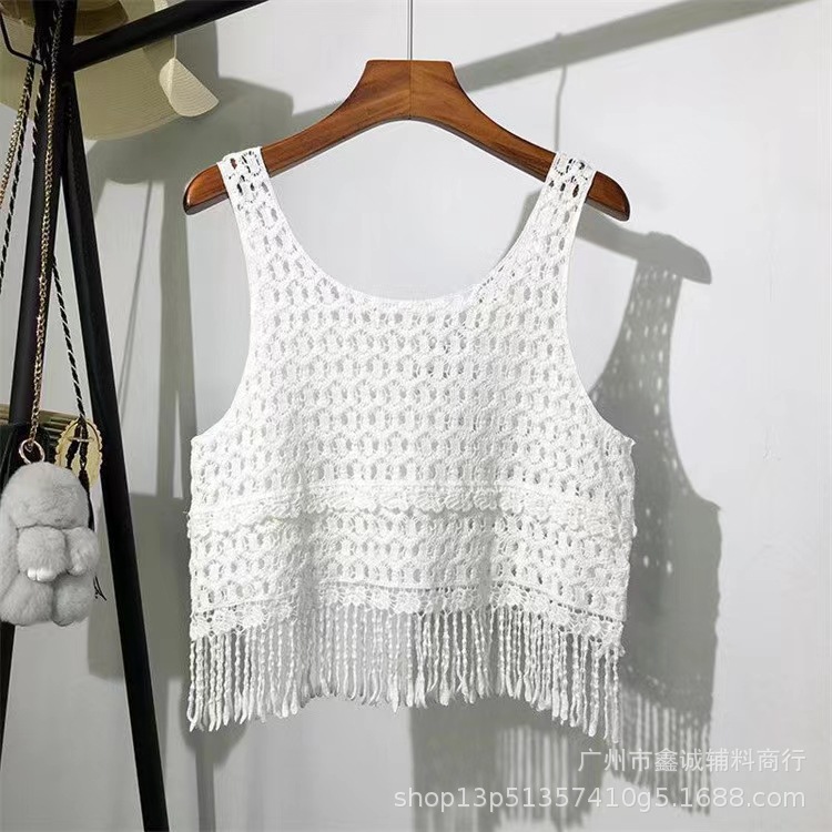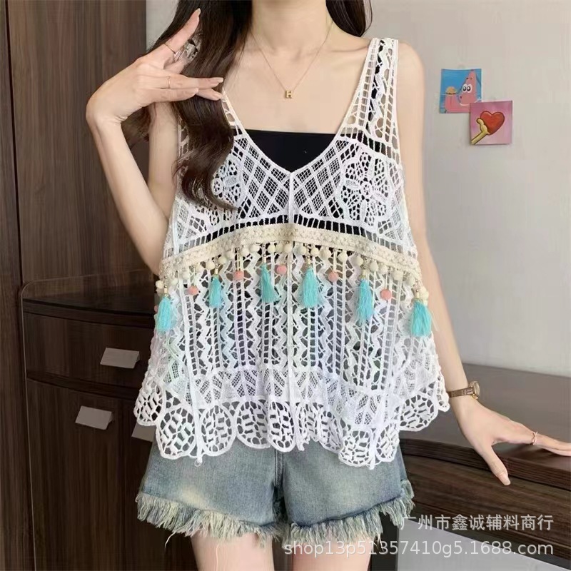 새로운 한국식 중공 크로 셰 뜨개질 민소매 니트 조끼 여성의 디자인 감각 틈새 문학 레트로 스택 외부 조끼스토어 가기