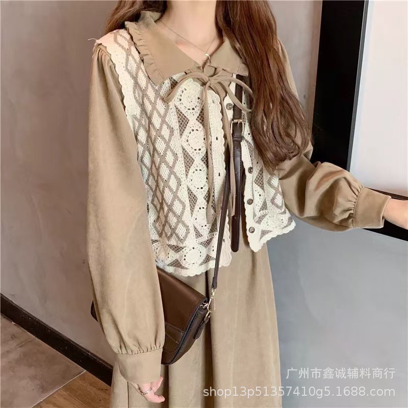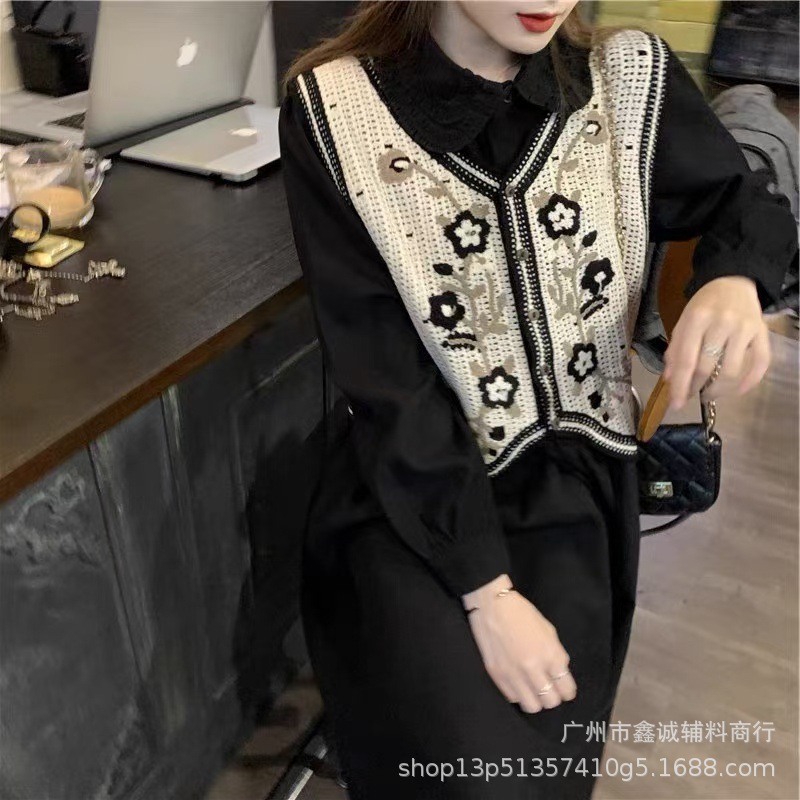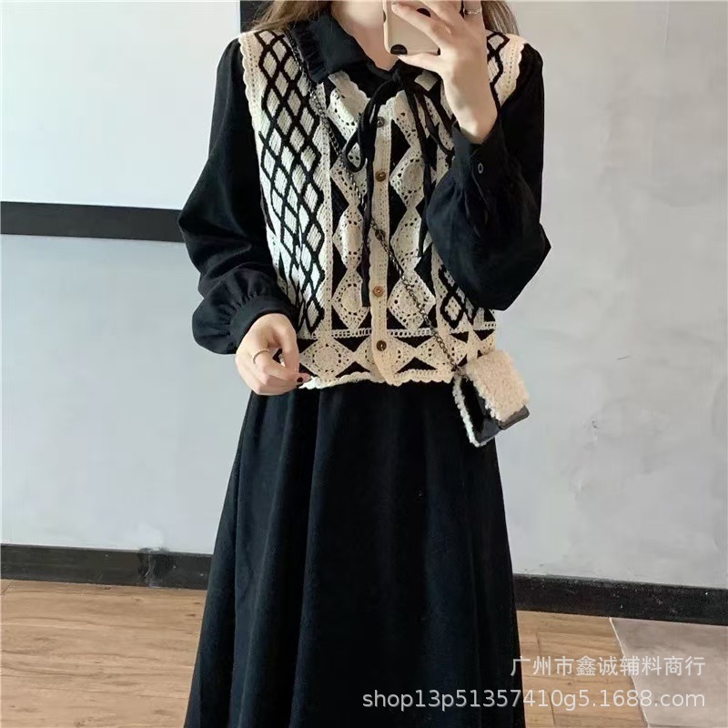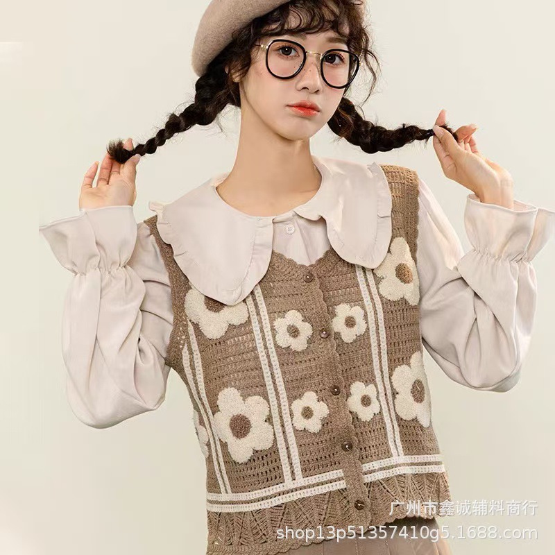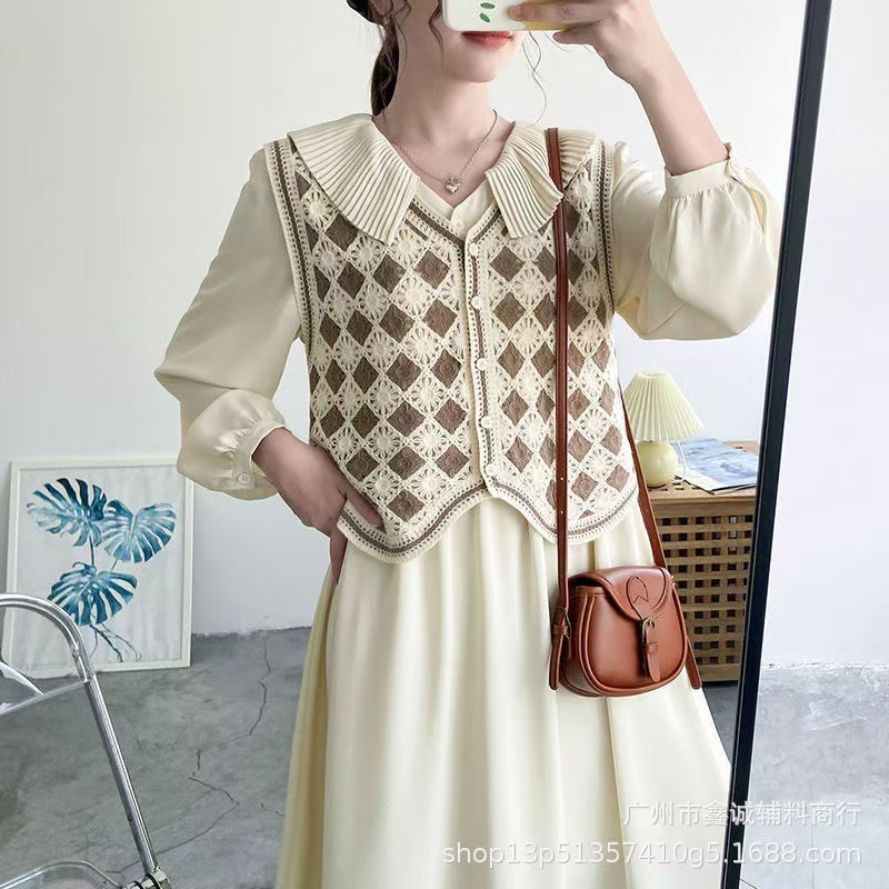 새로운 한국식 중공 크로 셰 뜨개질 민소매 니트 조끼 여성의 디자인 감각 틈새 문학 레트로 스택 외부 조끼