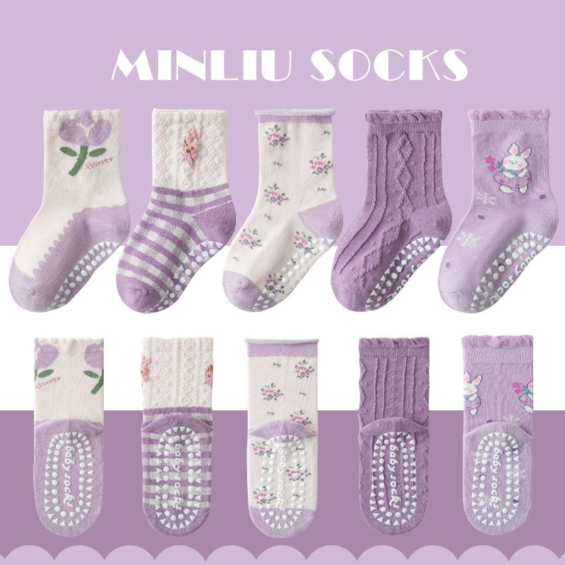 어린이 양말 봄과 가을 아기 양말 만화 면화 양말 1-12 세 중 및 대형 어린이 분배 트램폴린 양말 미끄럼 방지