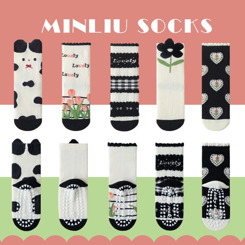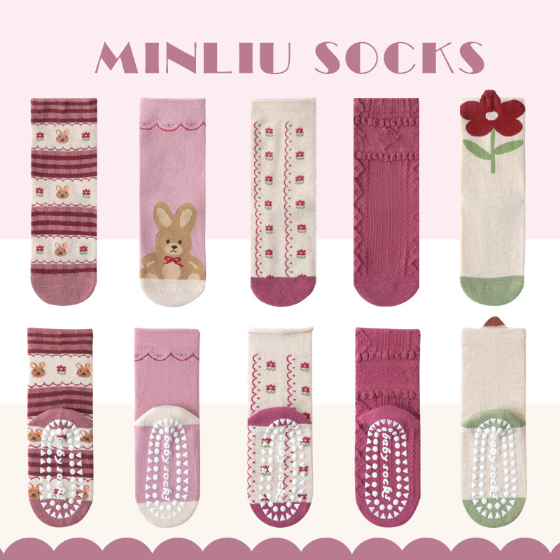 어린이 양말 봄과 가을 아기 양말 만화 면화 양말 1-12 세 중 및 대형 어린이 분배 트램폴린 양말 미끄럼 방지스토어 가기