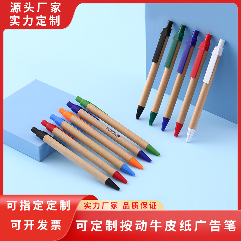 친환경 크라프트지 펜, 로고 인쇄 가능한 펜촉이 있는 원형 볼펜, 종이 튜브 펜, 문구 회사의 문화적이고 창의적인 문구 용품