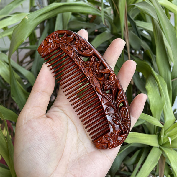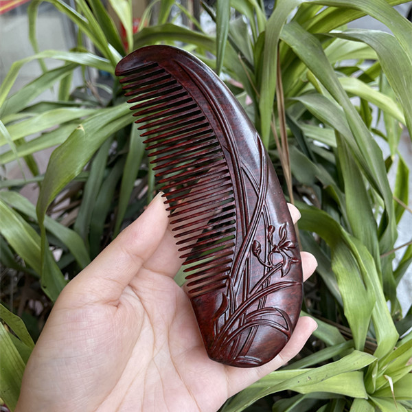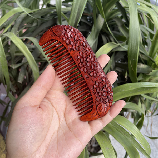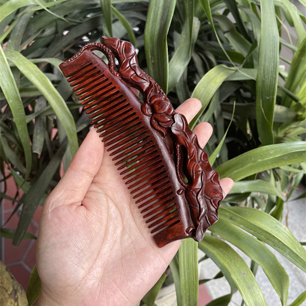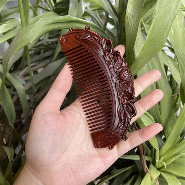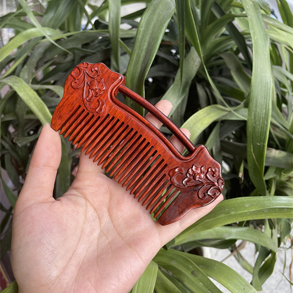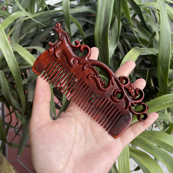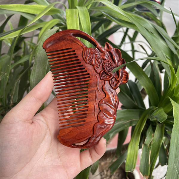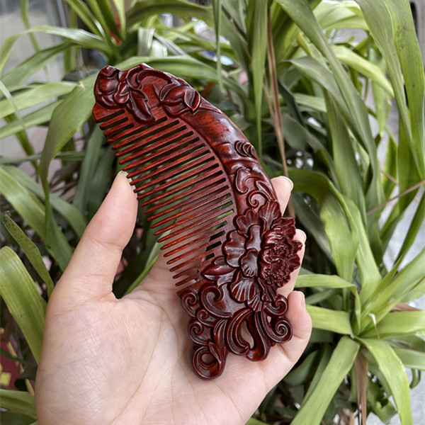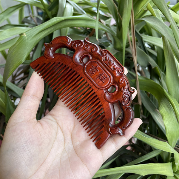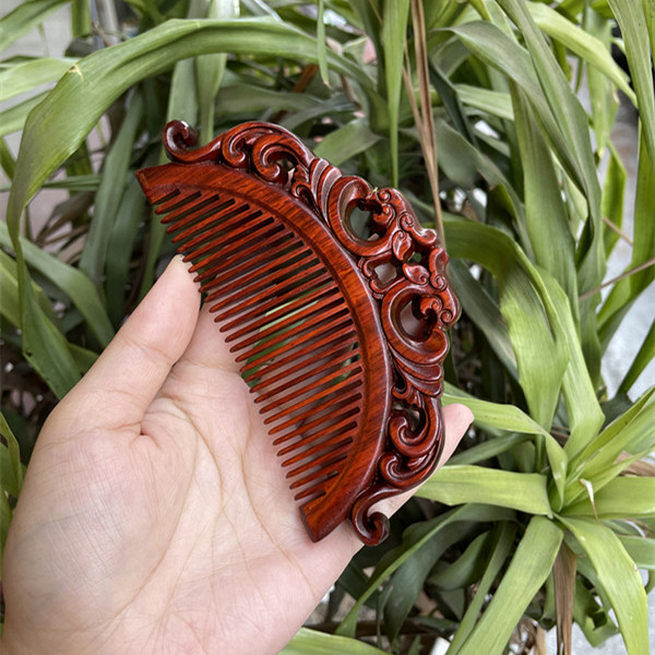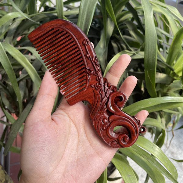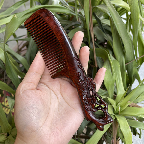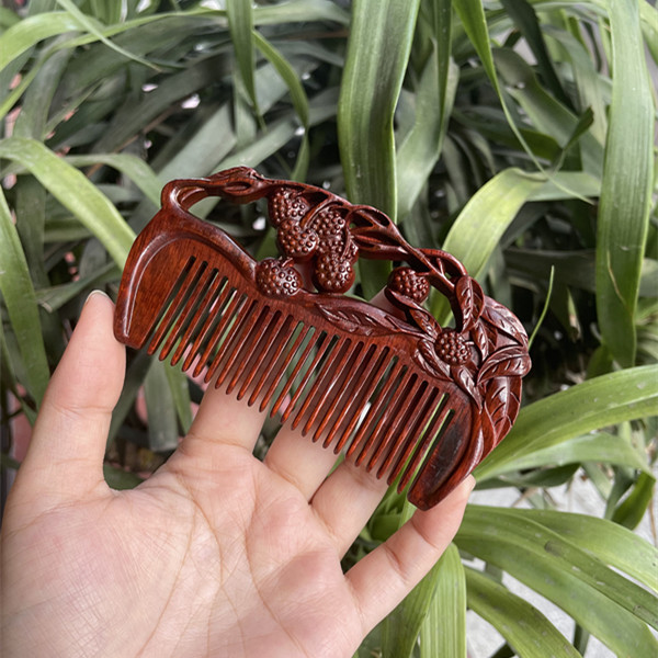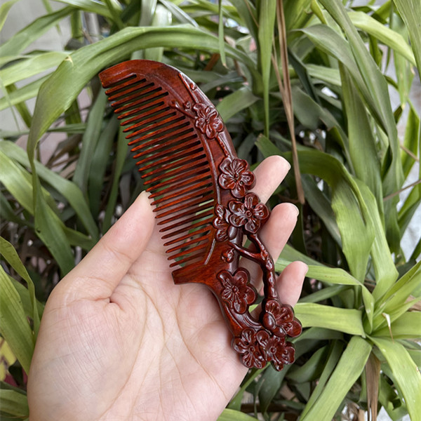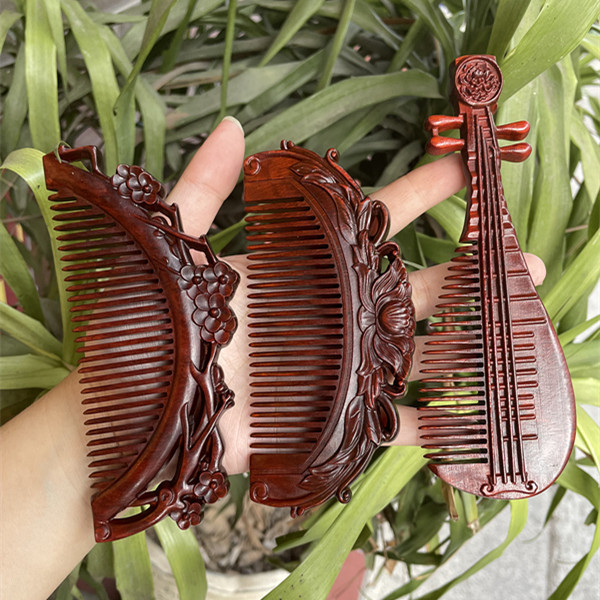 고대 선인의 천연 소엽 자단 나무 조각 빗, 복고풍 마사지 빗, 문화 창작 선물, 라이브 방송에서 여자친구에게 선물