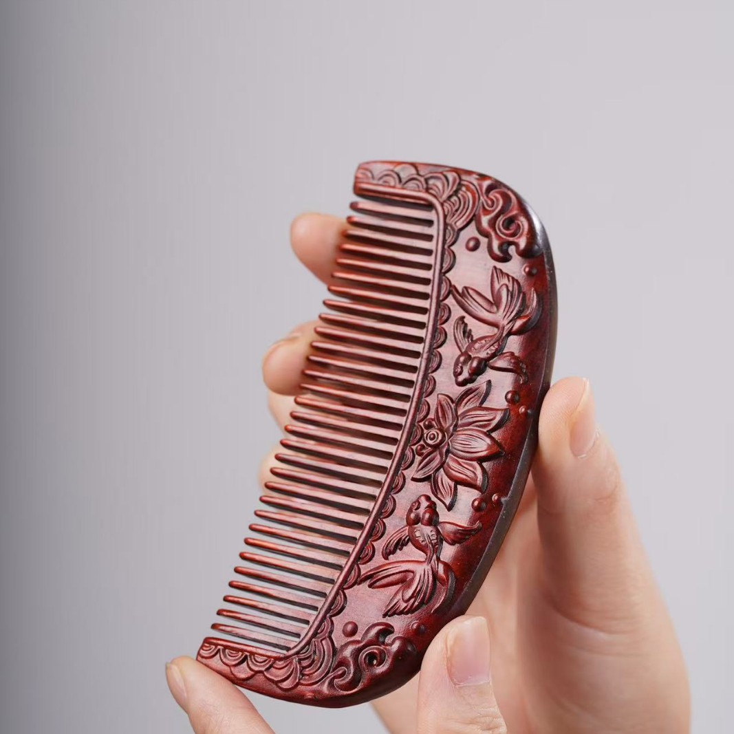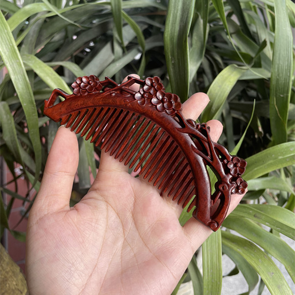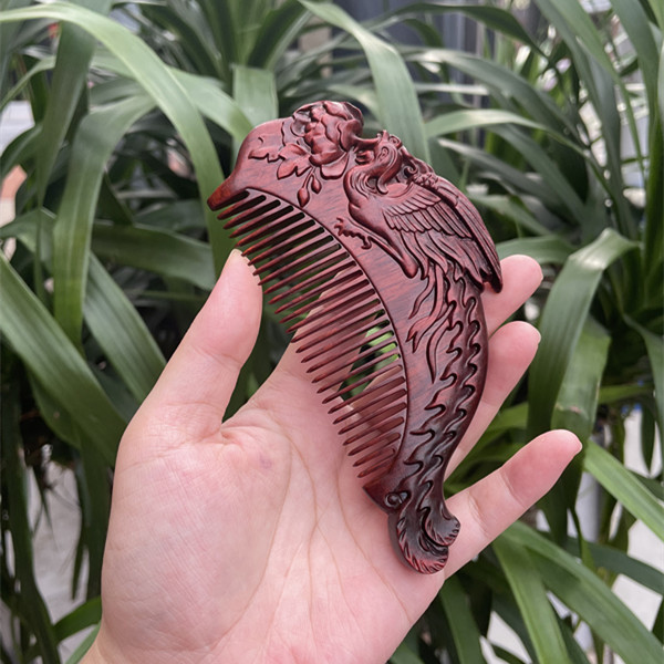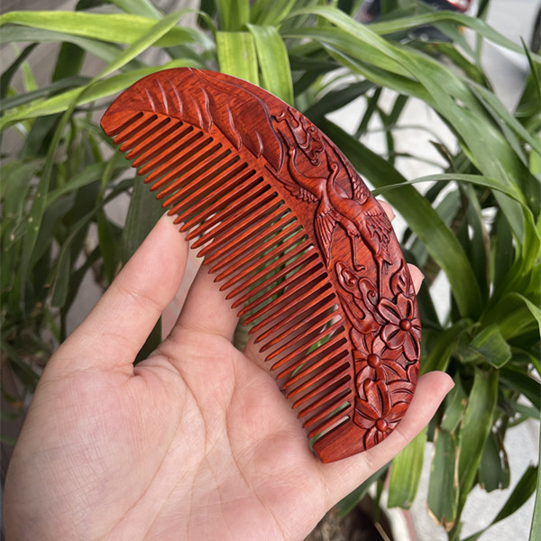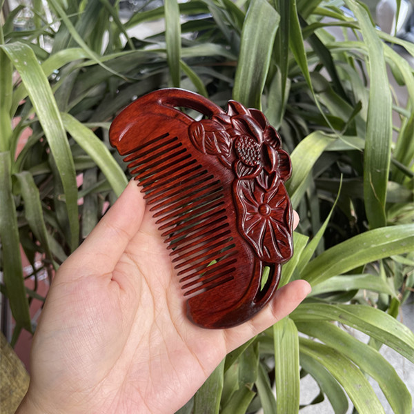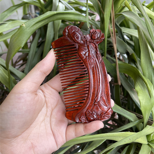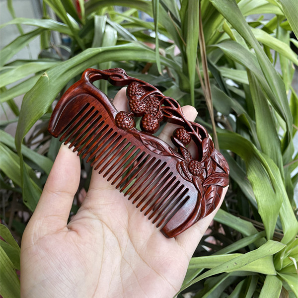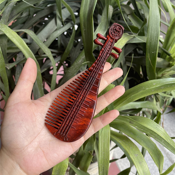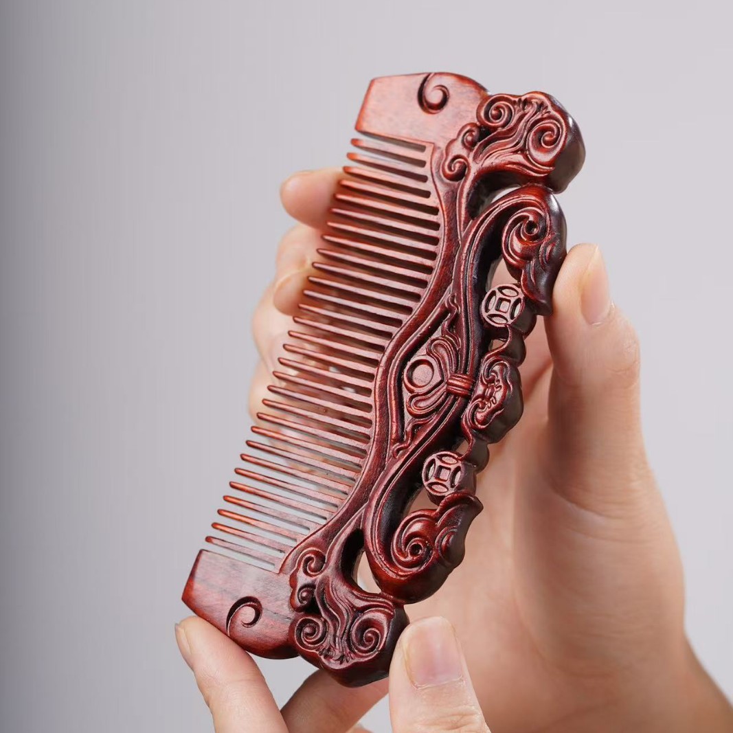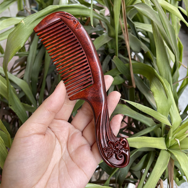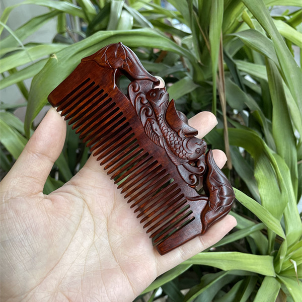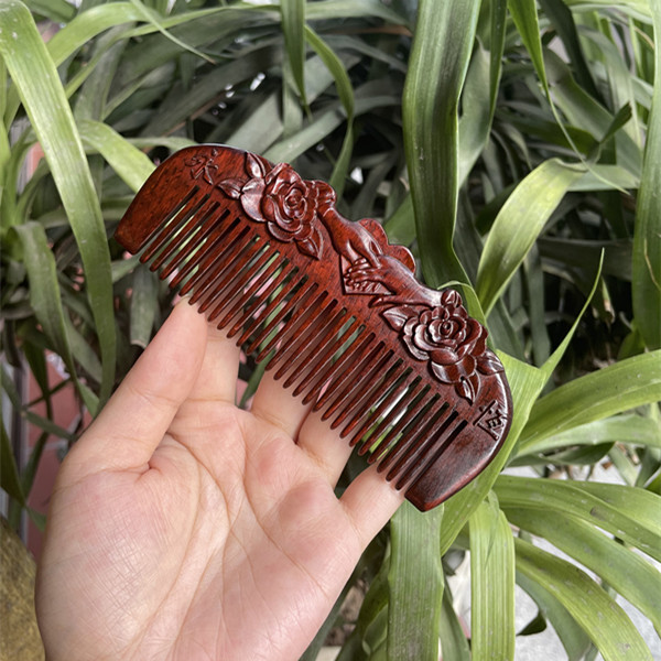 고대 선인의 천연 소엽 자단 나무 조각 빗, 복고풍 마사지 빗, 문화 창작 선물, 라이브 방송에서 여자친구에게 선물