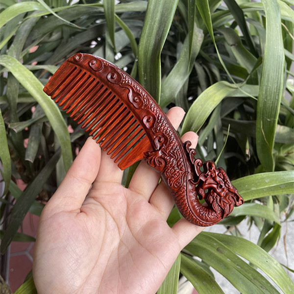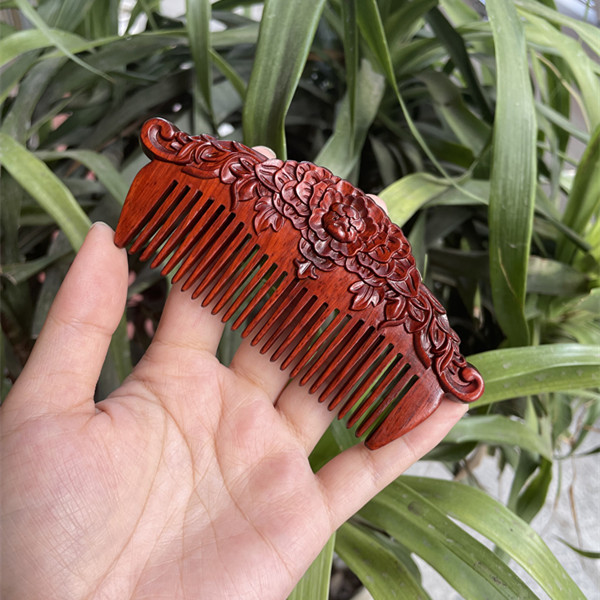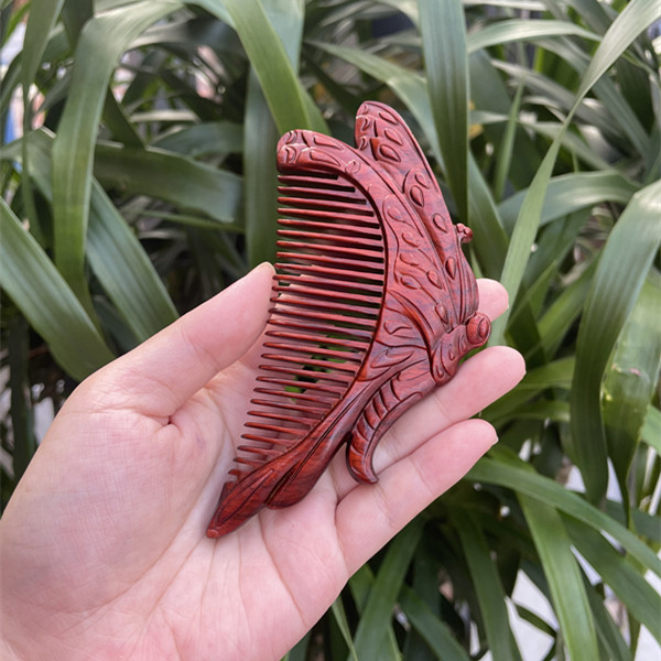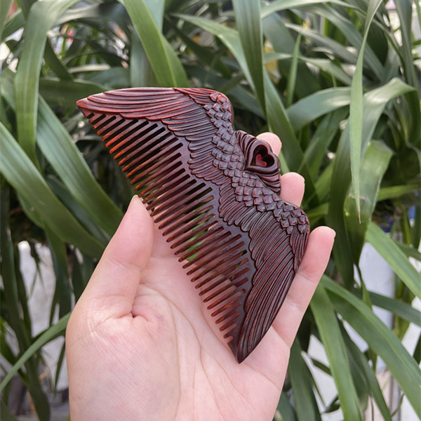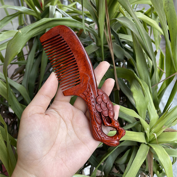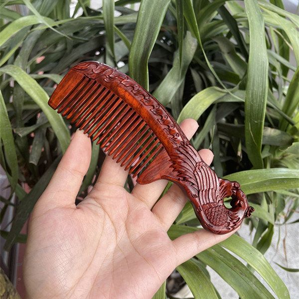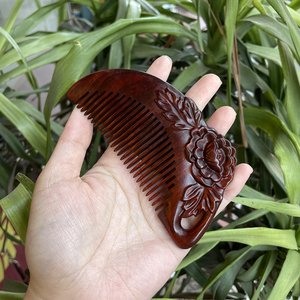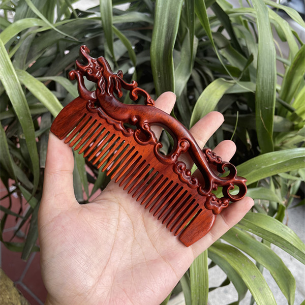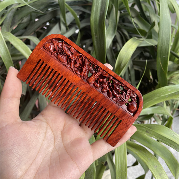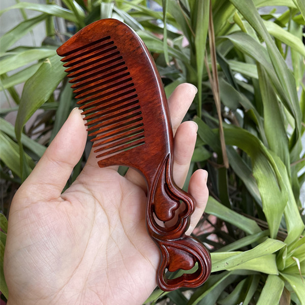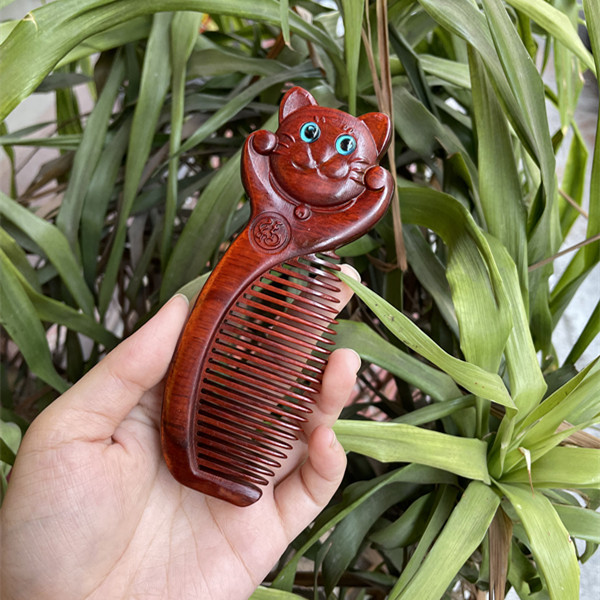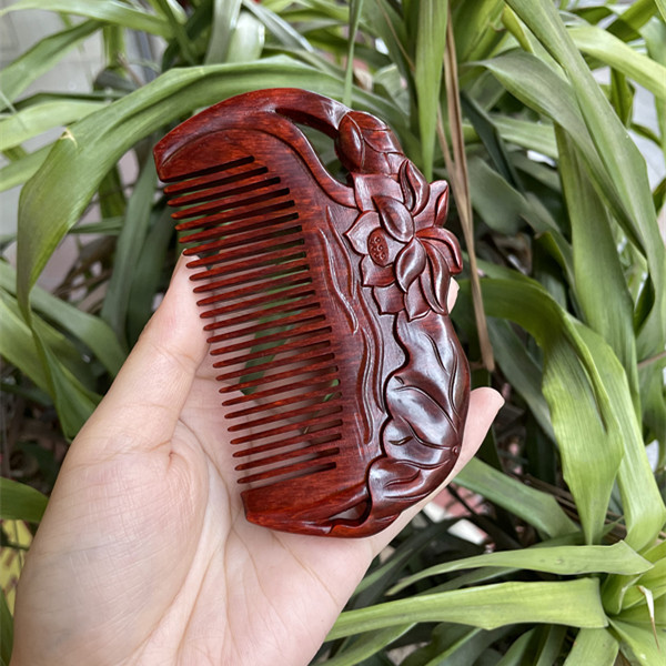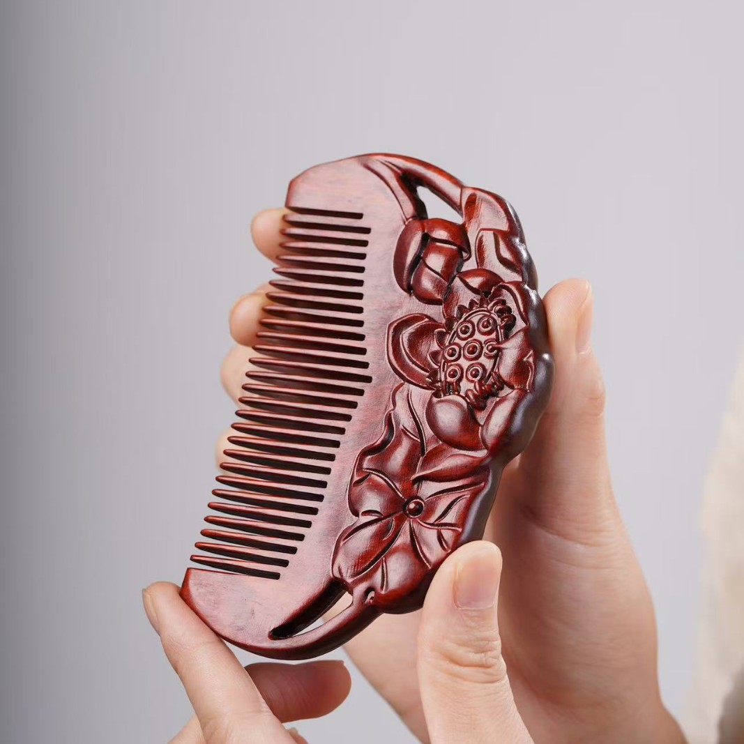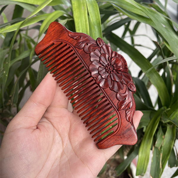 고대 선인의 천연 소엽 자단 나무 조각 빗, 복고풍 마사지 빗, 문화 창작 선물, 라이브 방송에서 여자친구에게 선물