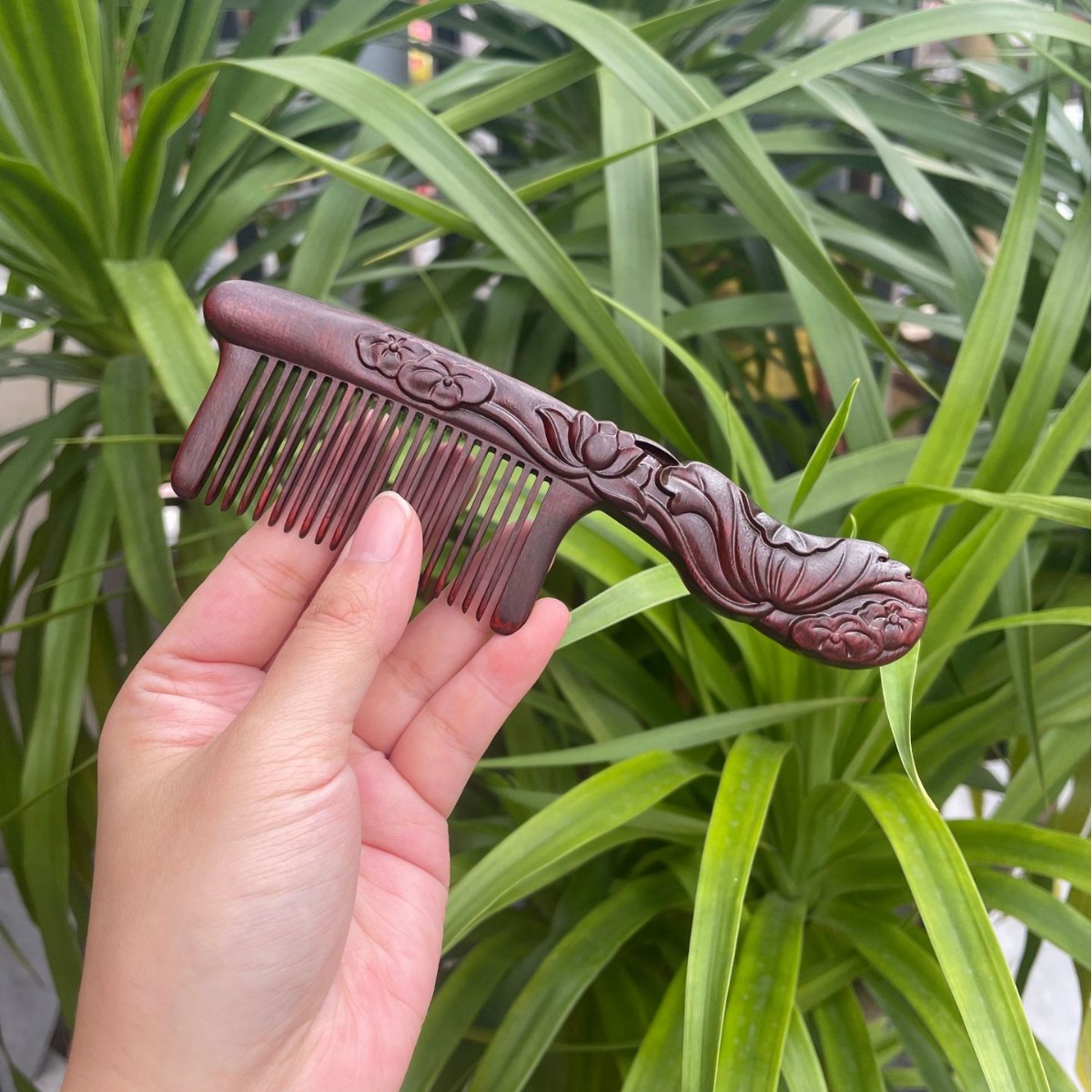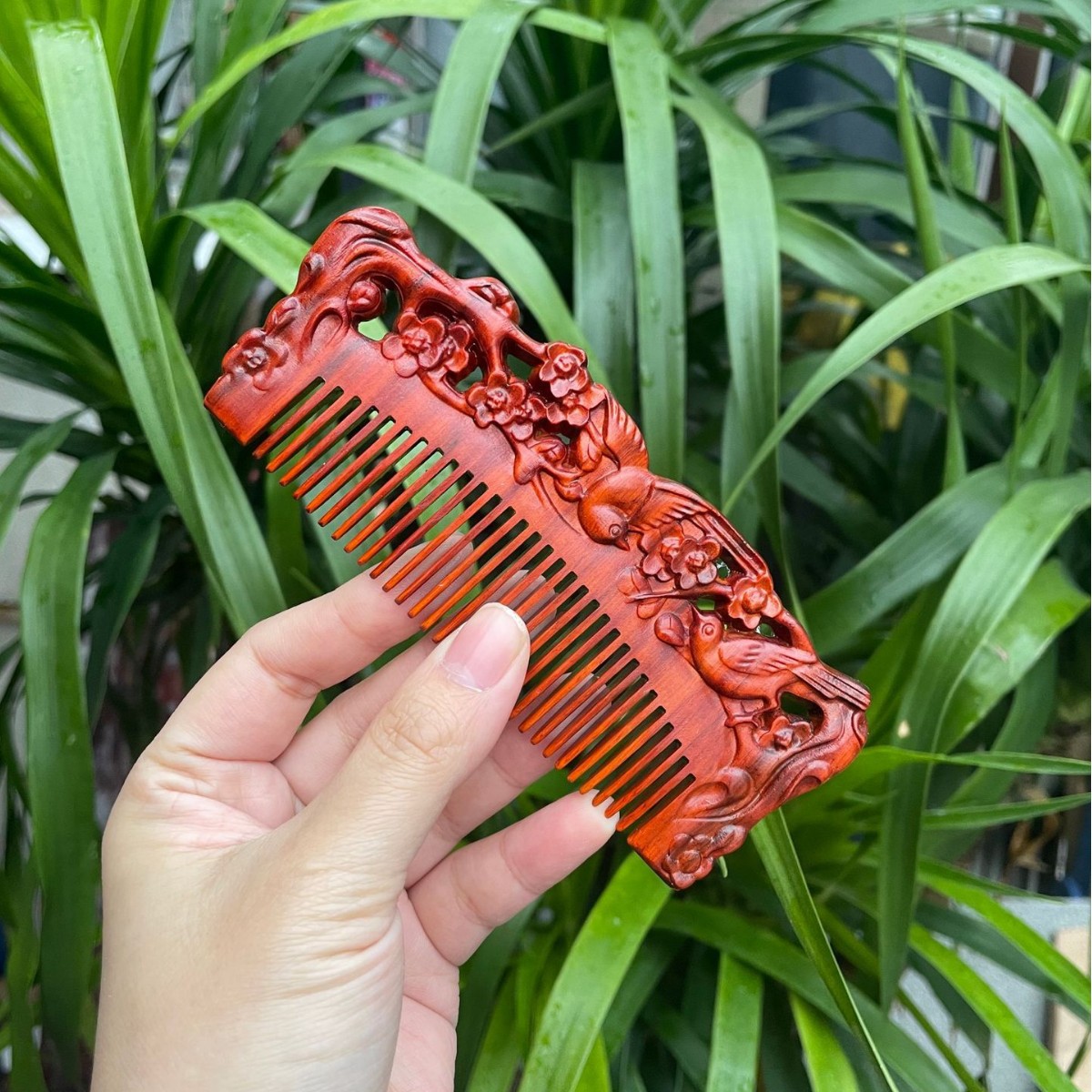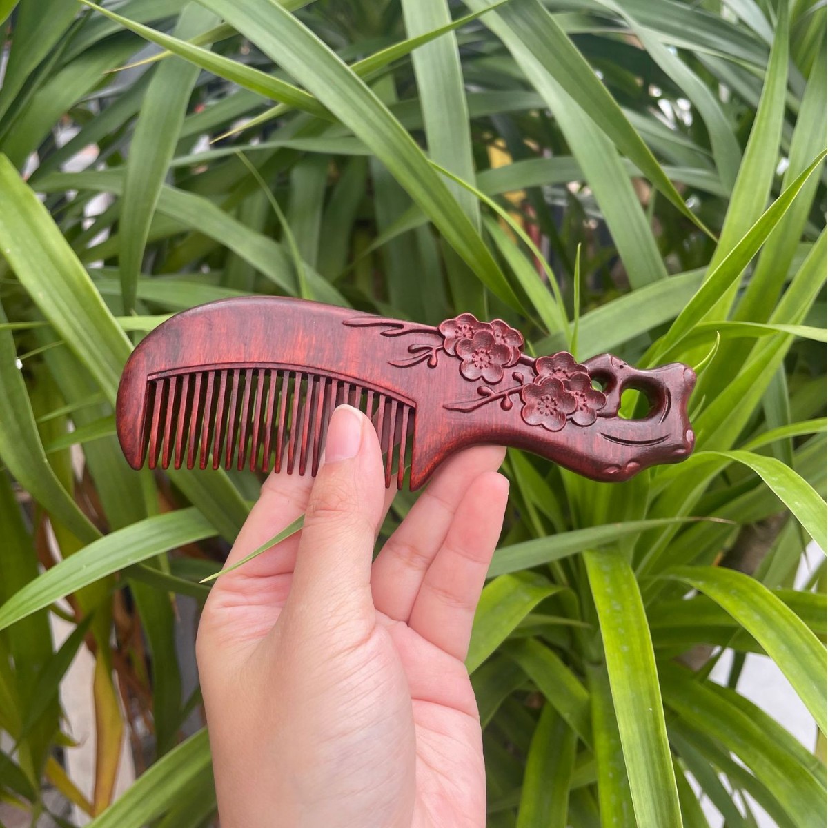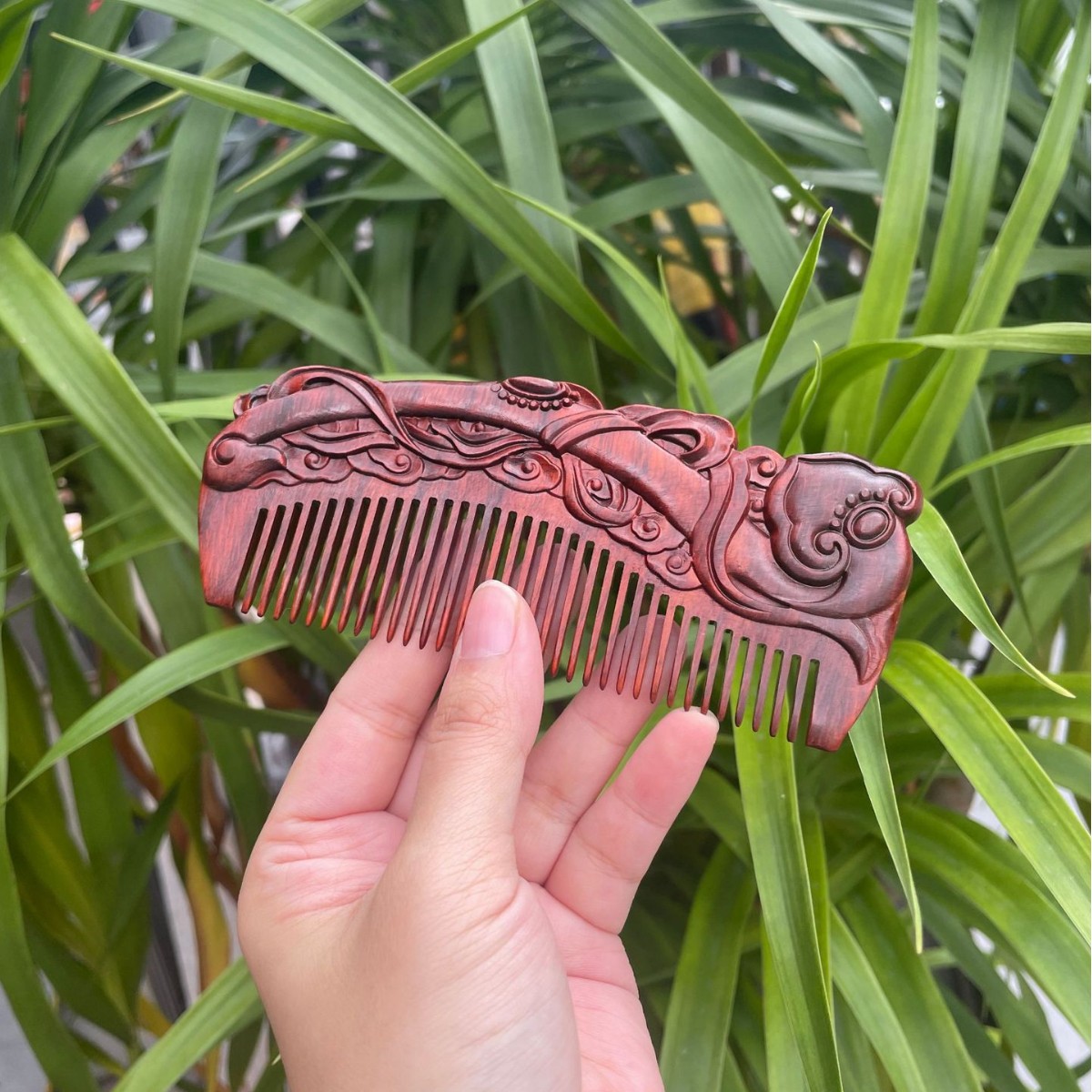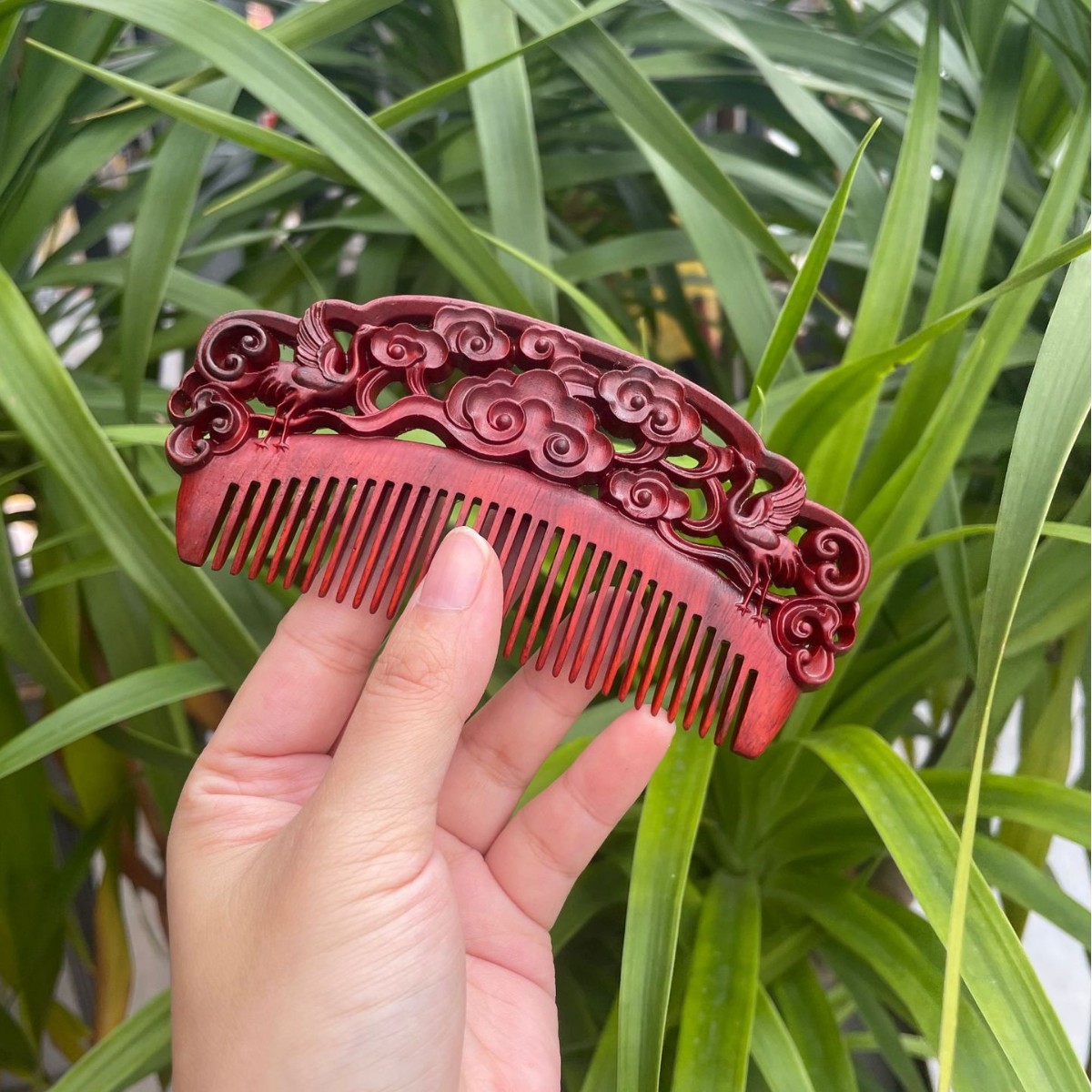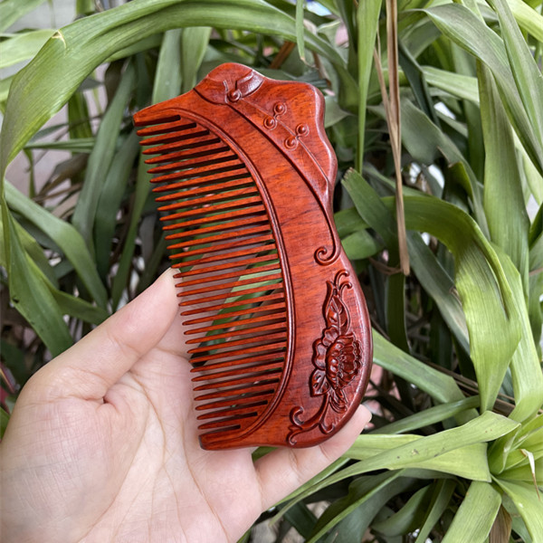 고대 선인의 천연 소엽 자단 나무 조각 빗, 복고풍 마사지 빗, 문화 창작 선물, 라이브 방송에서 여자친구에게 선물