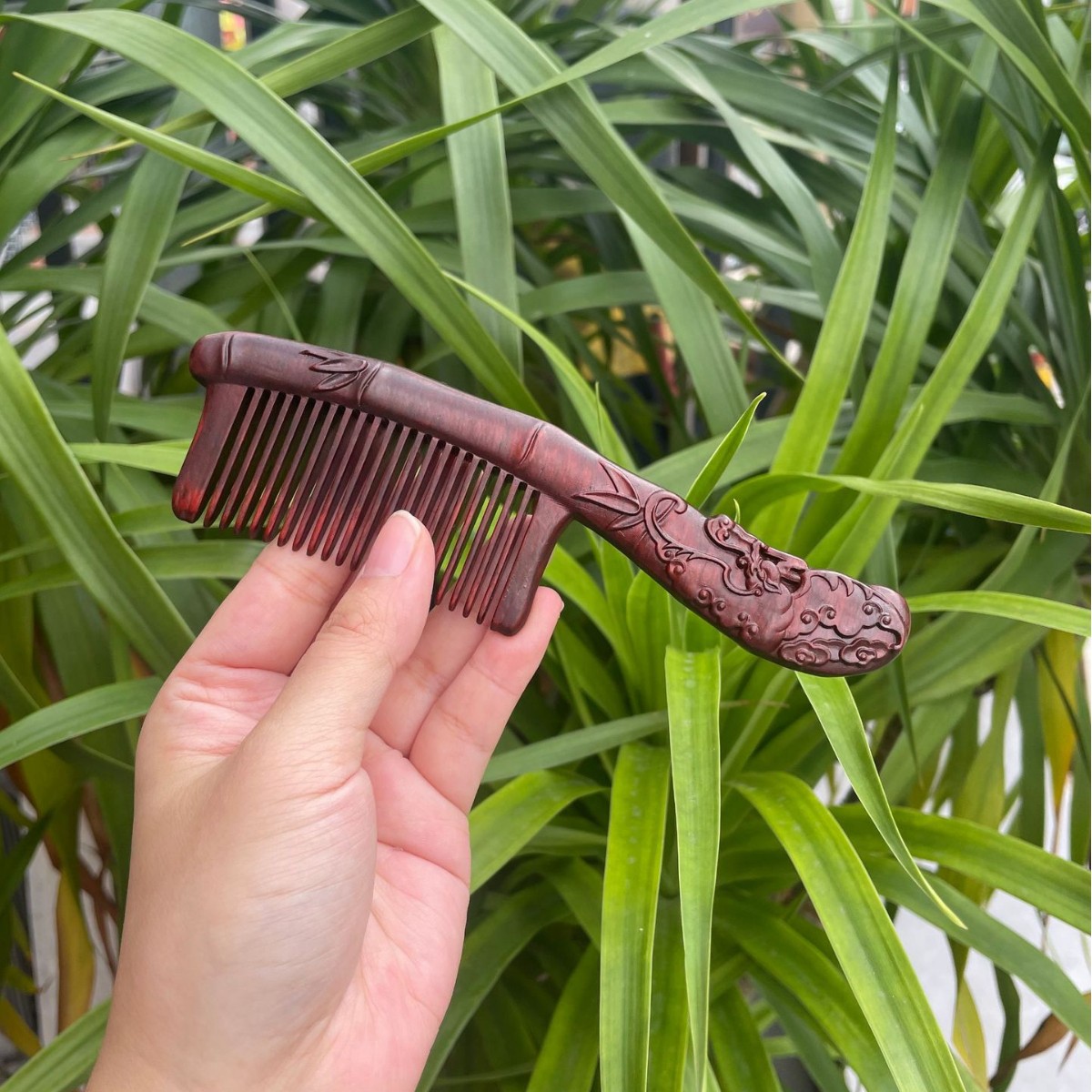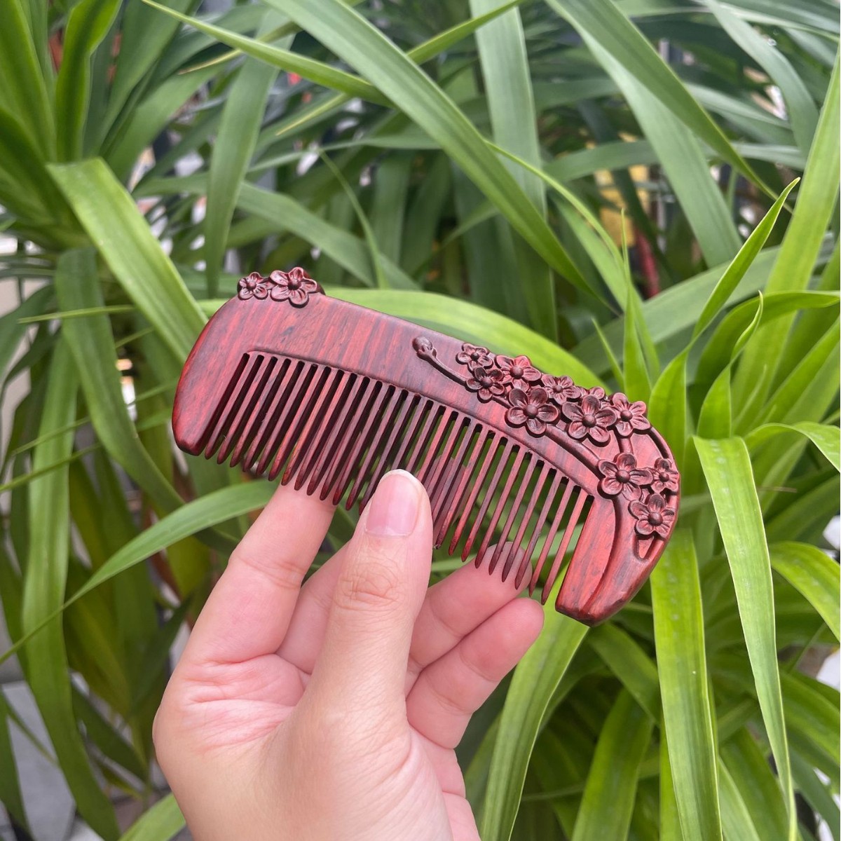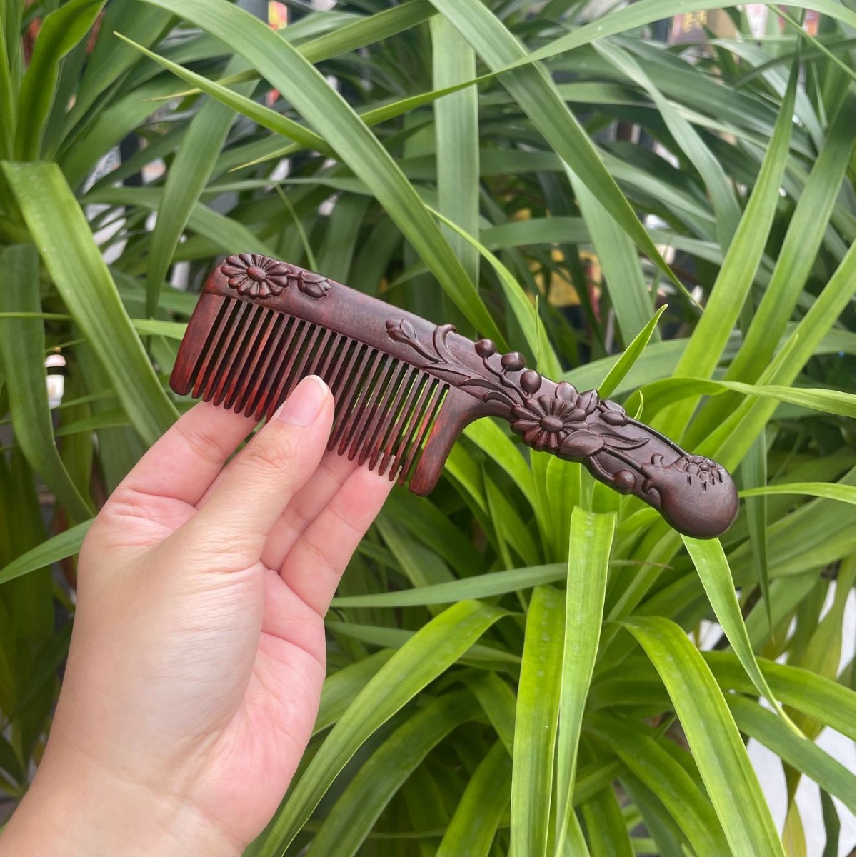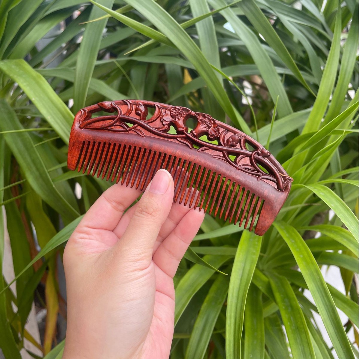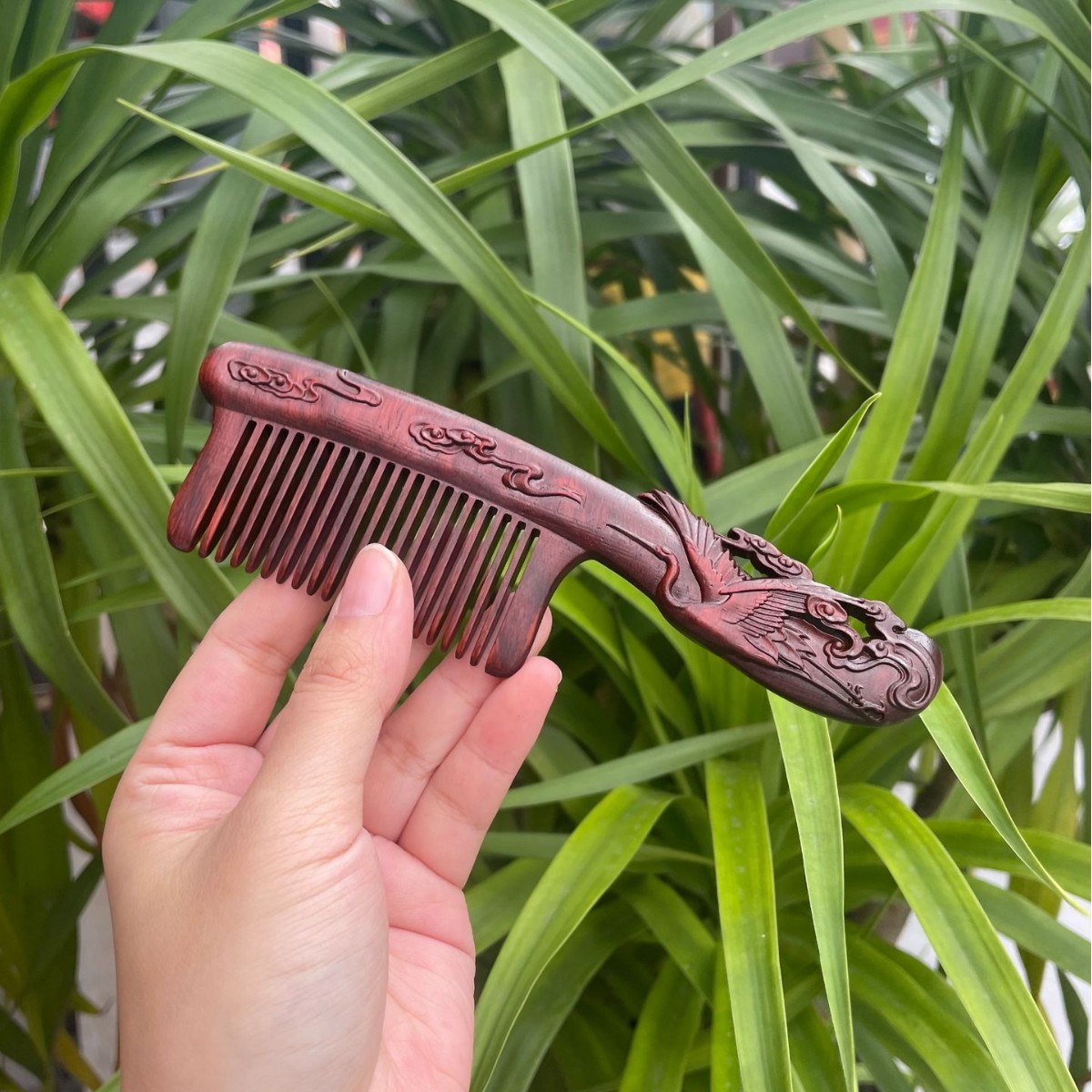 고대 선인의 천연 소엽 자단 나무 조각 빗, 복고풍 마사지 빗, 문화 창작 선물, 라이브 방송에서 여자친구에게 선물