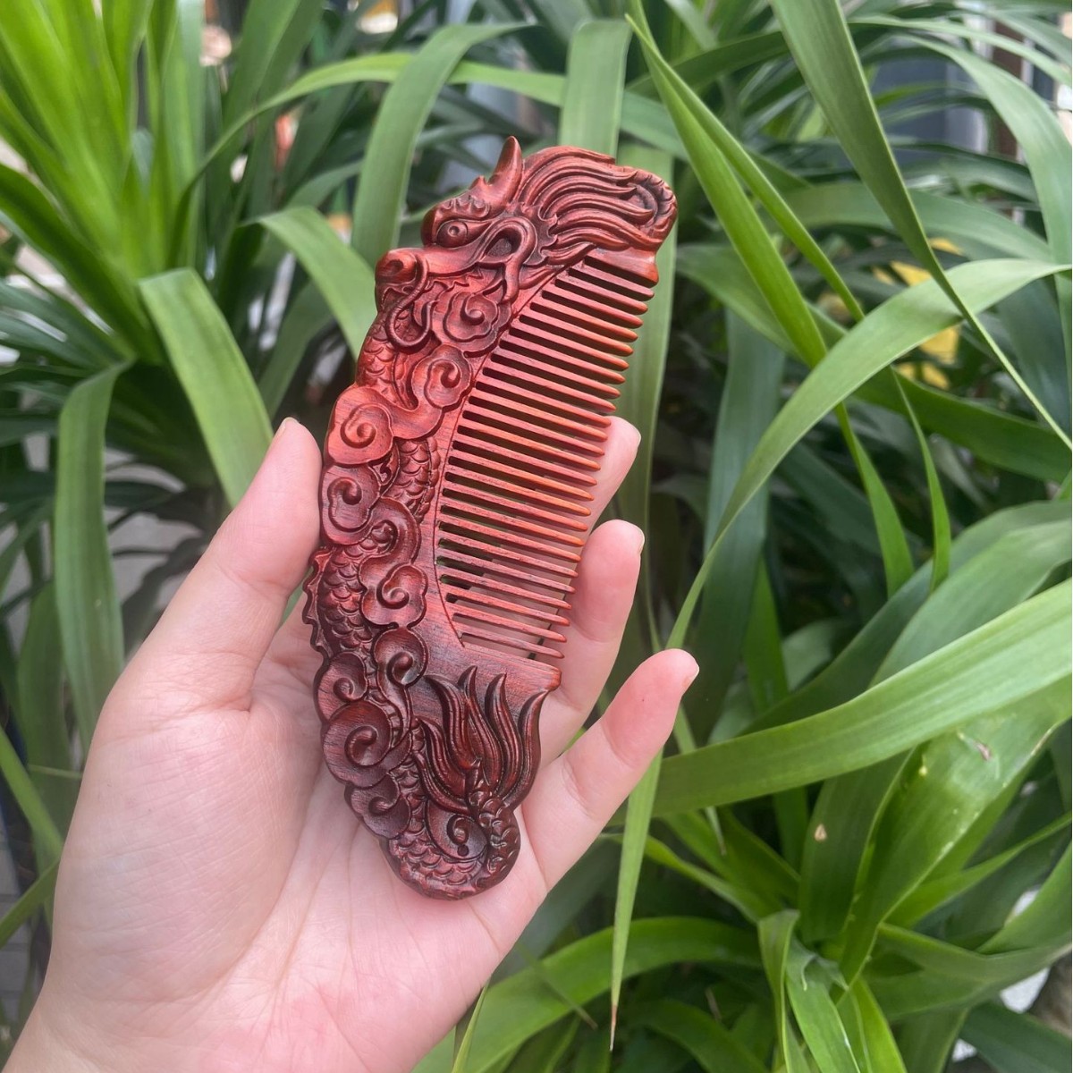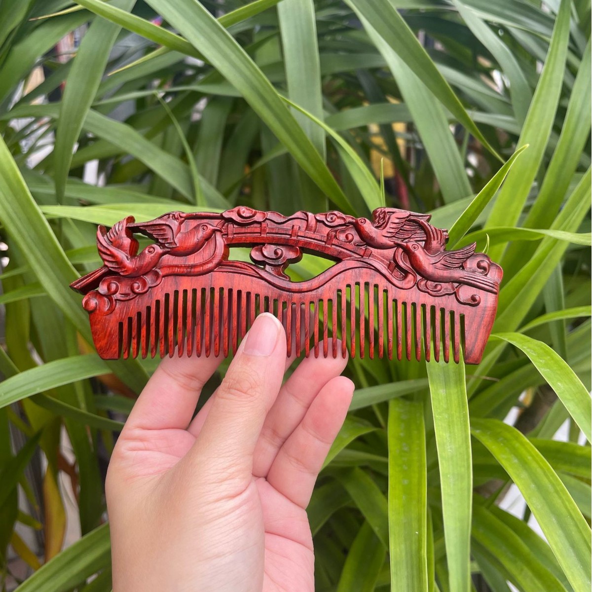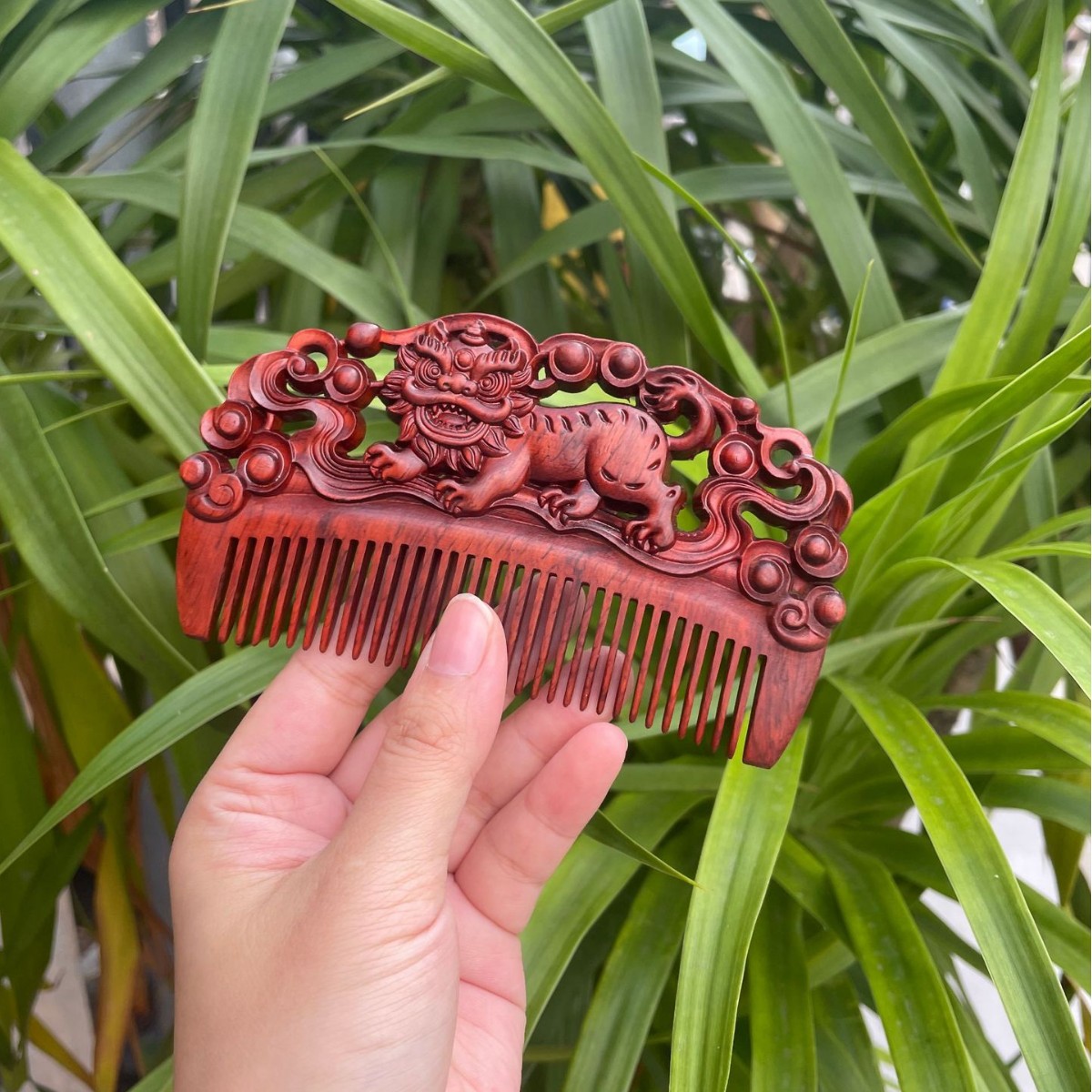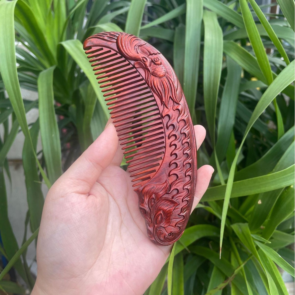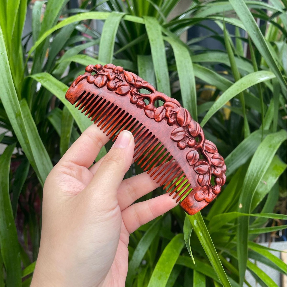 고대 선인의 천연 소엽 자단 나무 조각 빗, 복고풍 마사지 빗, 문화 창작 선물, 라이브 방송에서 여자친구에게 선물