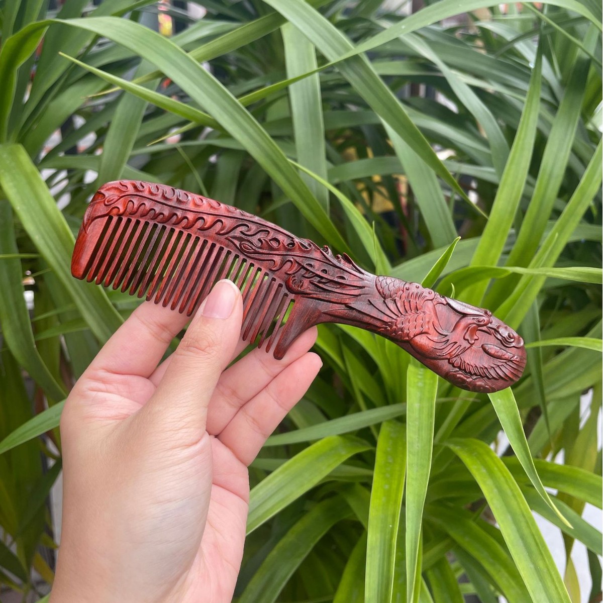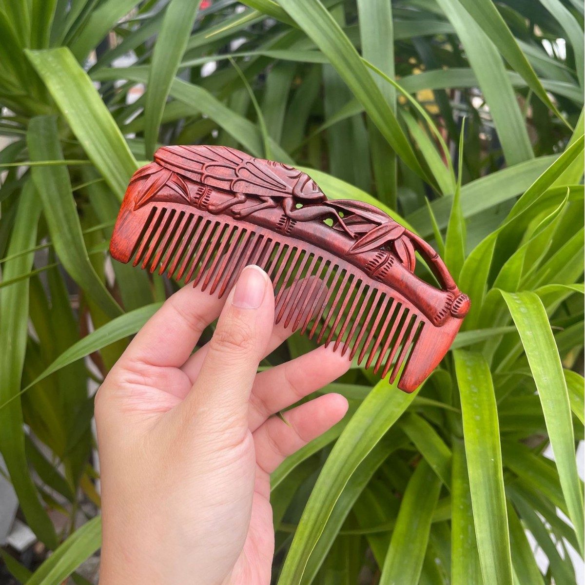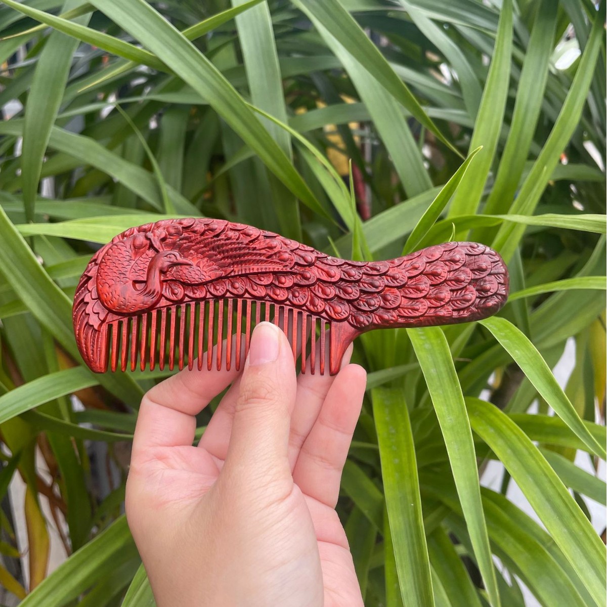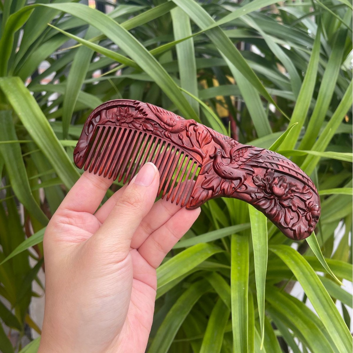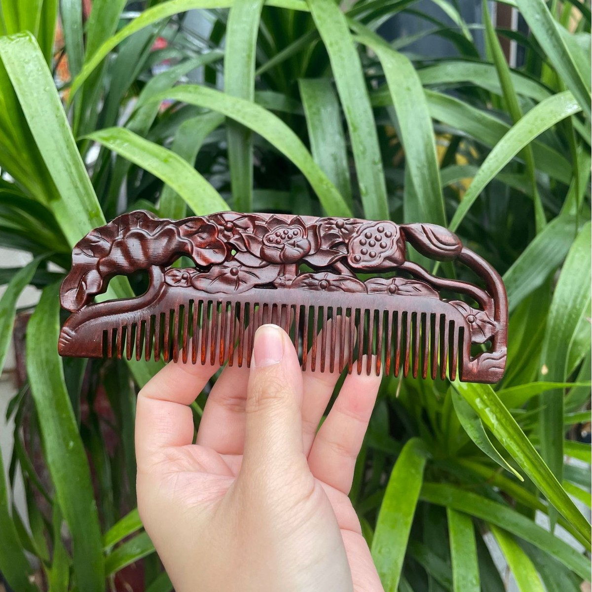 고대 선인의 천연 소엽 자단 나무 조각 빗, 복고풍 마사지 빗, 문화 창작 선물, 라이브 방송에서 여자친구에게 선물