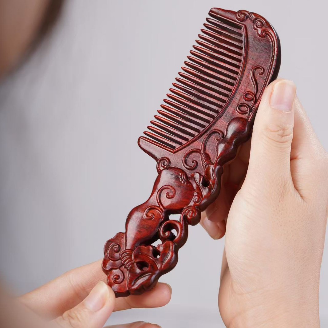 고대 선인의 천연 소엽 자단 나무 조각 빗, 복고풍 마사지 빗, 문화 창작 선물, 라이브 방송에서 여자친구에게 선물스토어 가기