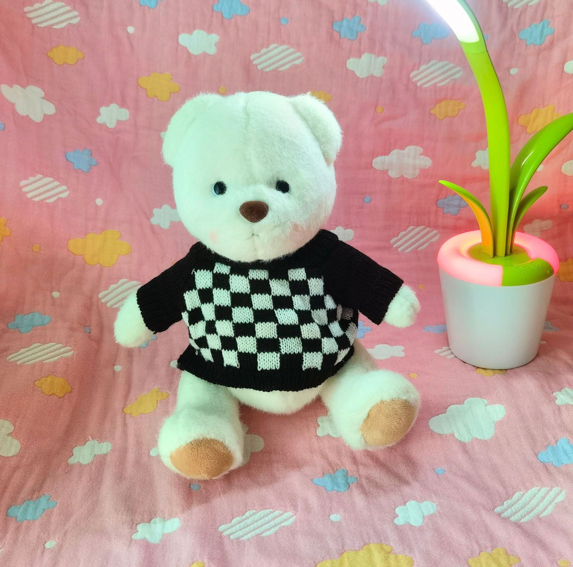 • 흑백 체크 무늬 스웨터