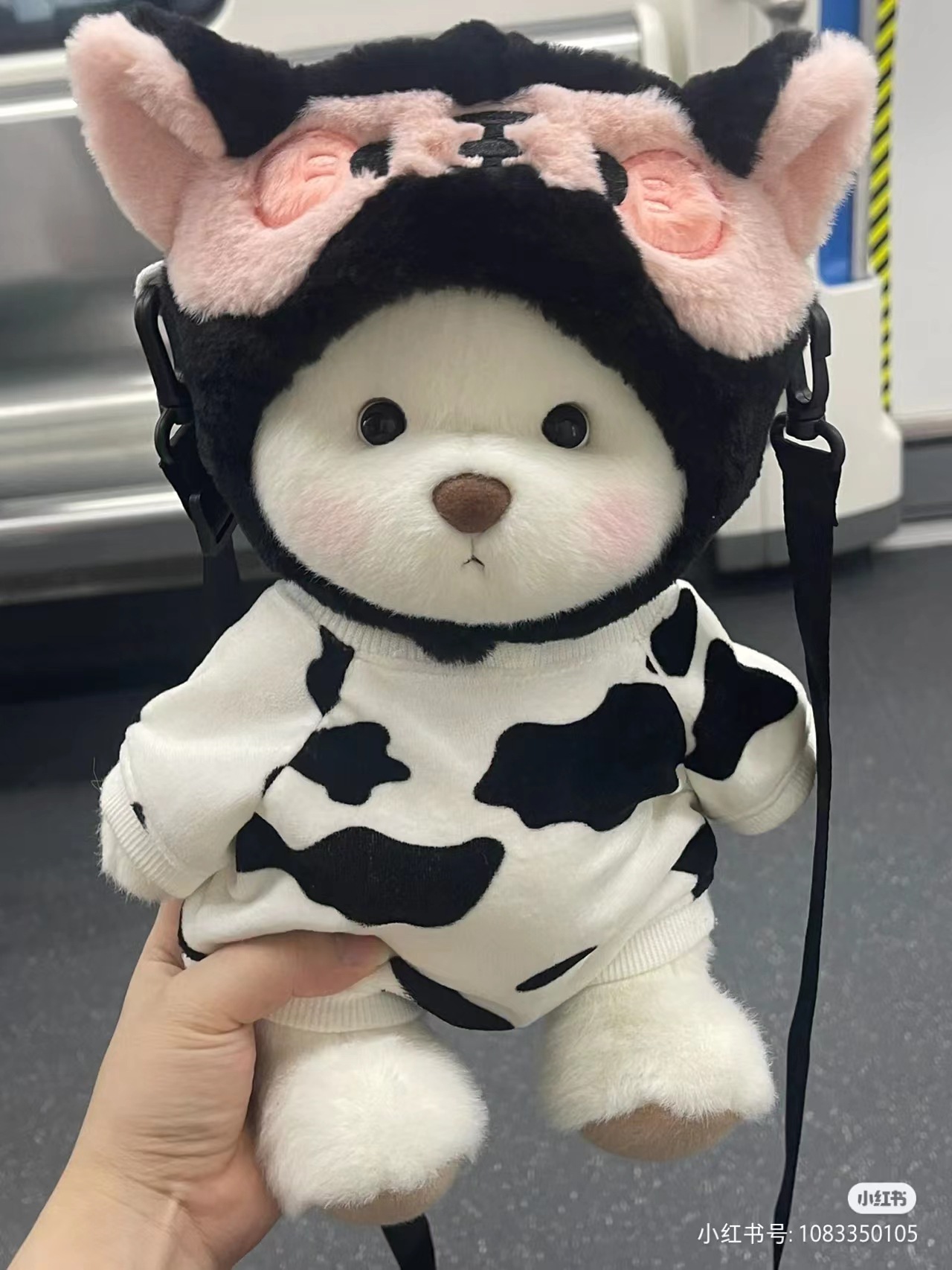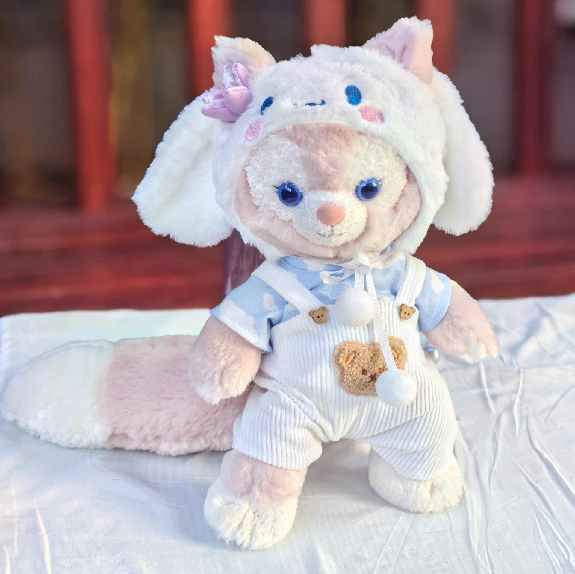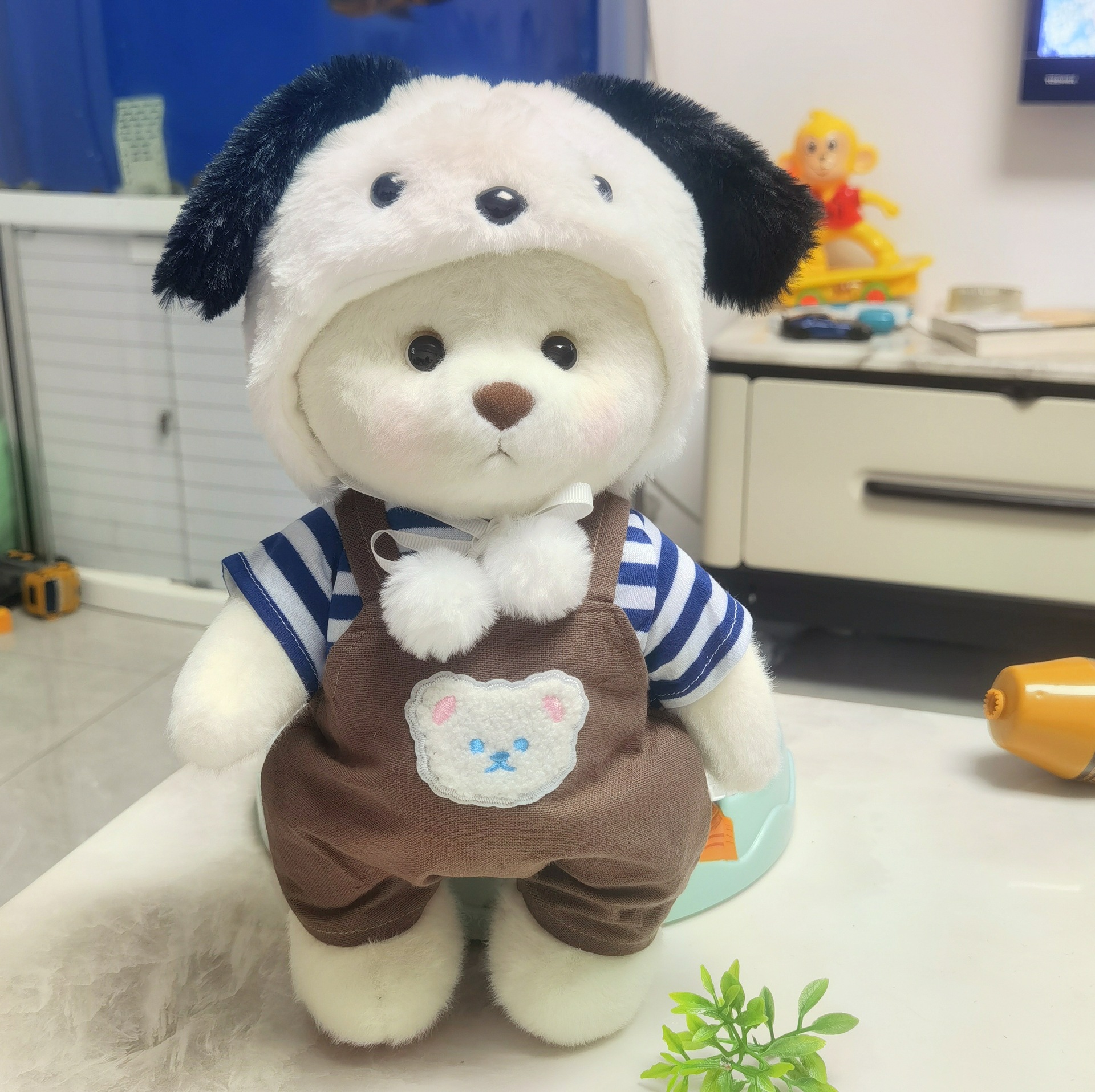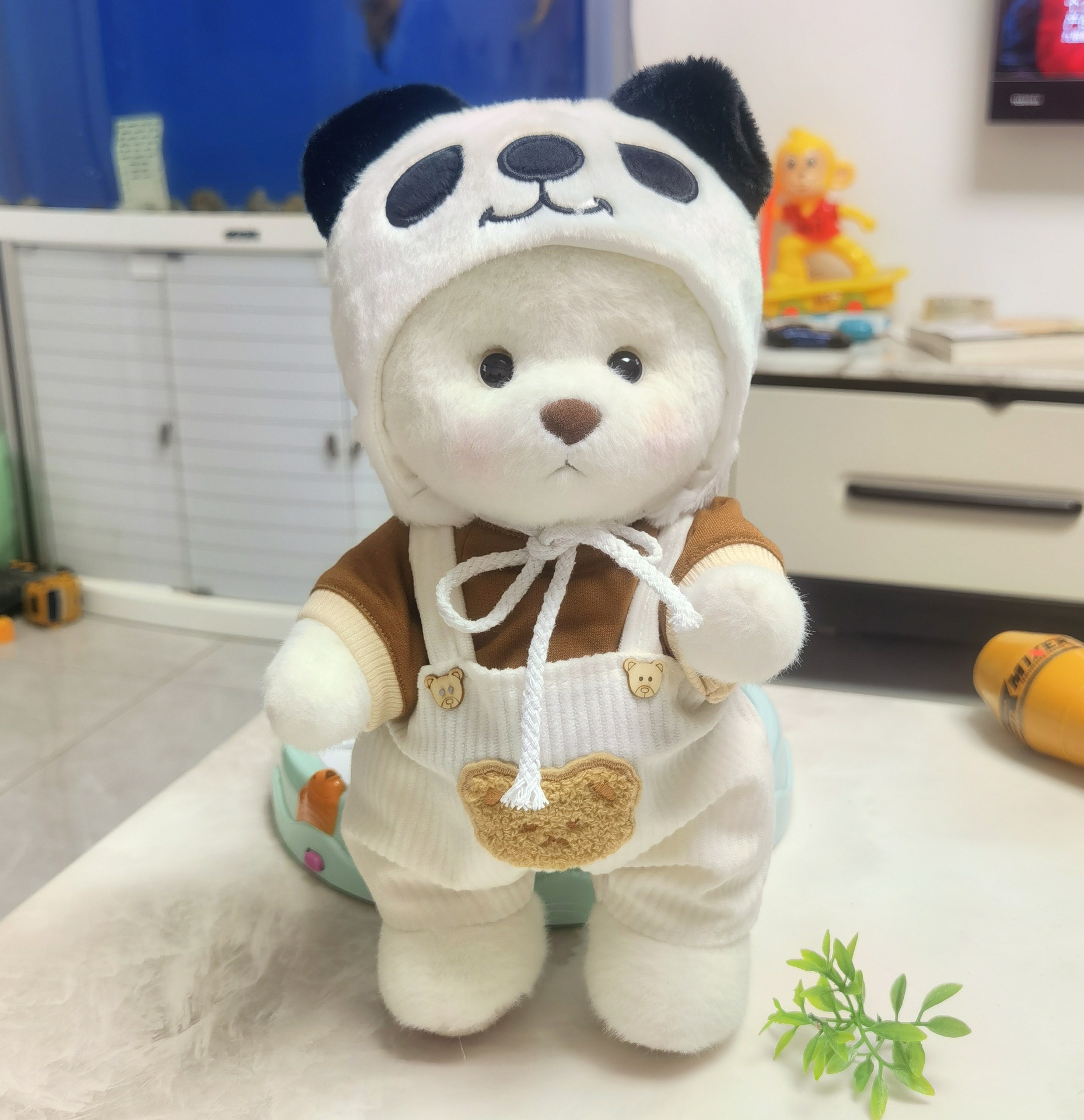 • 브라운 T+화이트 멜빵바지+팬더 모자