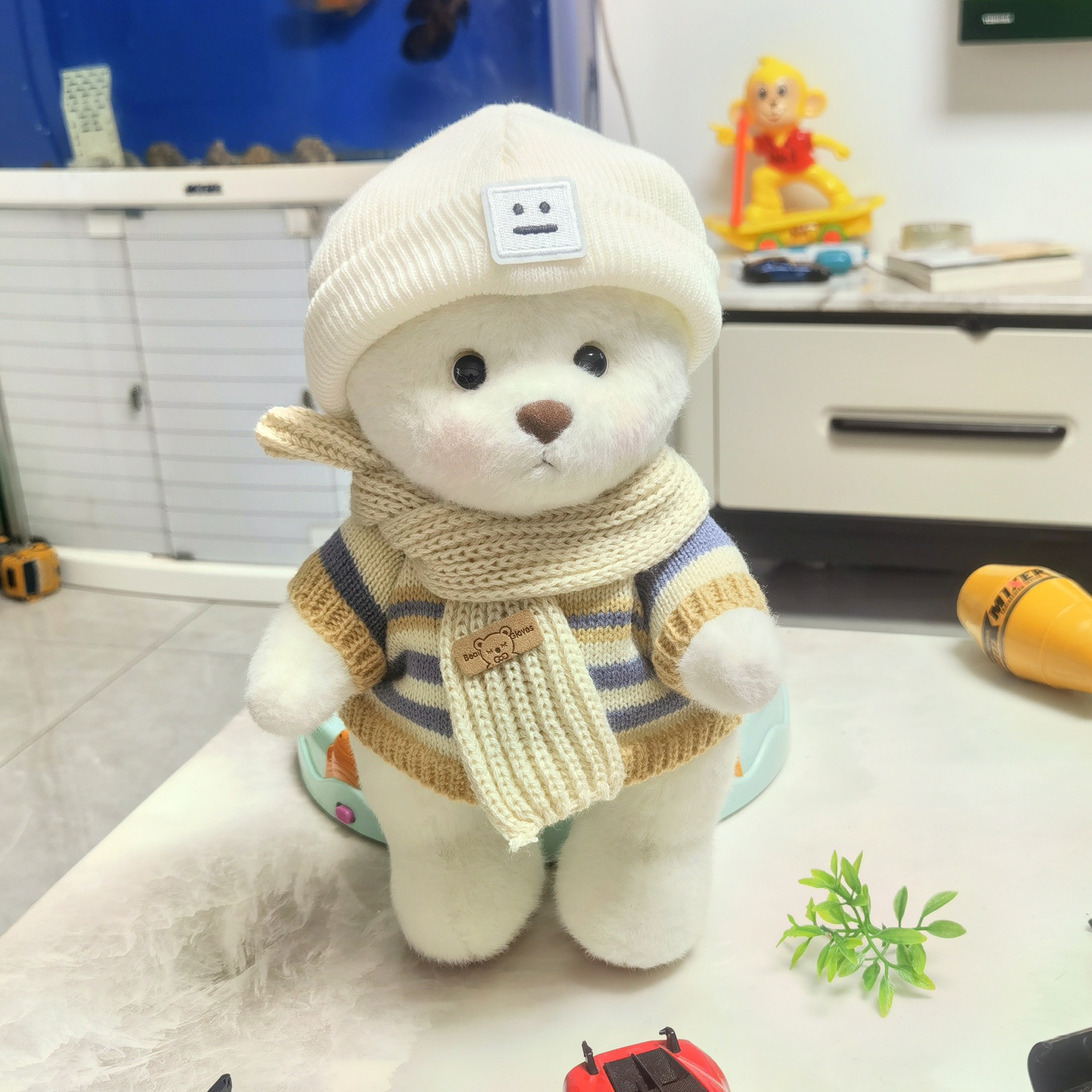• 곰돌이 모자 니트 5종 세트 (흰색 머플러 포함)