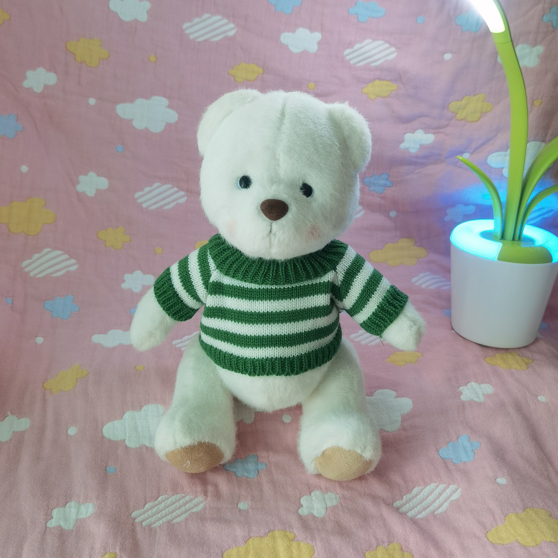 • 녹색과 흰색 줄무늬 스웨터