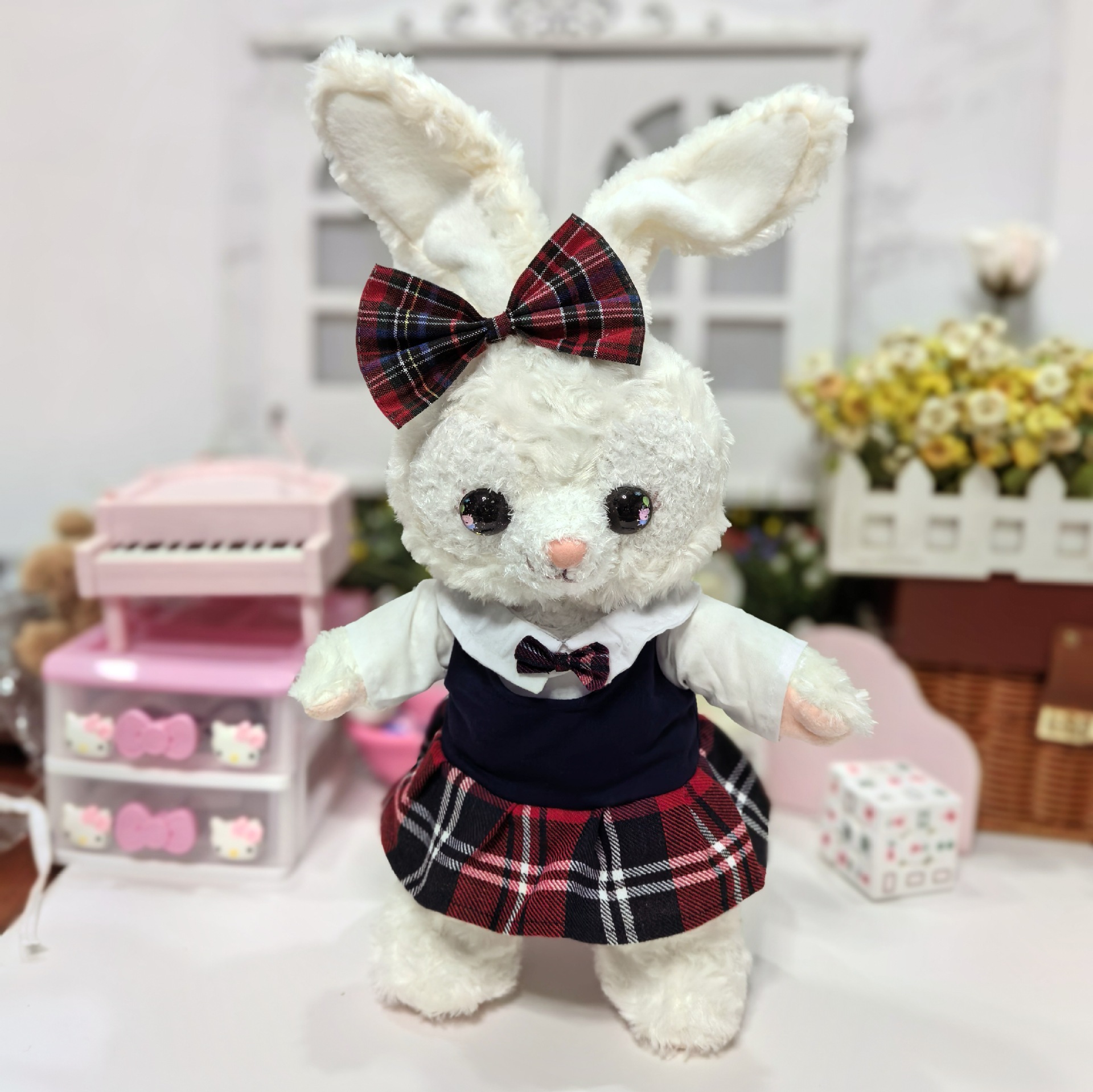 • 격자 무늬 크리스마스 + 흰색 가방