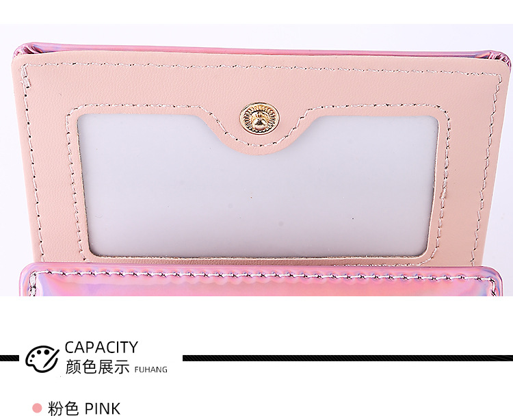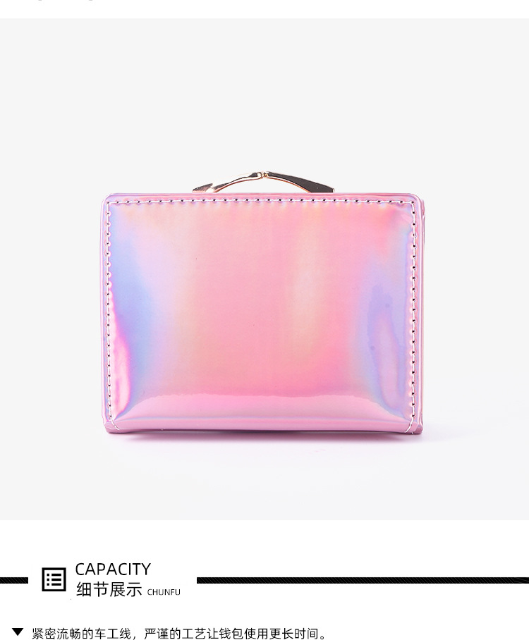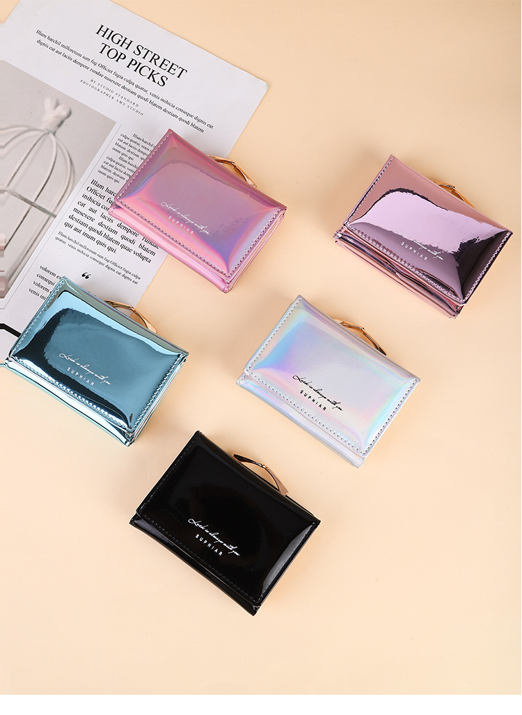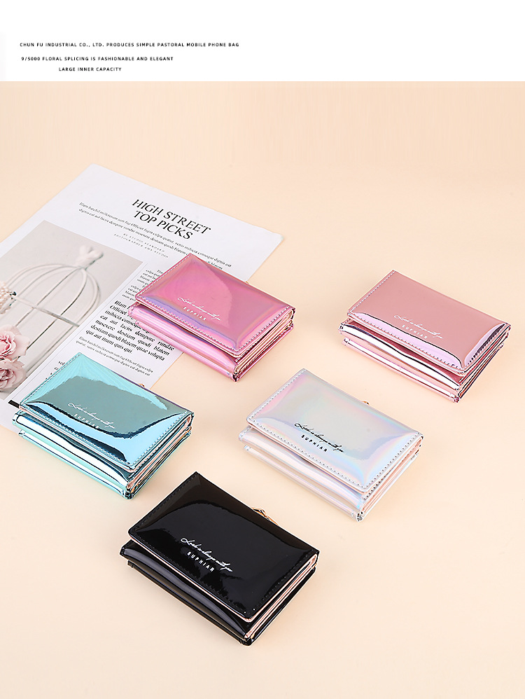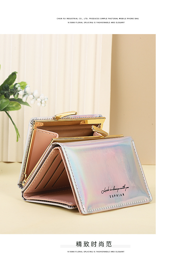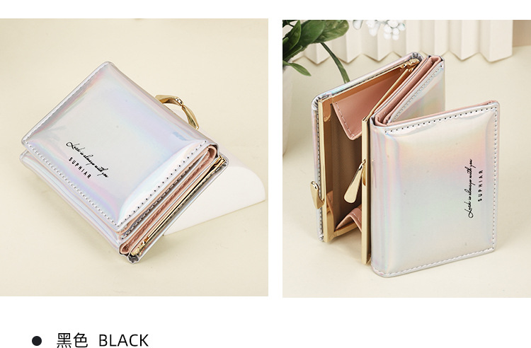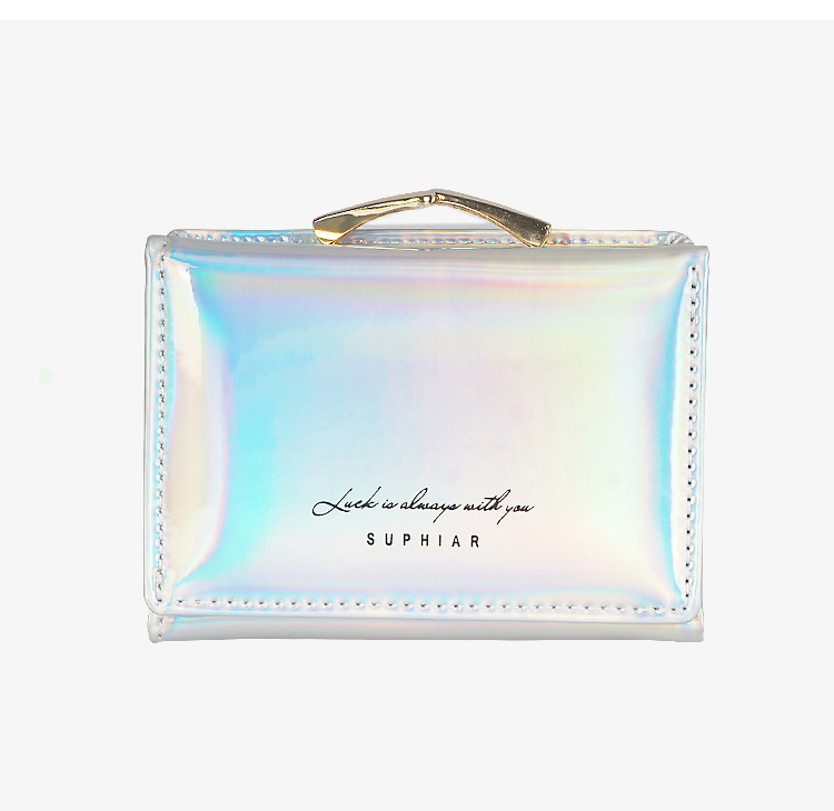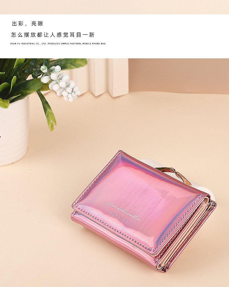 국경 간 새로운 패션 카드 홀더 유행 접이식 간단한 여성 지갑 PU 가죽 레이저 ins 여성 짧은 동전 지갑스토어 가기