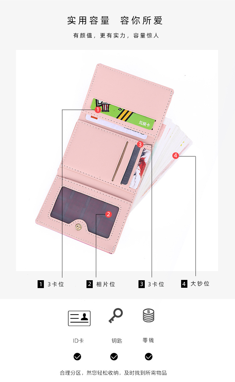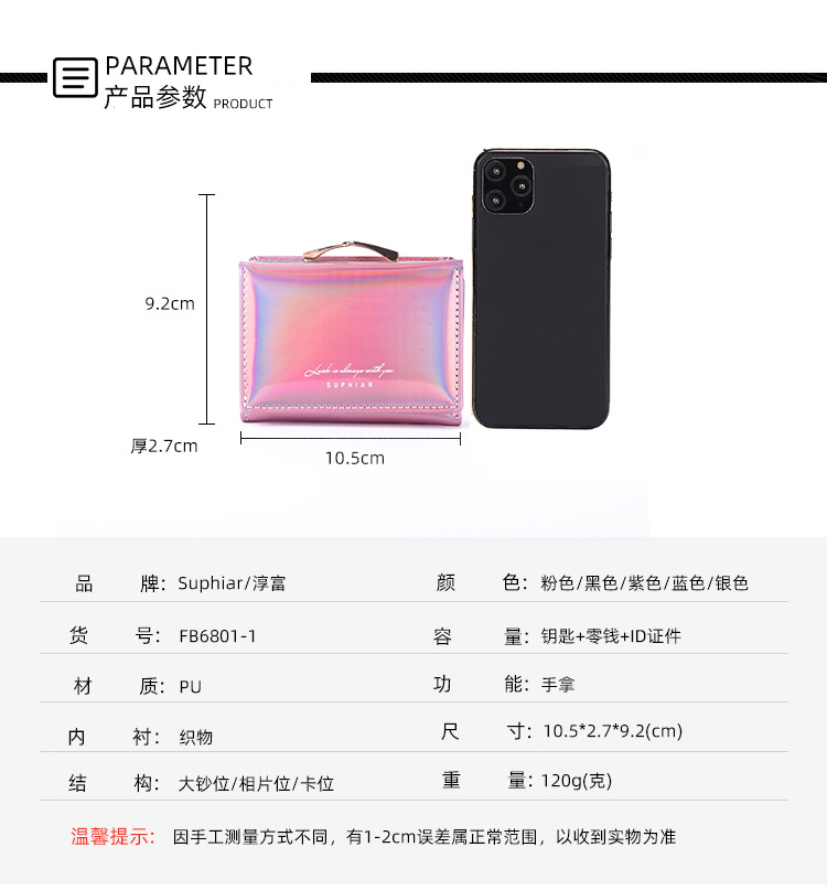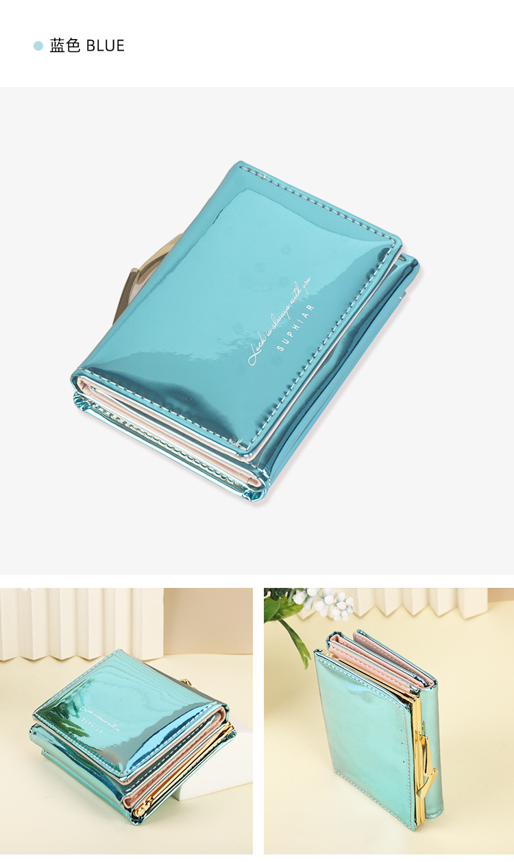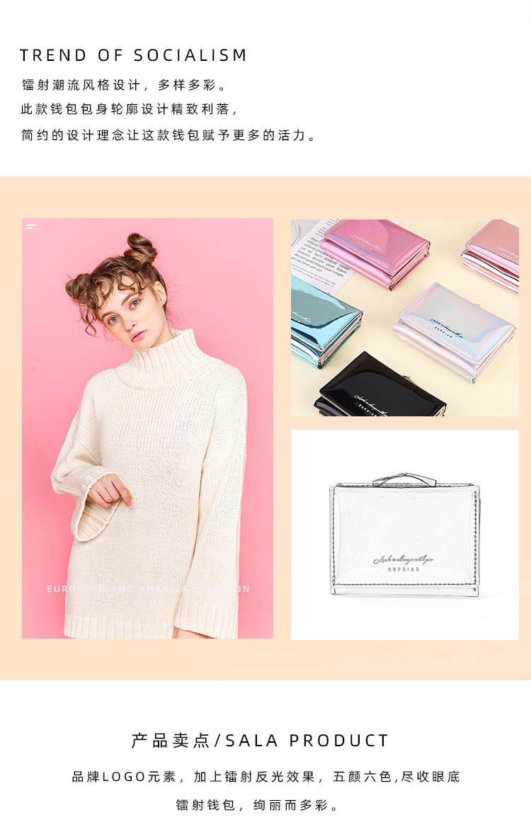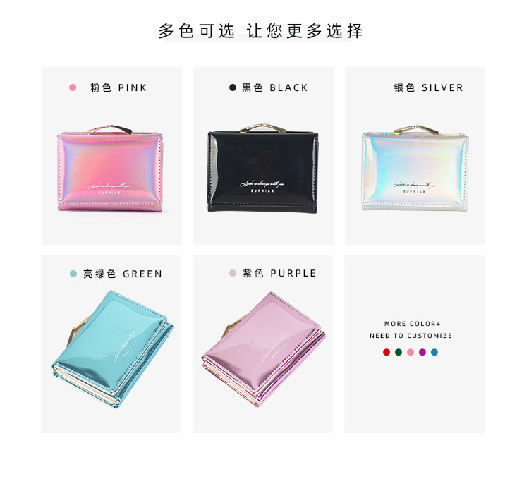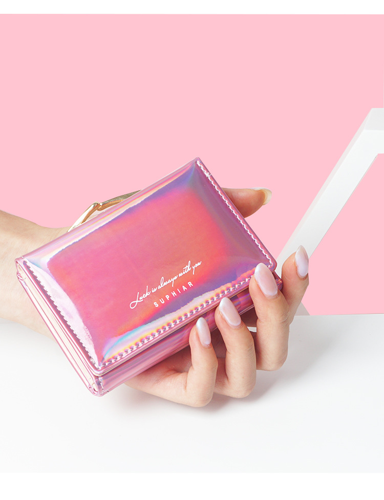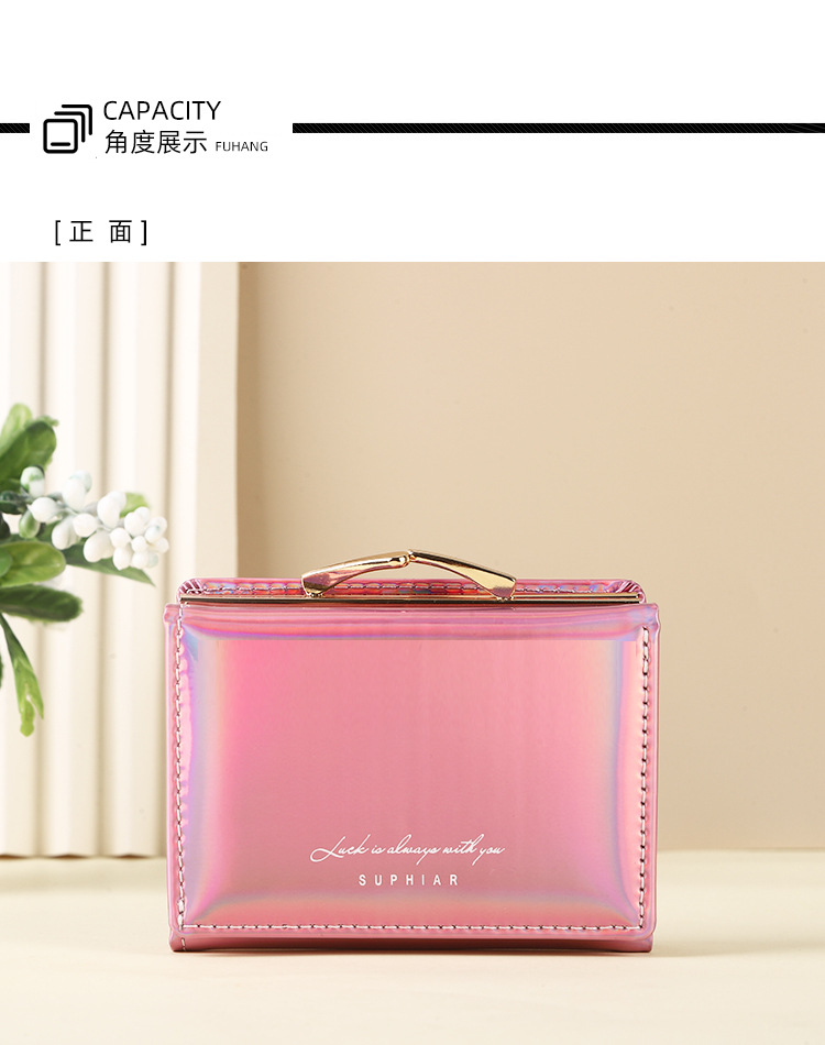 국경 간 새로운 패션 카드 홀더 유행 접이식 간단한 여성 지갑 PU 가죽 레이저 ins 여성 짧은 동전 지갑스토어 가기