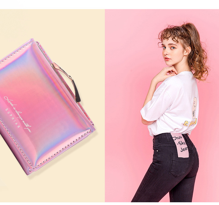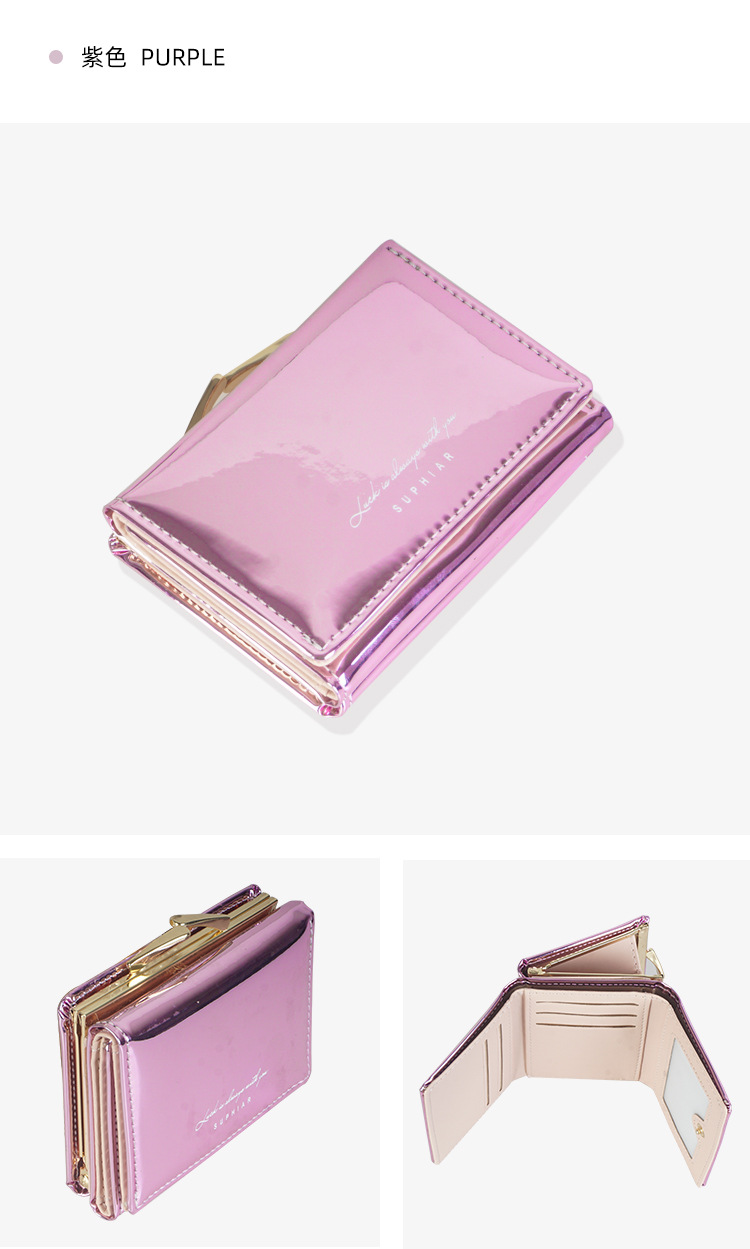 국경 간 새로운 패션 카드 홀더 유행 접이식 간단한 여성 지갑 PU 가죽 레이저 ins 여성 짧은 동전 지갑