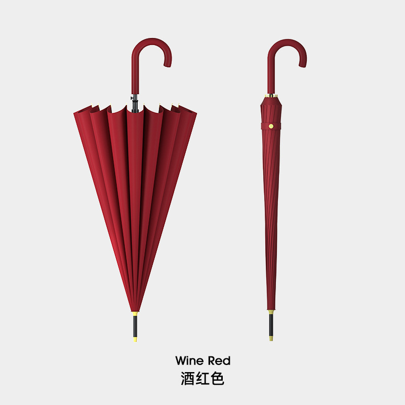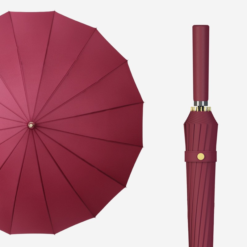 • 곡선 핸들 16 뼈 우산-버건디