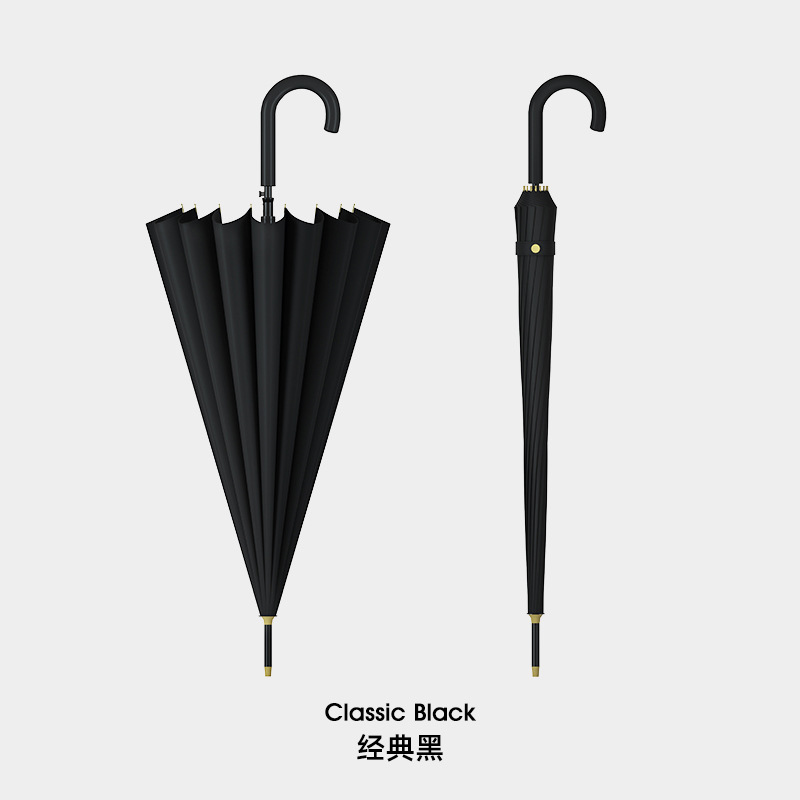 • 곡선 핸들 16 뼈 우산-클래식 블랙