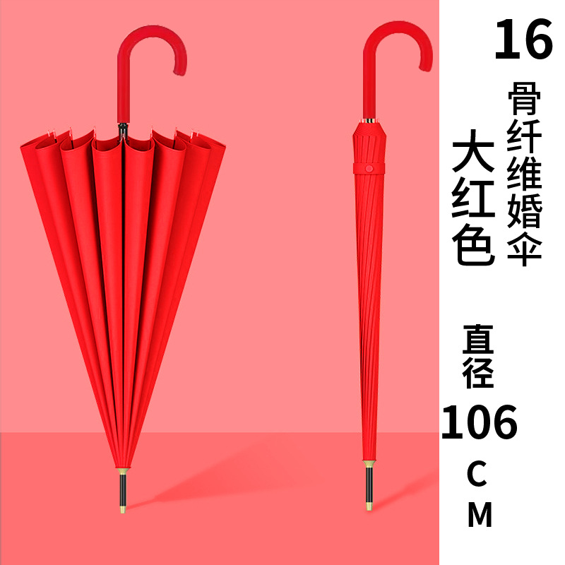 • 곡선형 손잡이가 있는 16본 우산 - 빅 레드(결혼식 전용)