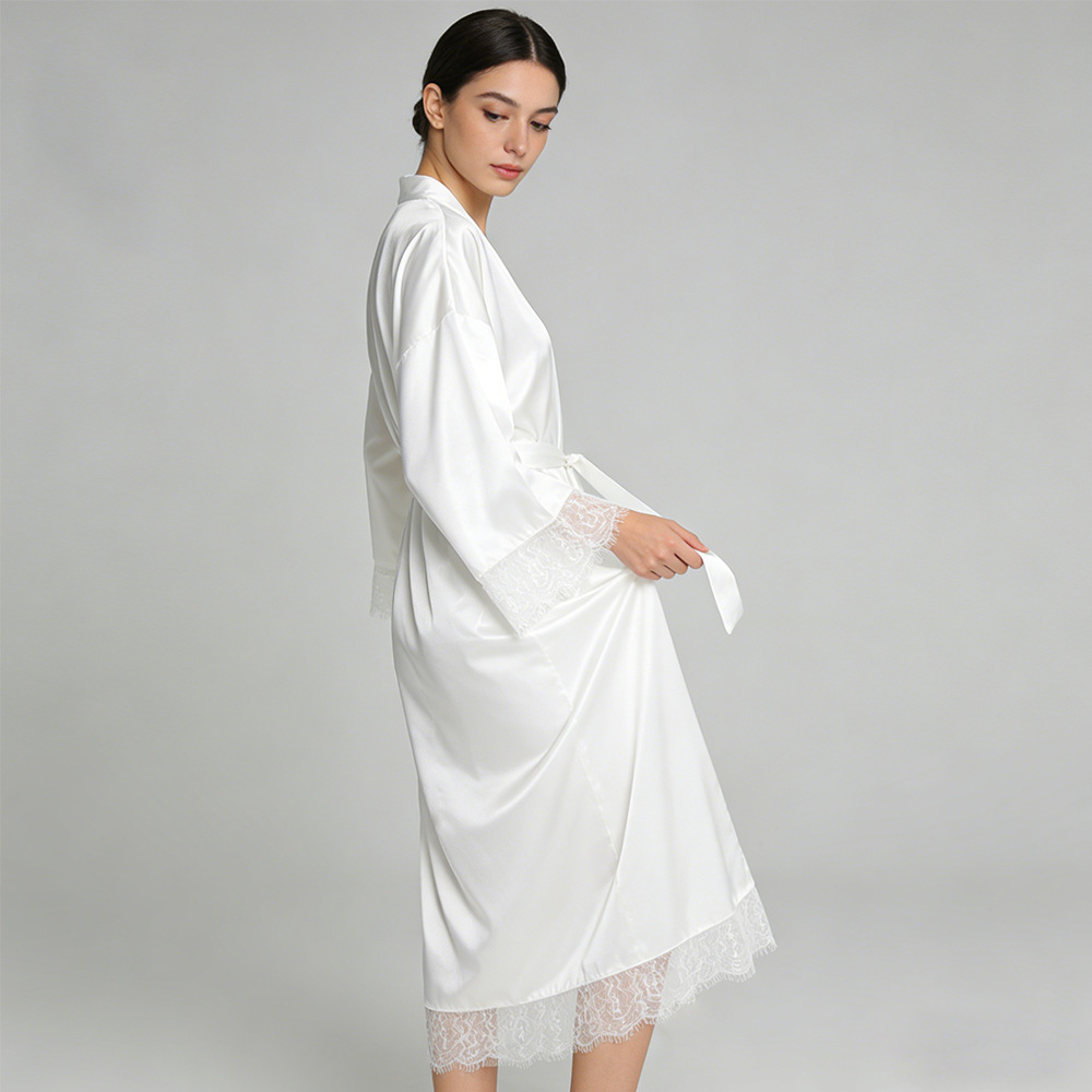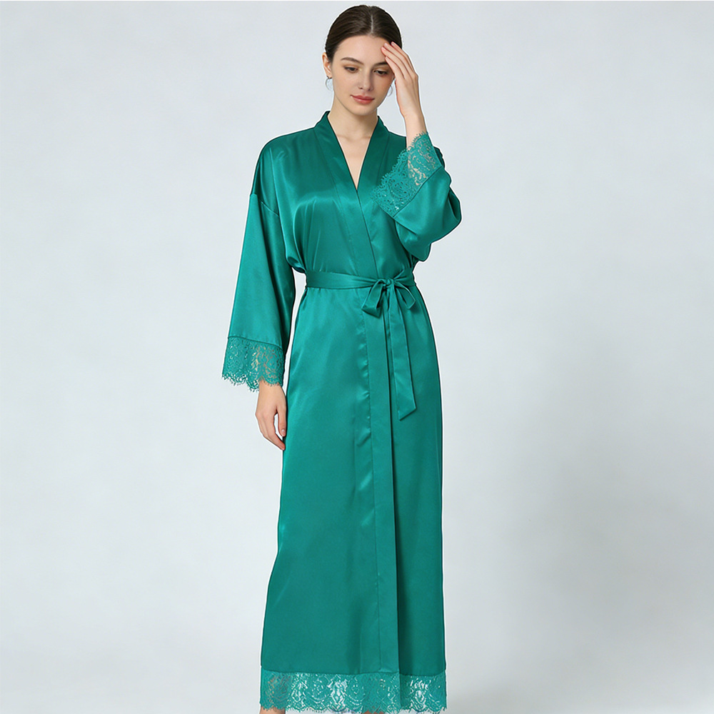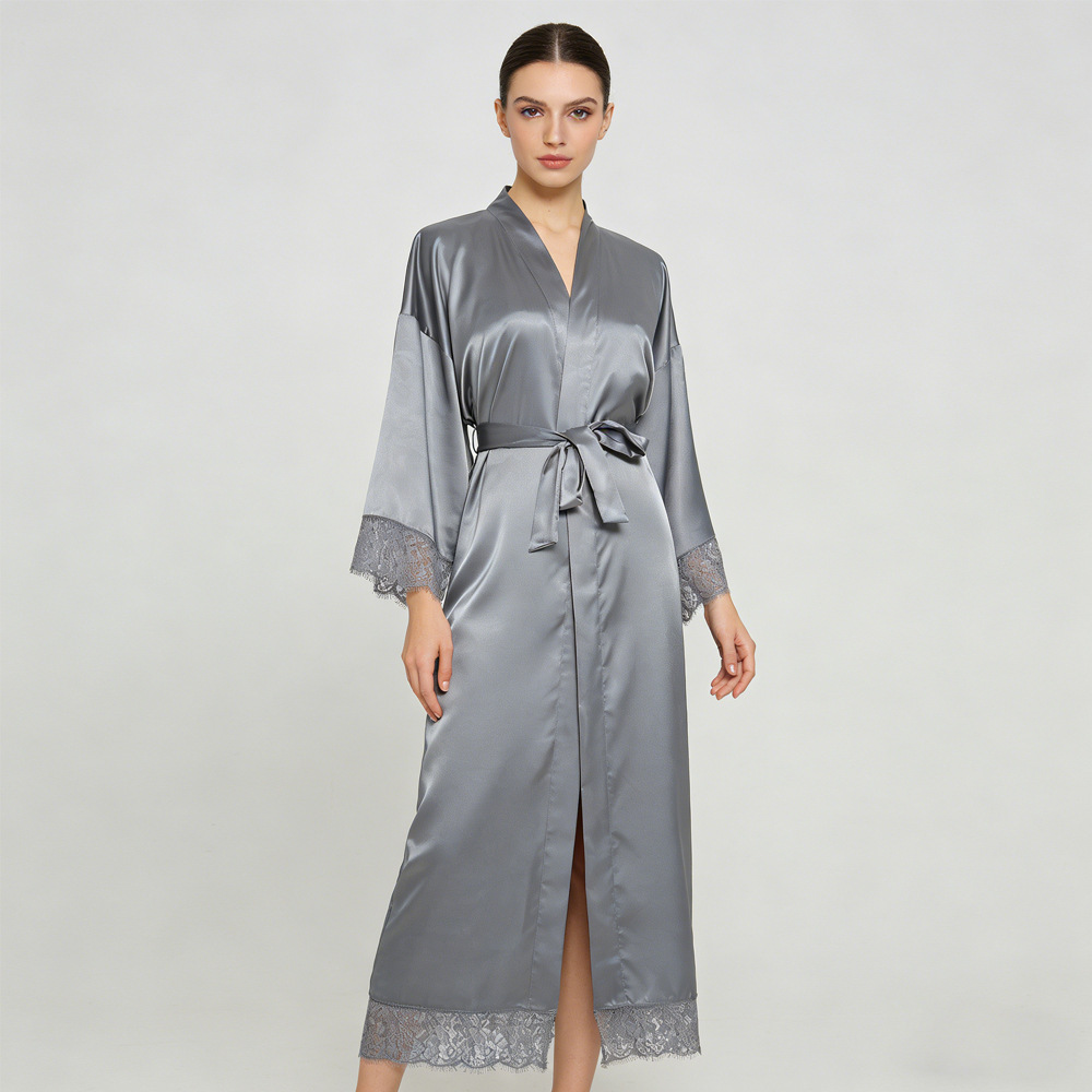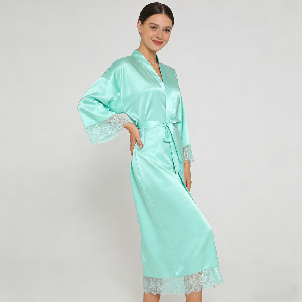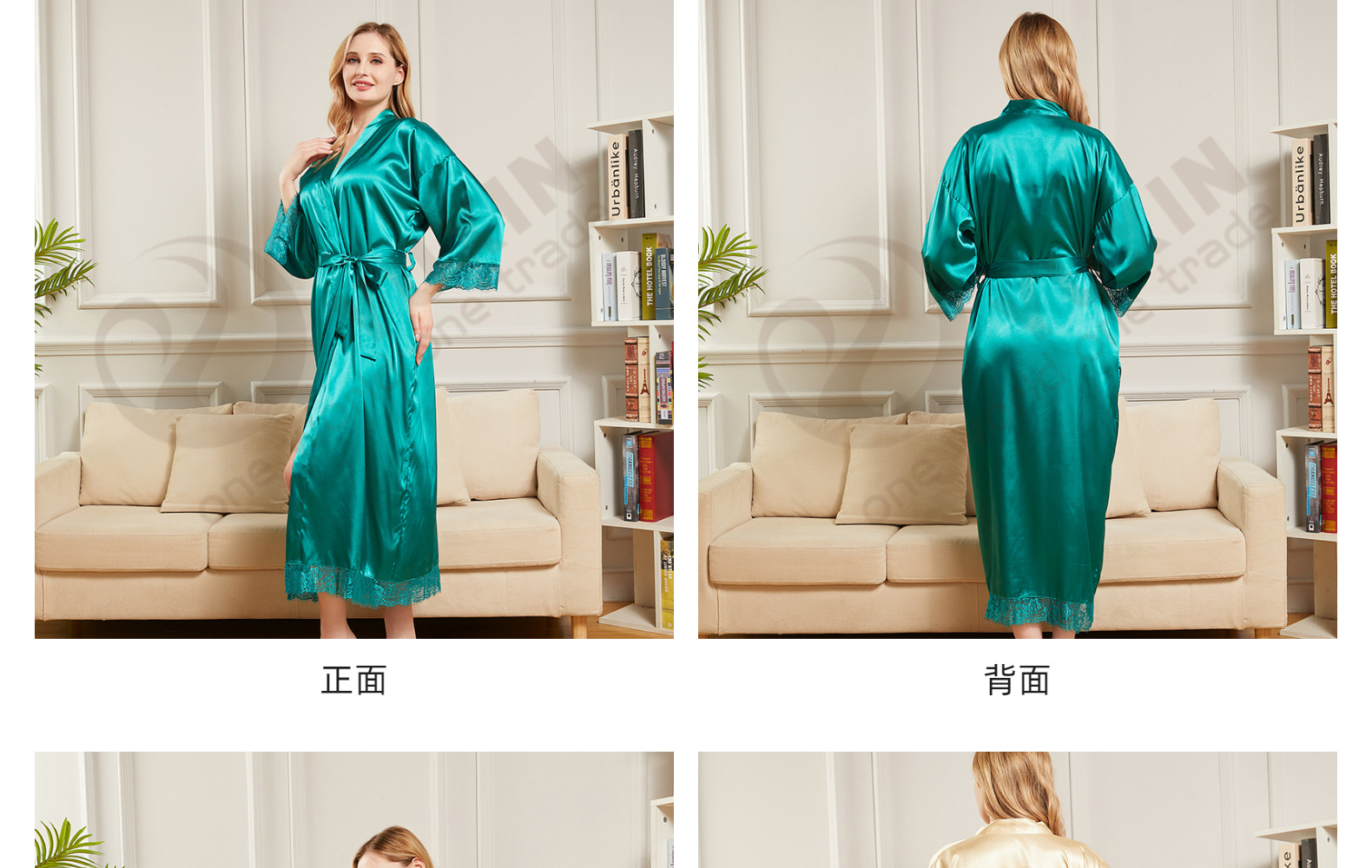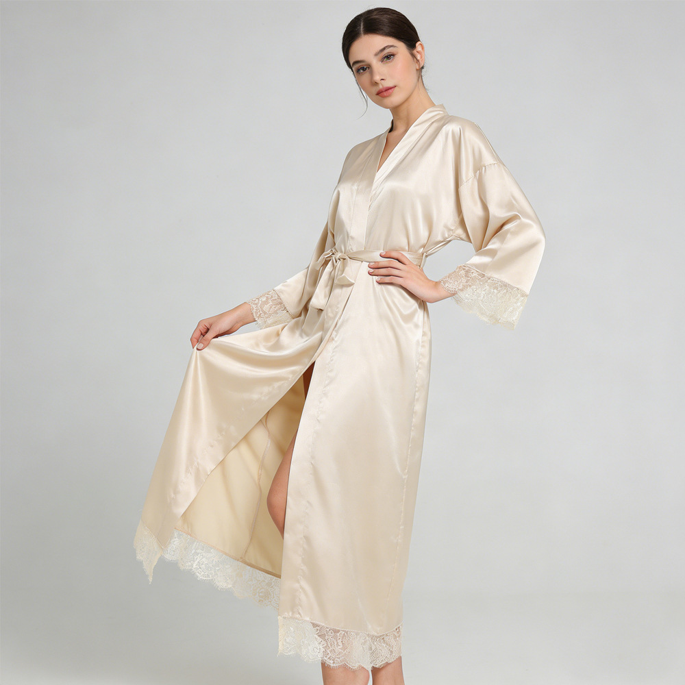 아마존 여성용 긴 레이스 잠옷, 홈웨어, 신부용 드레싱 가운, 새틴 모조 실크 스트레치 가운