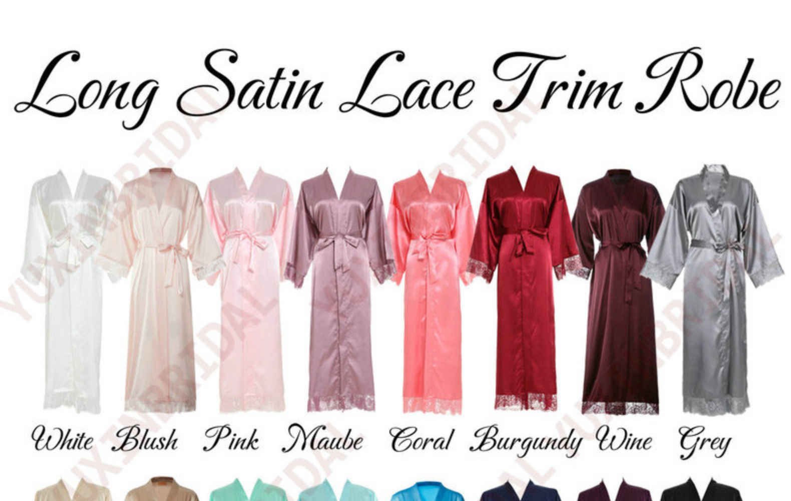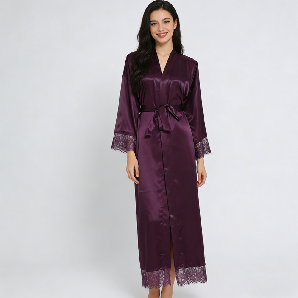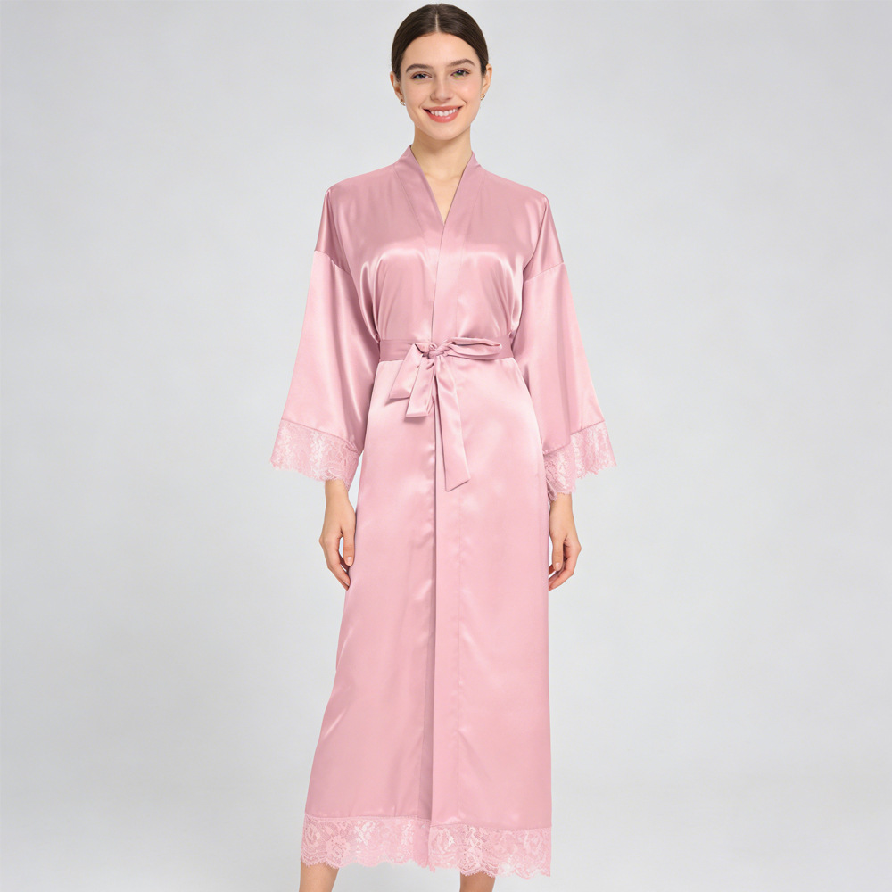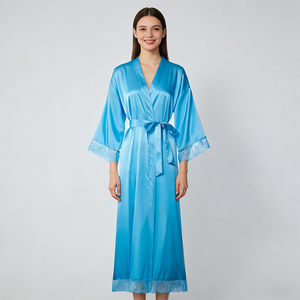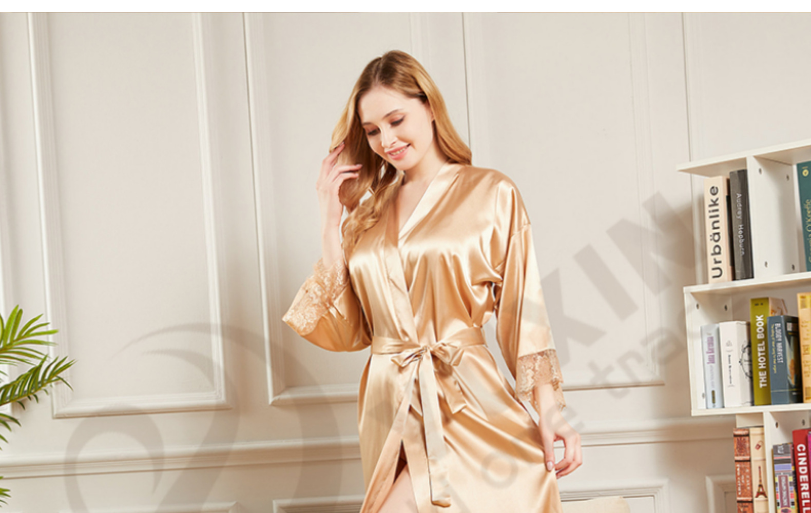 아마존 여성용 긴 레이스 잠옷, 홈웨어, 신부용 드레싱 가운, 새틴 모조 실크 스트레치 가운