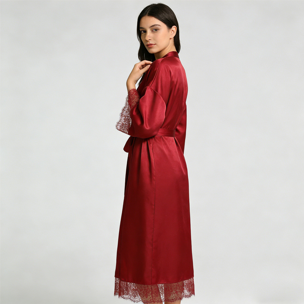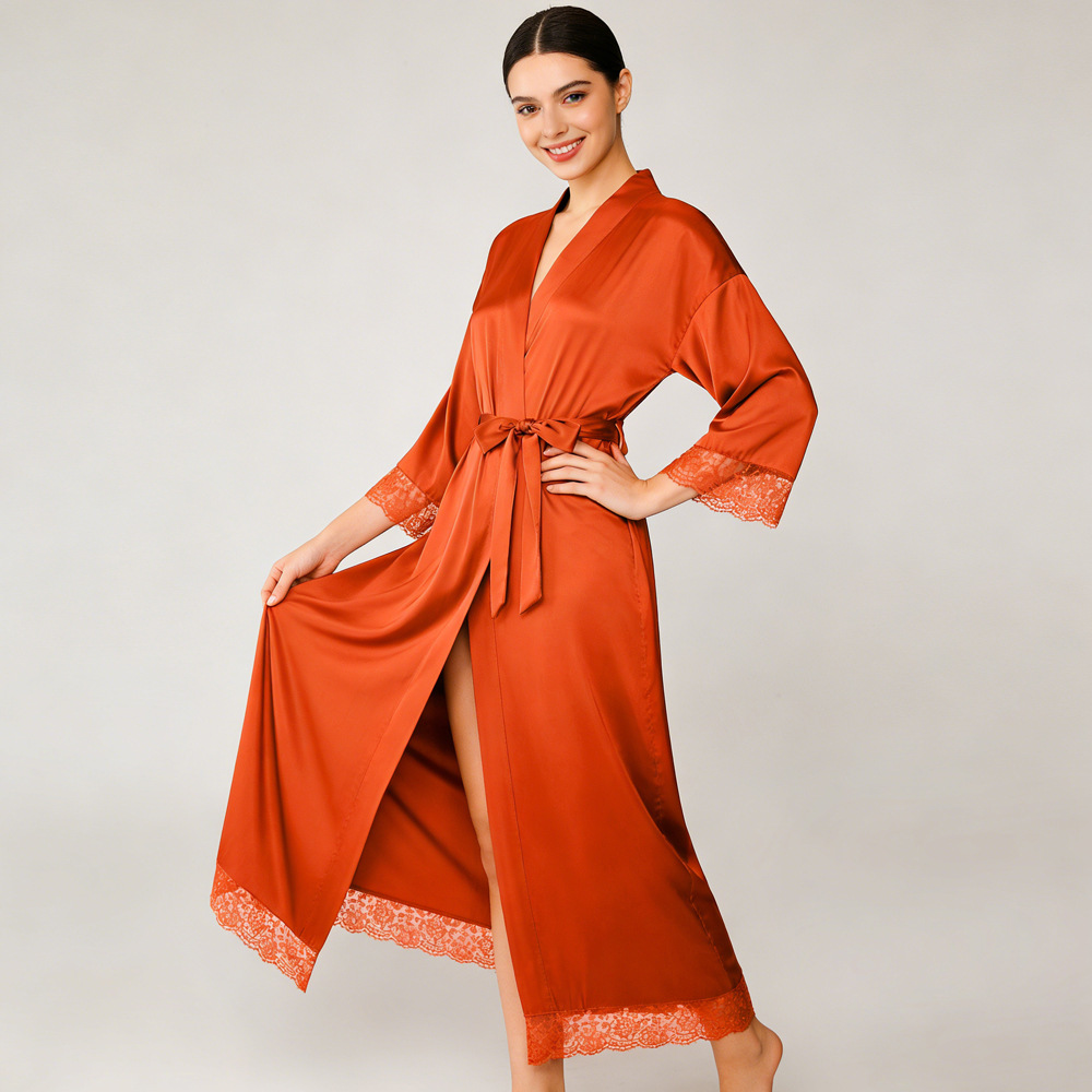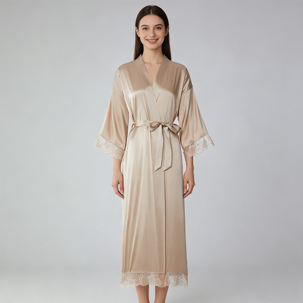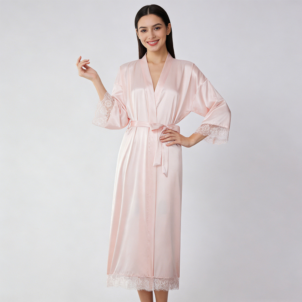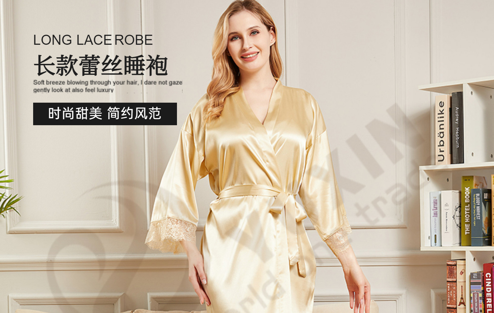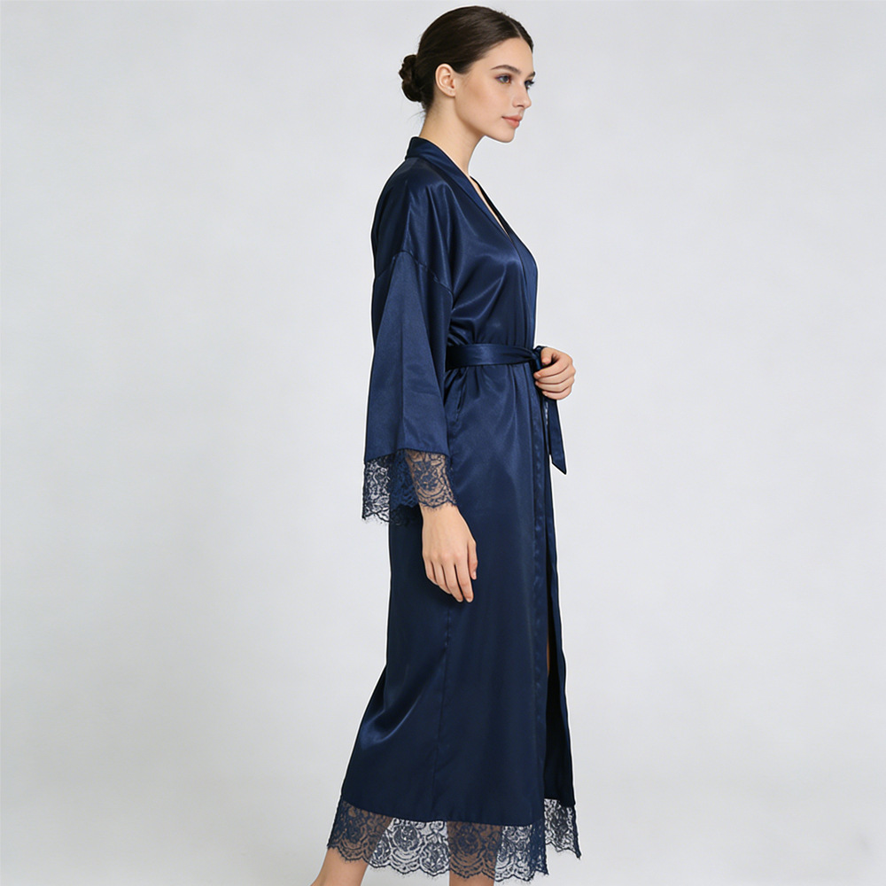 아마존 여성용 긴 레이스 잠옷, 홈웨어, 신부용 드레싱 가운, 새틴 모조 실크 스트레치 가운