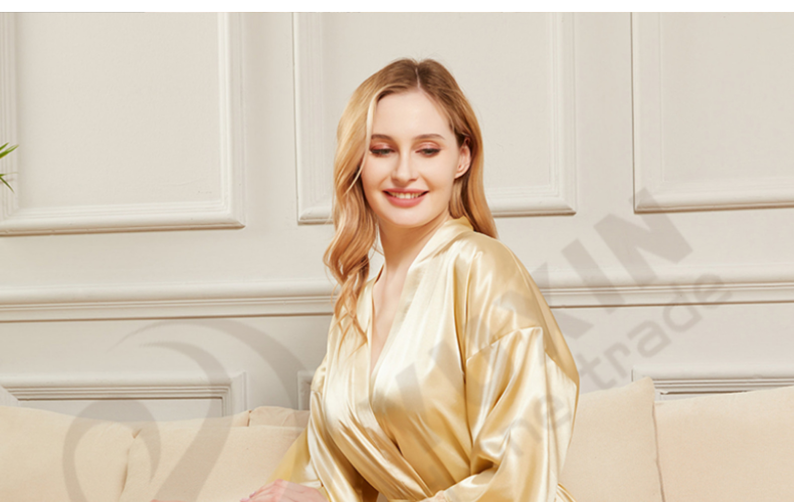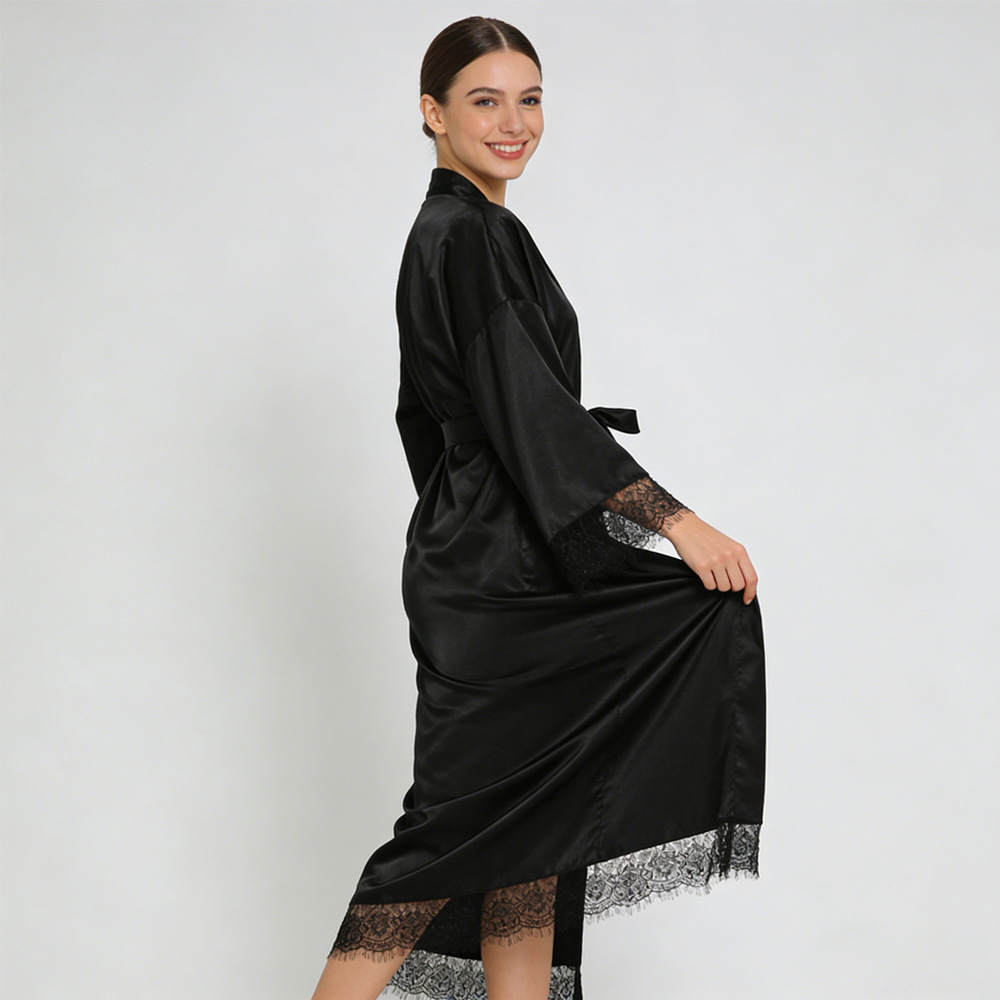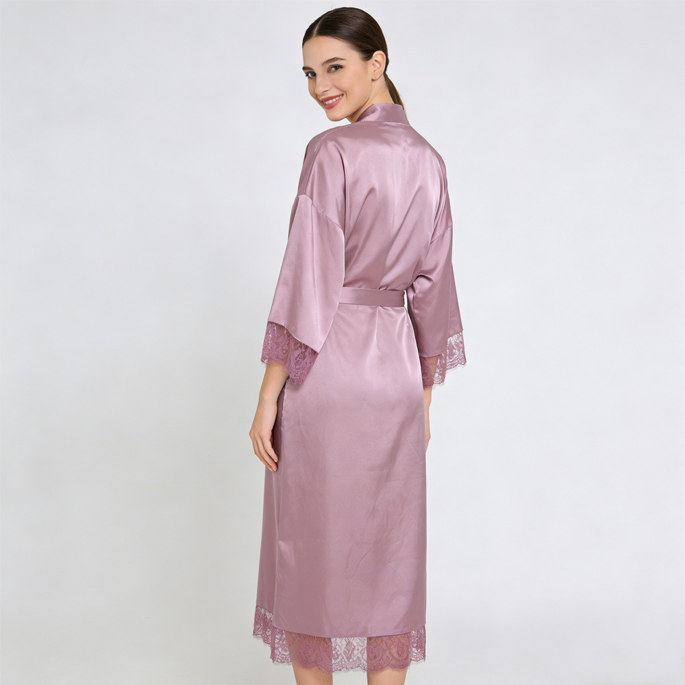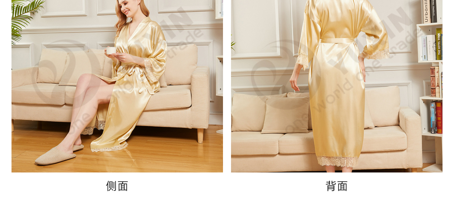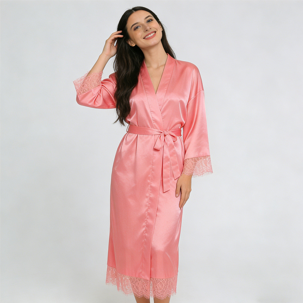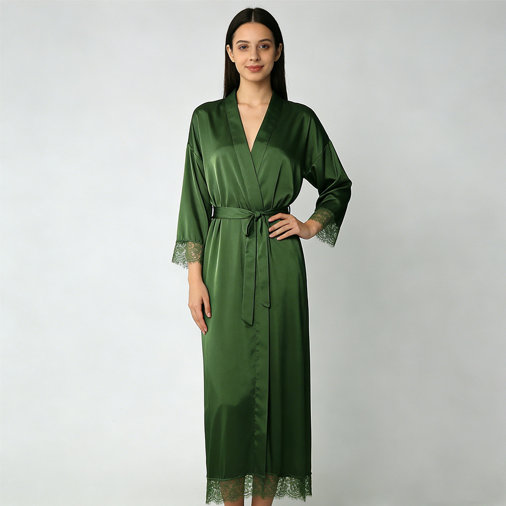 아마존 여성용 긴 레이스 잠옷, 홈웨어, 신부용 드레싱 가운, 새틴 모조 실크 스트레치 가운