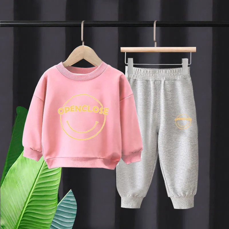 • 스웨트 셔츠 오픈 웃는 얼굴 노란색 오픈 그레이 바지