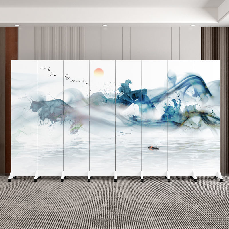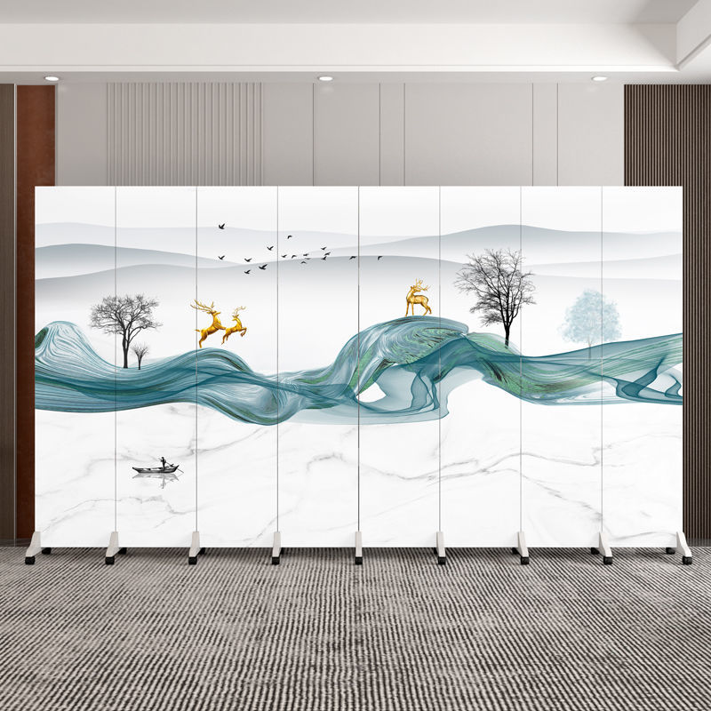 스크린 파티션 벽 침실 호텔 사무실 간단한 현대 접이식 모바일 순수한 흰색 활동 푸시 풀 접이식 화면