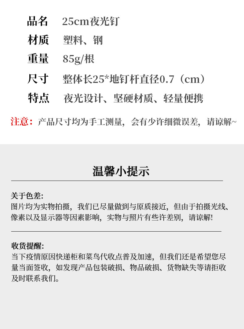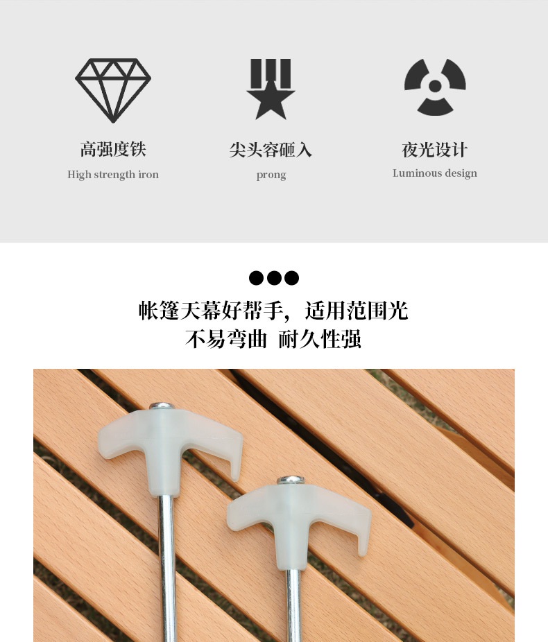 야외 캠핑 빛나는 지상 손톱 크로스 보더 텐트 25cm 형광 접지 손톱 텐트 캐노피 액세서리 지상 손톱 바람 로프 손톱