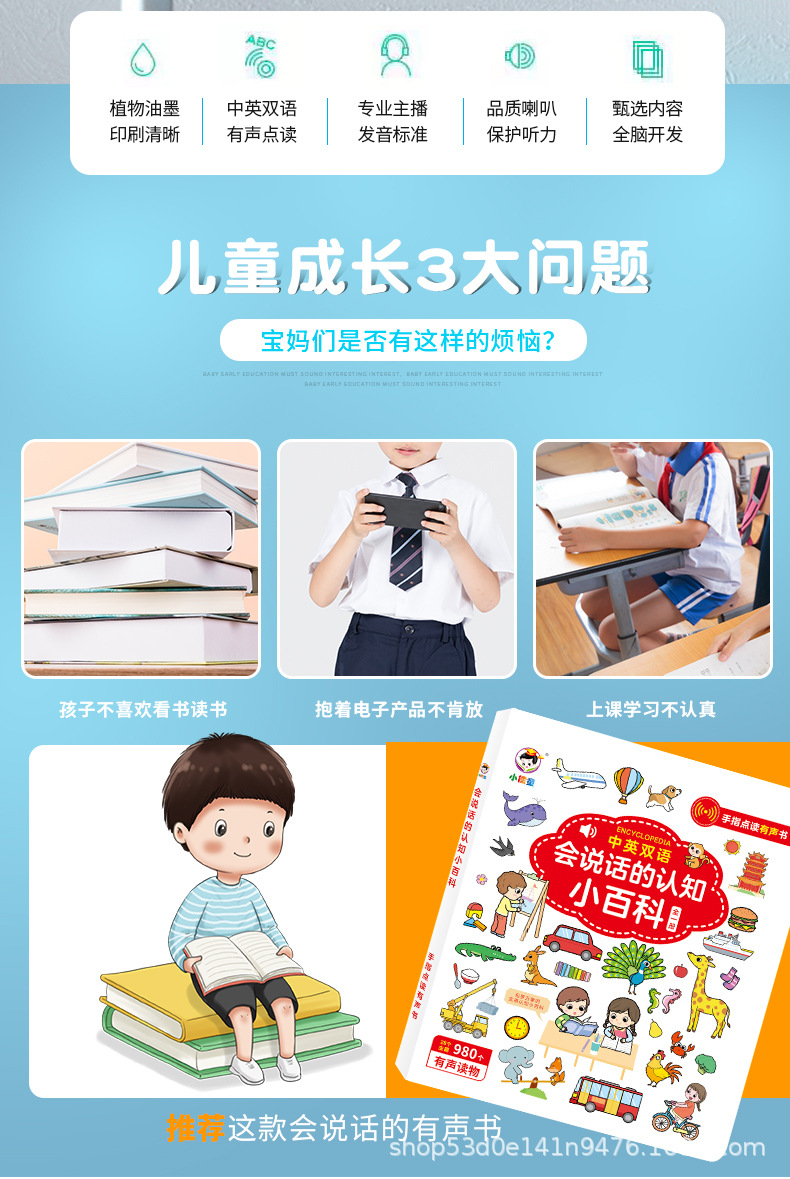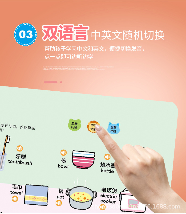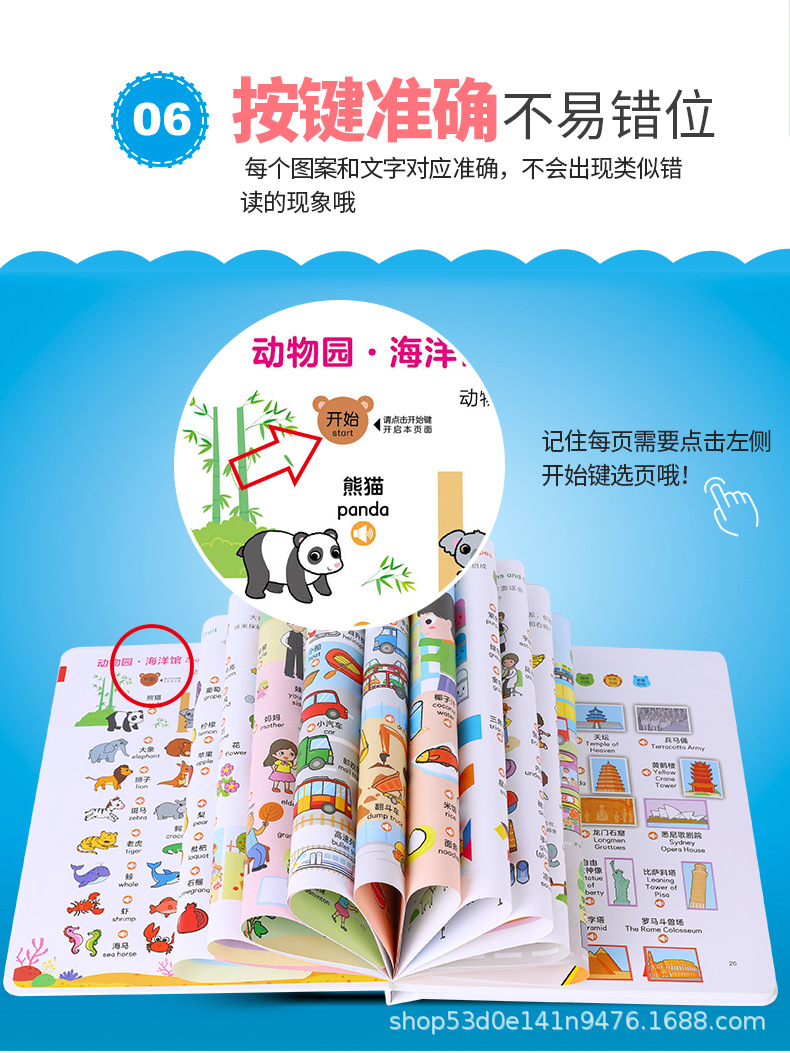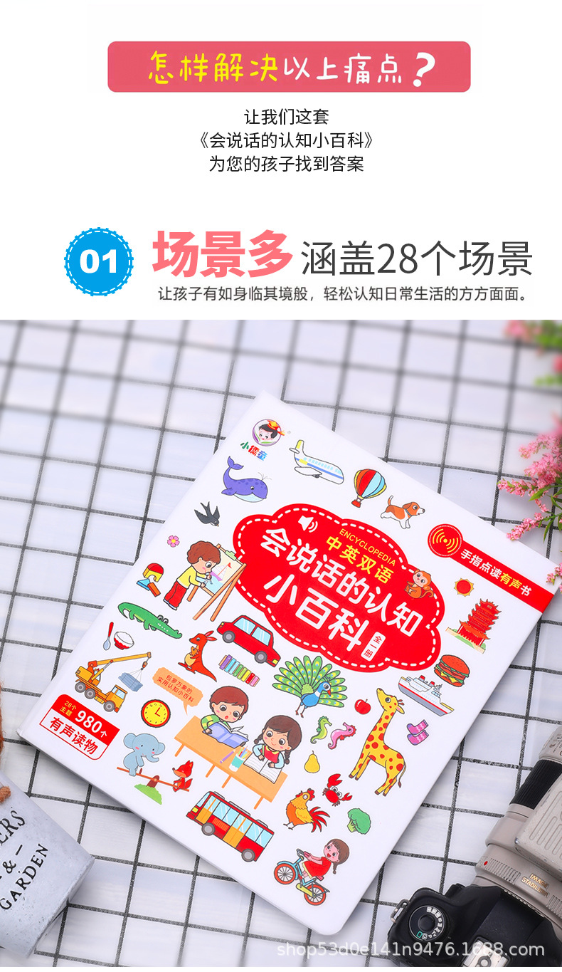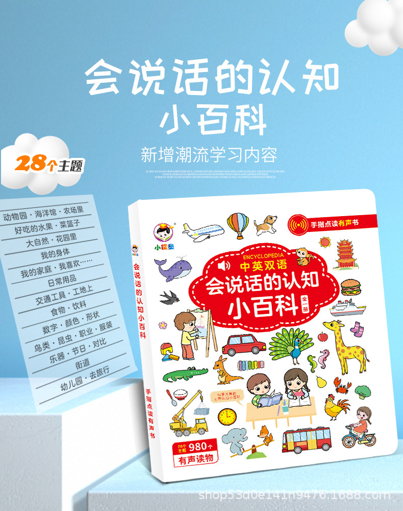 말하는 아기 유아 교육인지 백과 사전 지식 음성 퍼즐 중국어 및 영어 이중 언어 독서 장난감스토어 가기