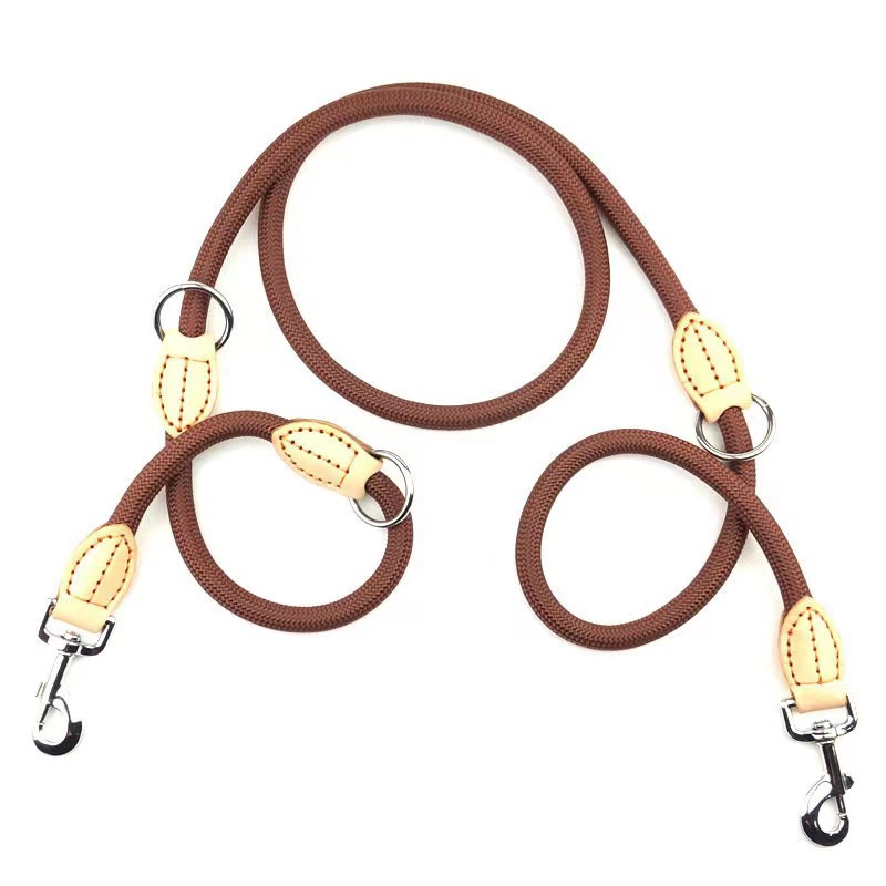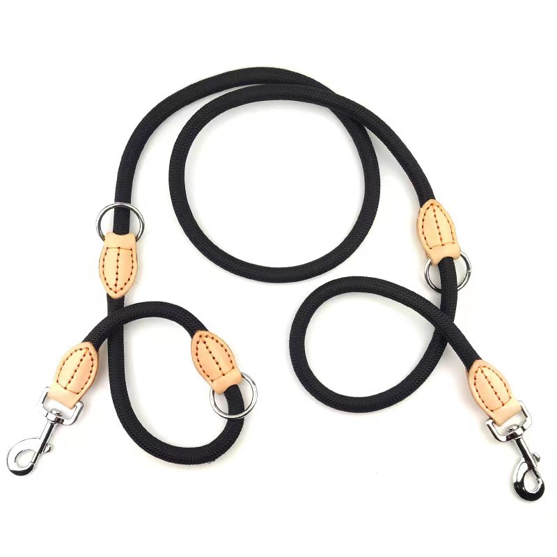 크로스 보더 핫 셀링 애완 동물 가죽 끈 개 가죽 끈 더블 헤드 원투 나일론 가죽 끈 두 개 가죽 끈 애완 동물 용품