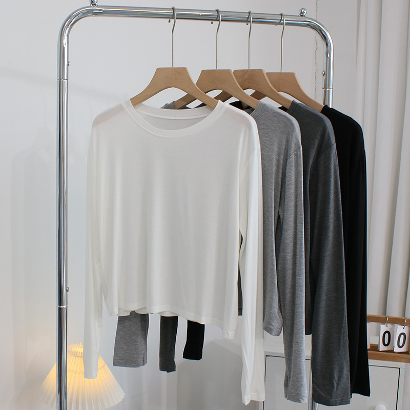 공장 큰 상품 봄과 가을 새로운 둥근 목 모달 티셔츠 여성의 얇은 느슨한 슬리밍 단색 캐주얼 바닥 셔츠스토어 가기