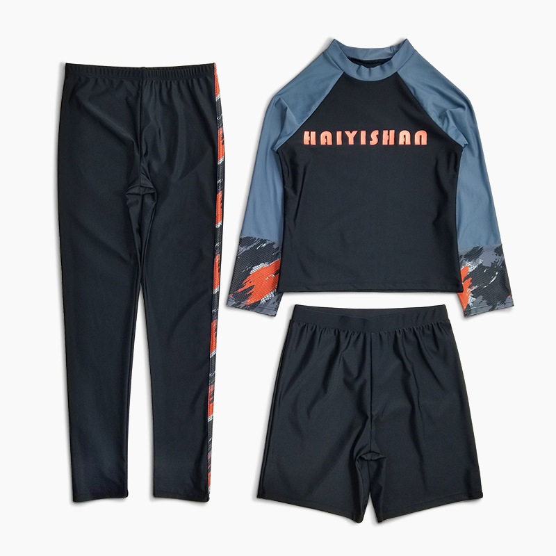 Haiyishan 신입 남학생 어린이 긴팔 바지 자외선 차단제 스포츠 분할 속건 수영복스토어 가기