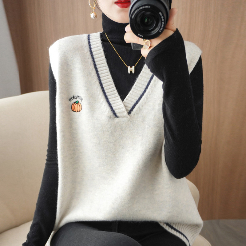 모달 2026 봄 신상 여성용 한국 스타일 루즈핏 V넥 숏 풀오버 니트 오렌지 조끼스토어 가기